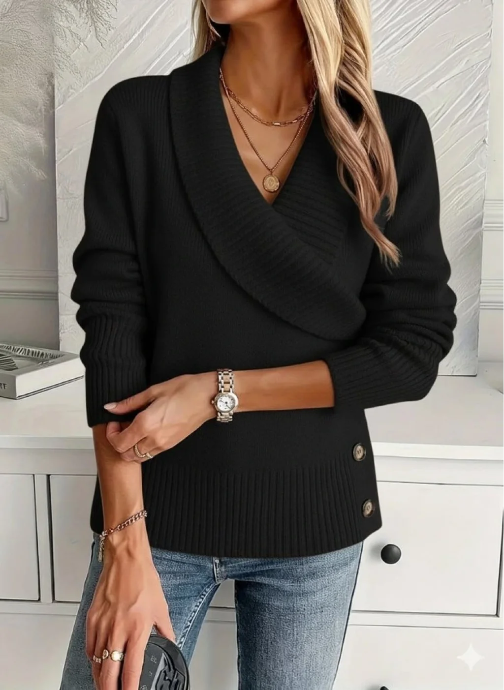 Kadın Uzun Kollu Yakalı Yandan Düğmeli Triko Bluz