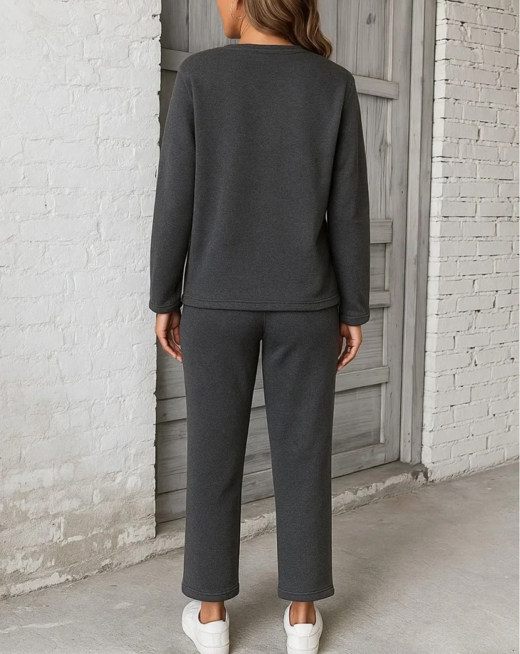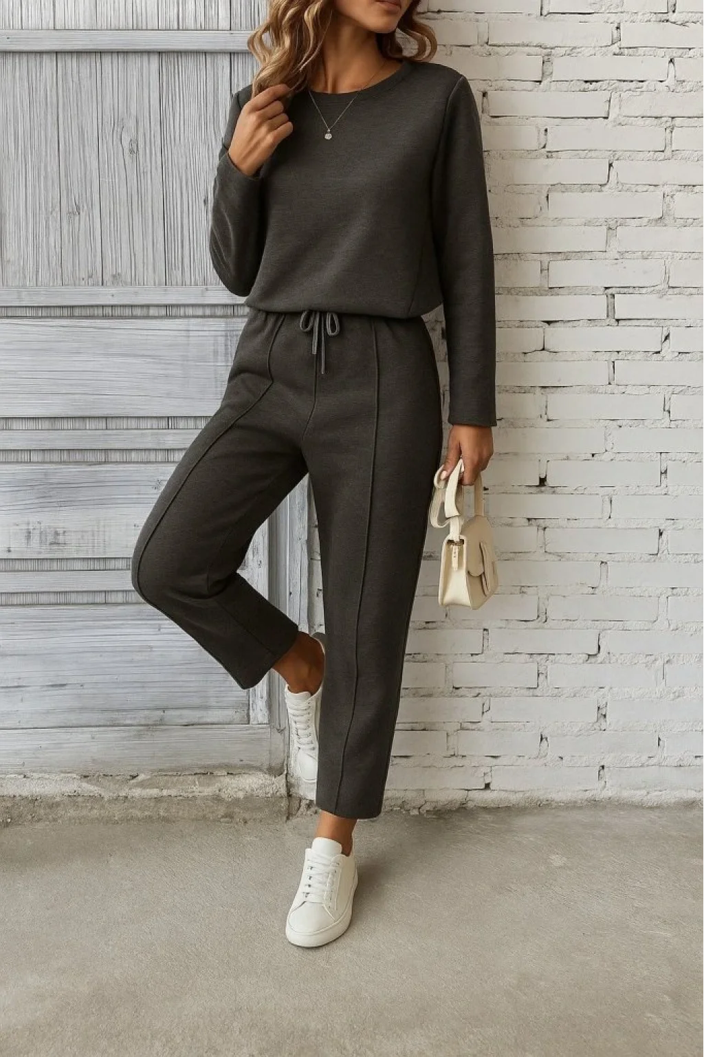 Kadın Uzun Kollu Yanları Nervurlu Viskon Iki Iplik Ve Pantolon Ikili Takım