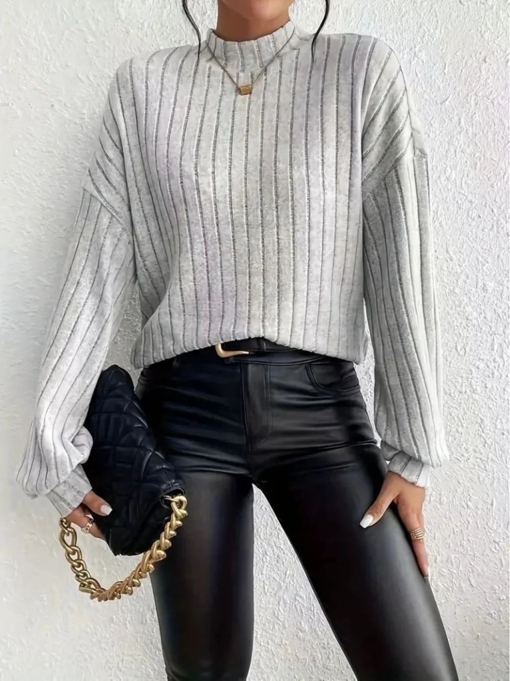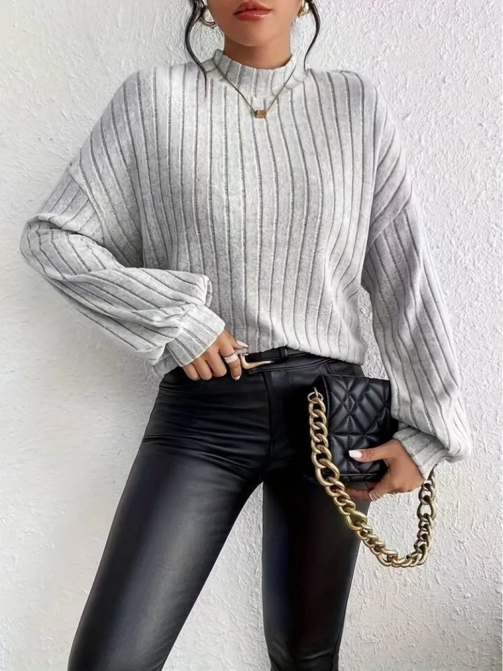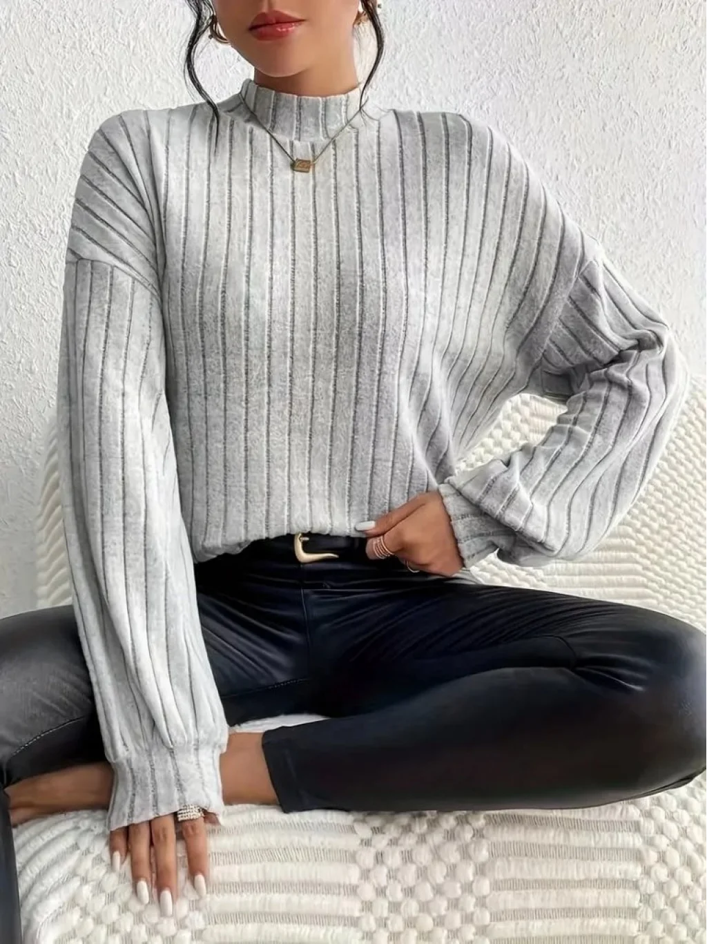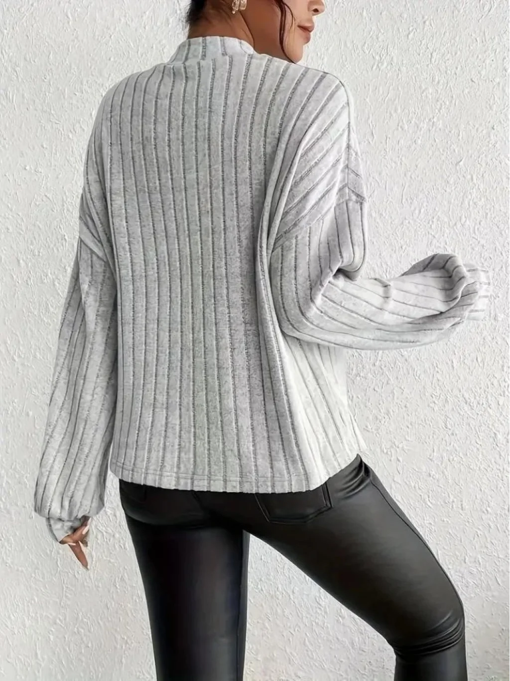 Kadın Uzun Kollu Yarı Balıkçı Yaka Salaş şardonlu Kaşkorse Bluz