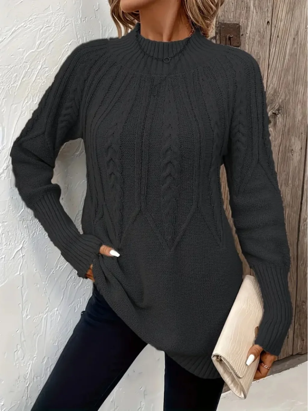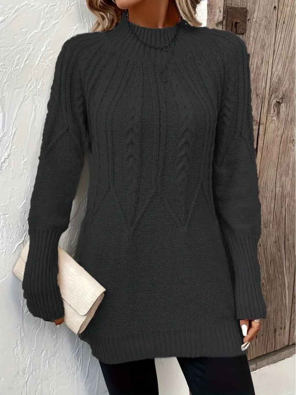 Kadın Uzun Kollu Yarı Balıkçı Yaka Triko Bluz