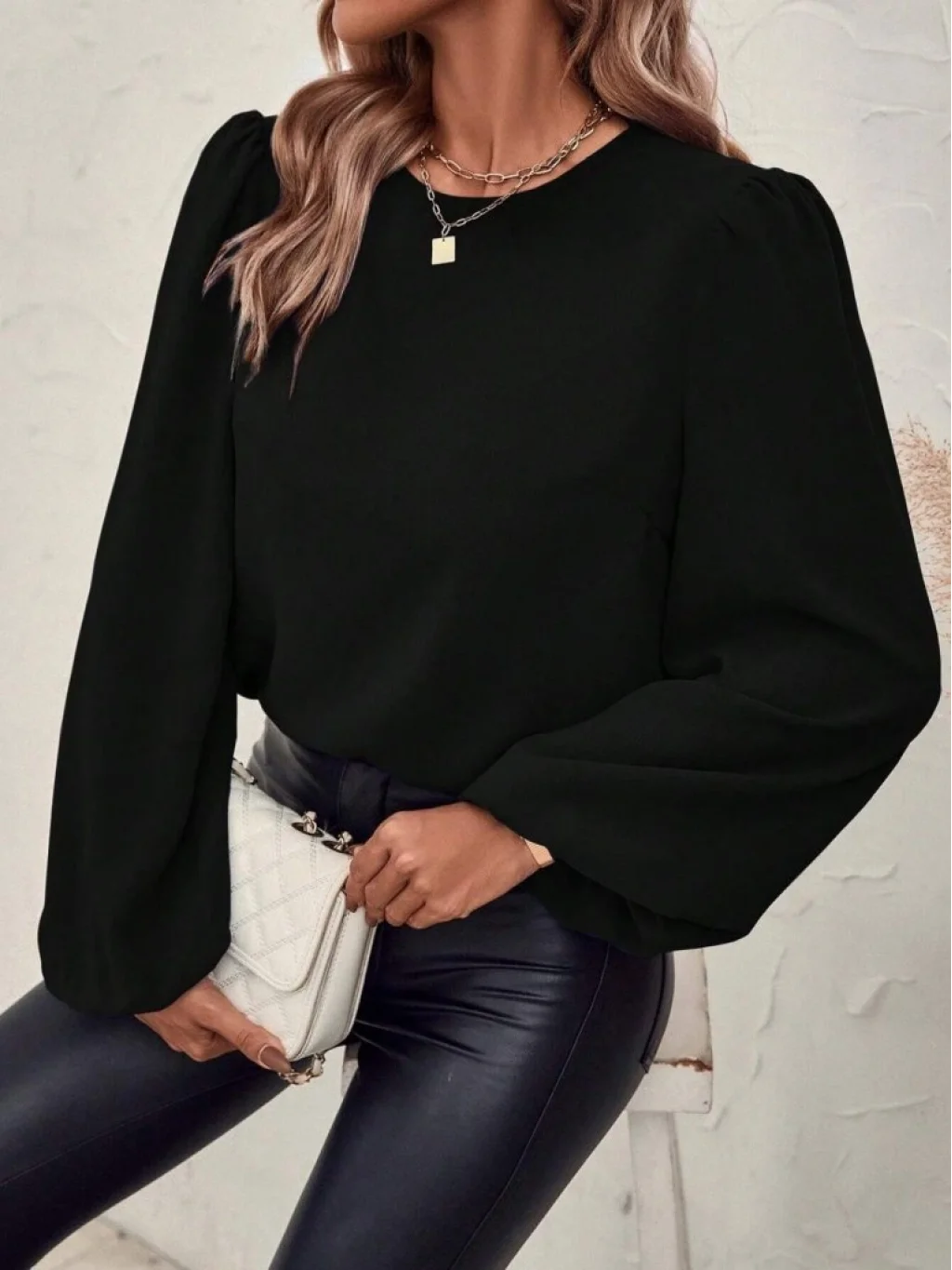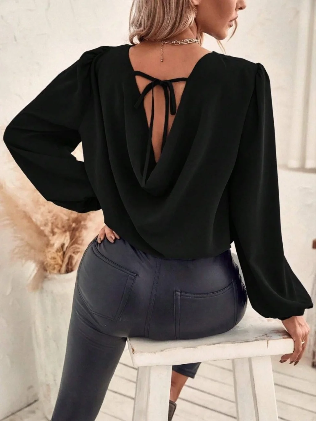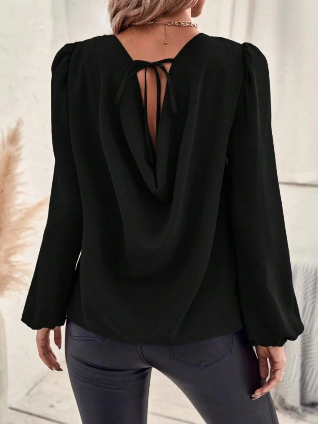 Kadın Uzun Kollu Yuvarlak Yaka Arkadan Bağcıklı Salaş Ithal Krep Bluz