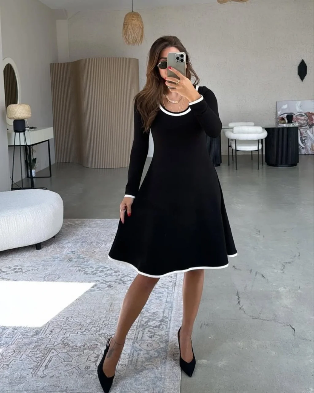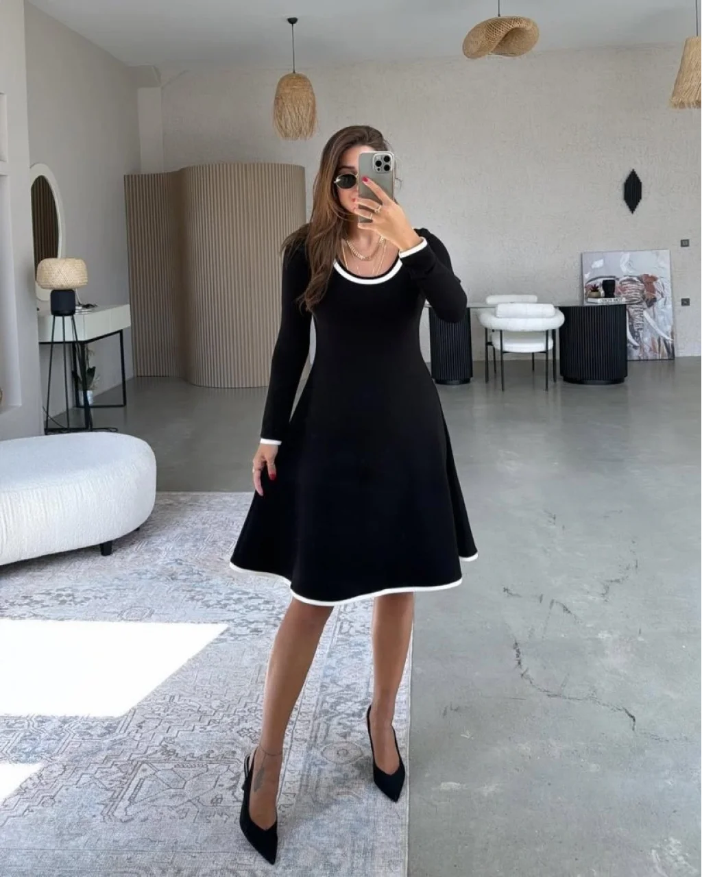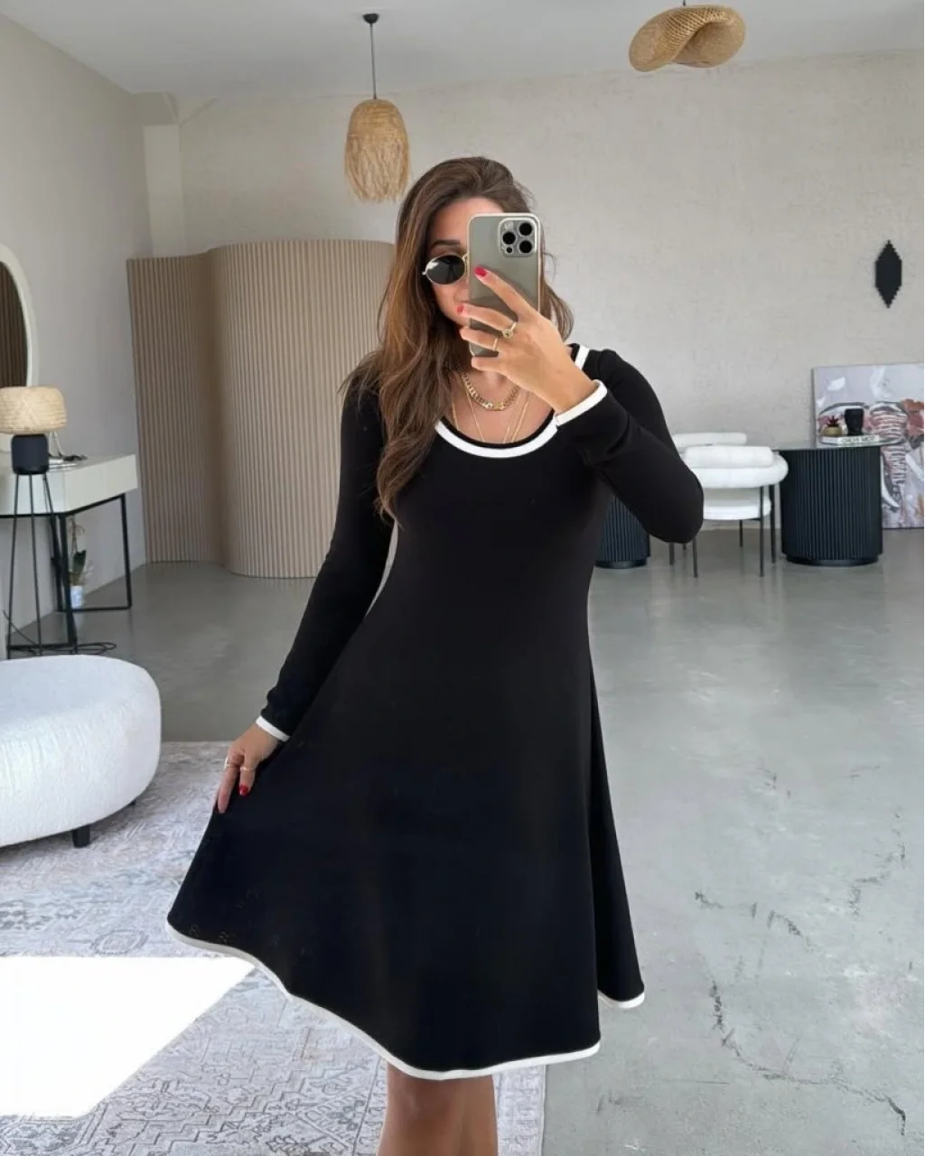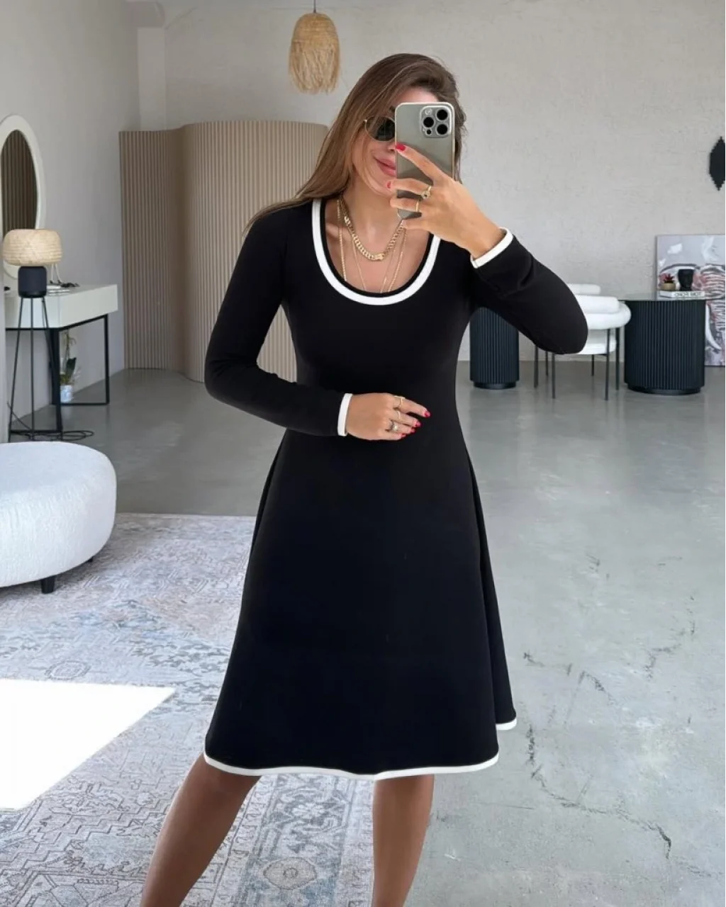 Kadın Uzun Kollu Yuvarlak Yaka Midi Viskon Iki Iplik Elbise