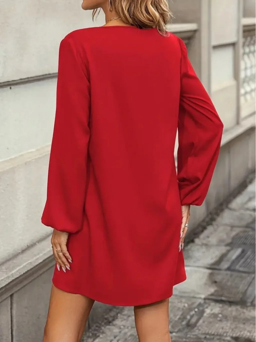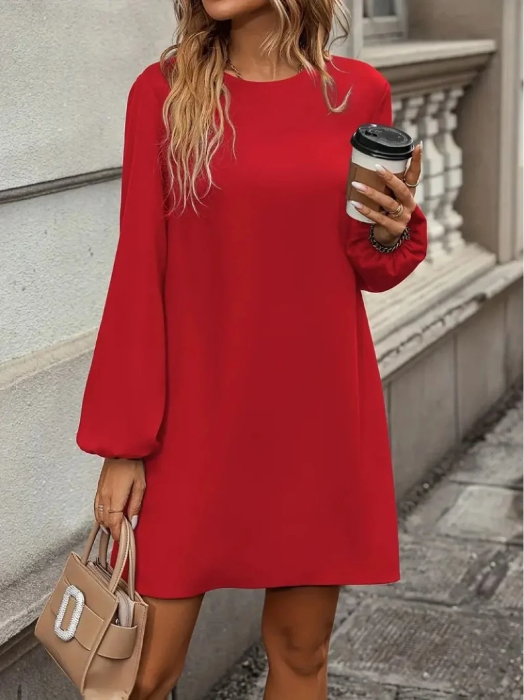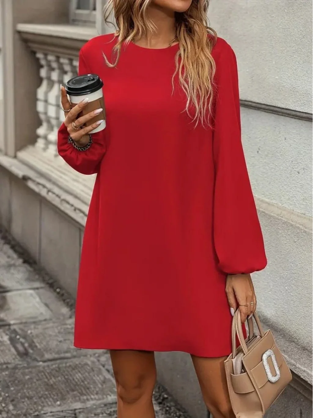 Kadın Uzun Kollu Yuvarlak Yaka Mini Ithal Krep Elbise