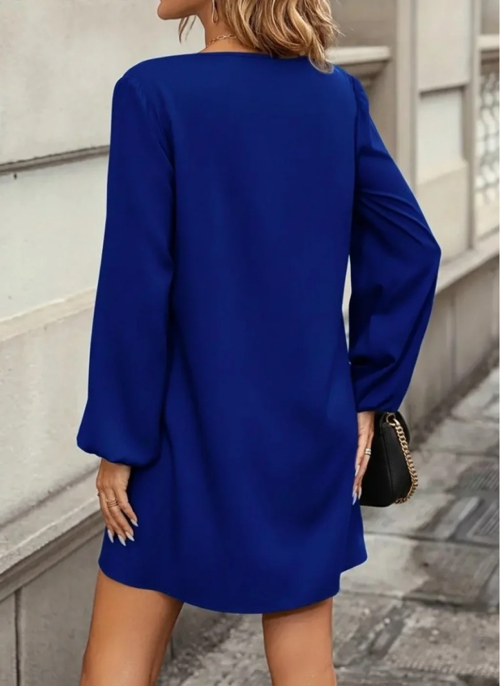 Kadın Uzun Kollu Yuvarlak Yaka Mini Ithal Krep Elbise