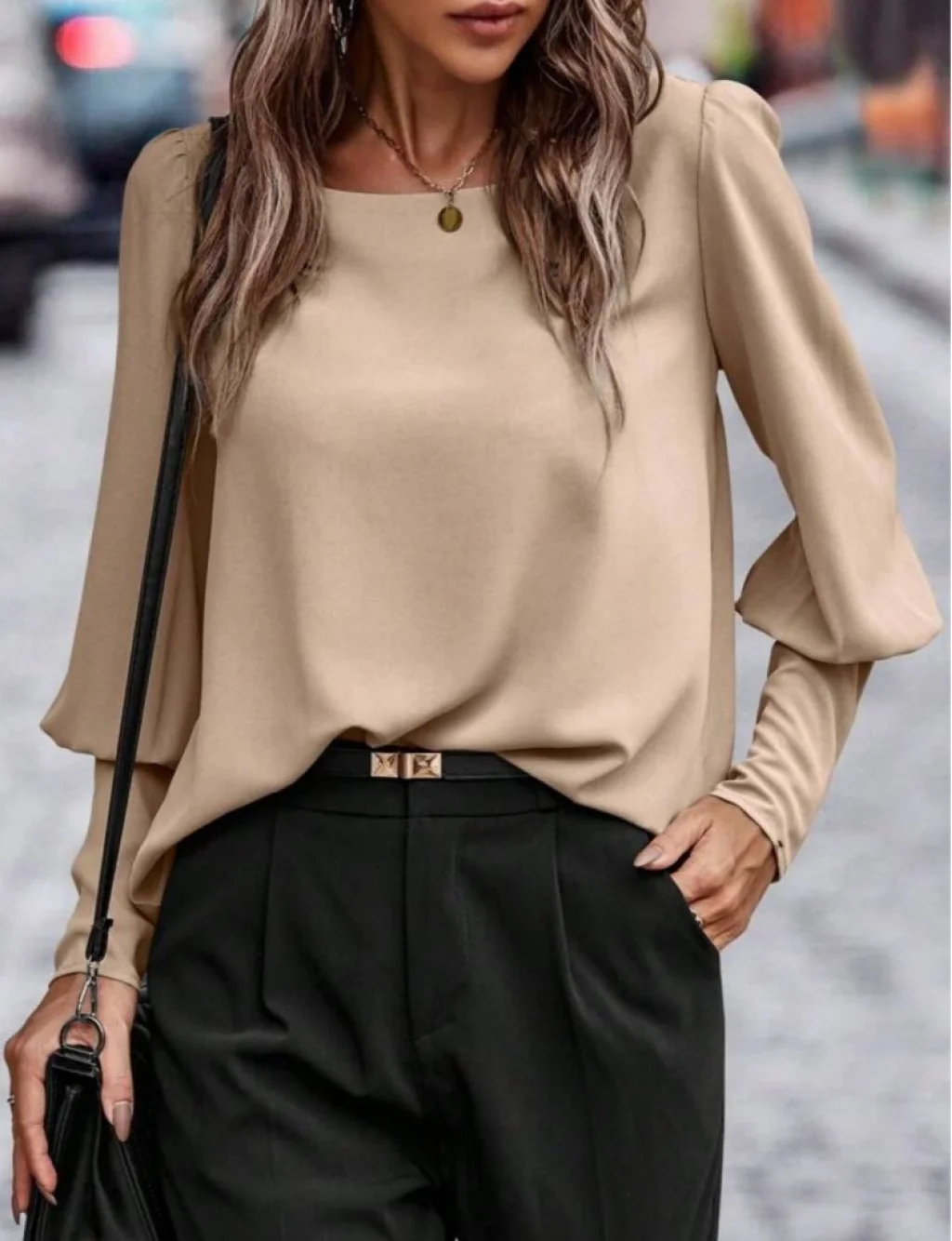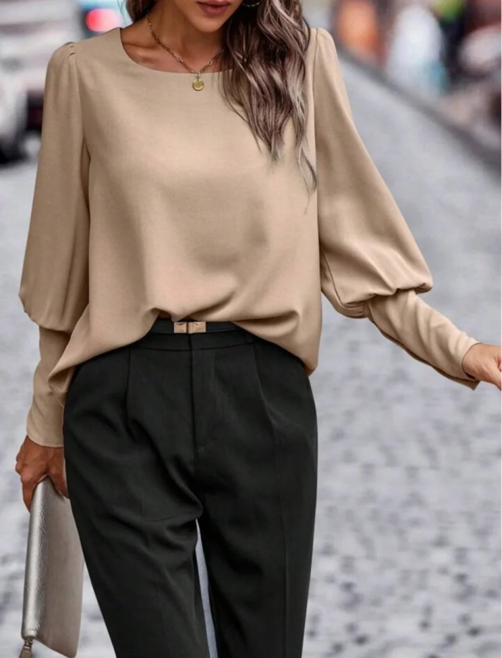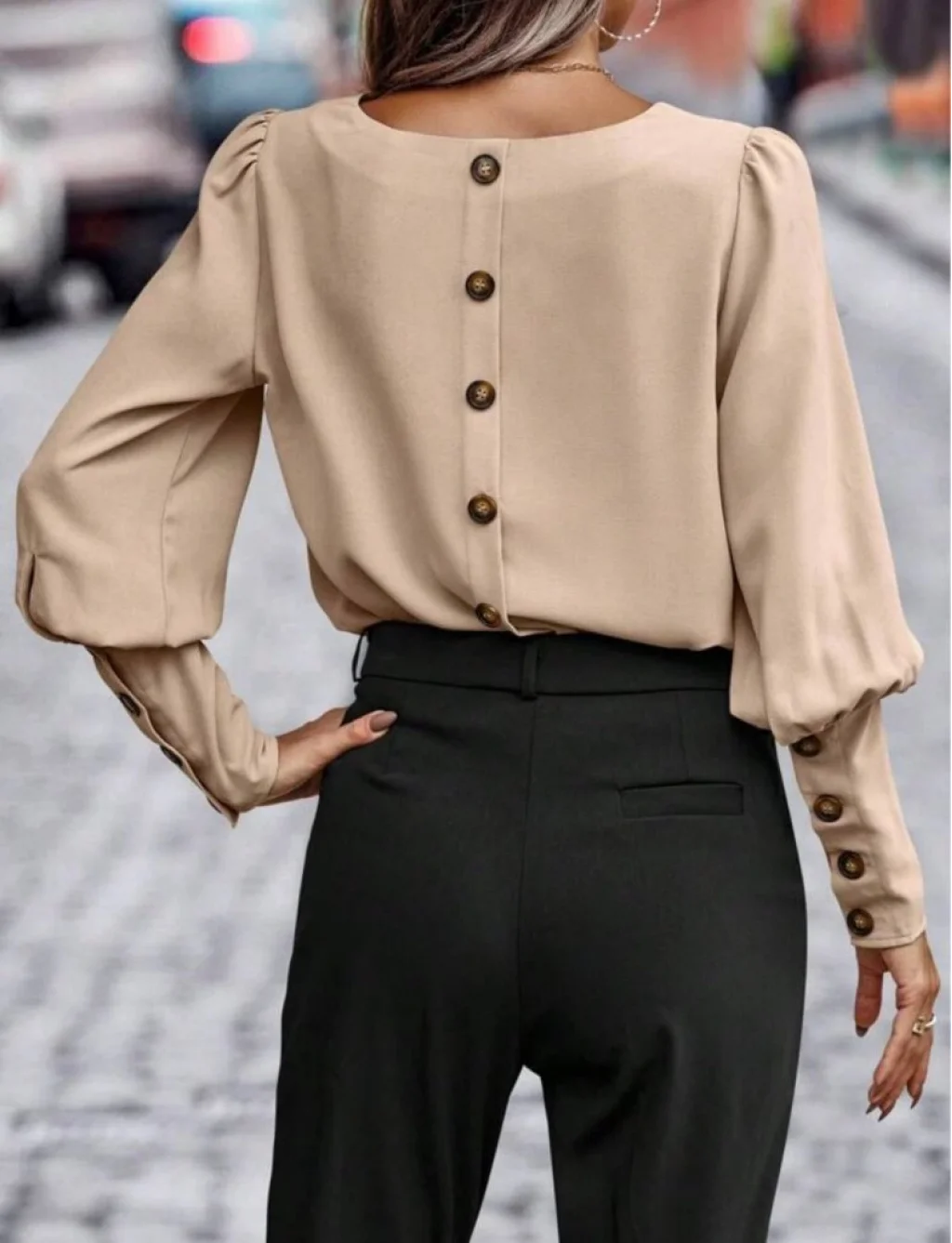 Kadın Uzun Kollu Yuvarlak Yakalı Düğmeli Ithal Krep Bluz