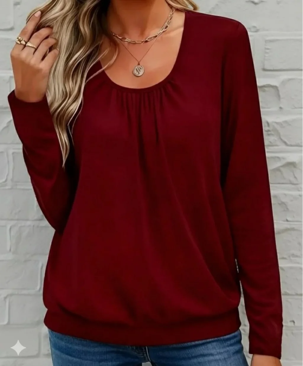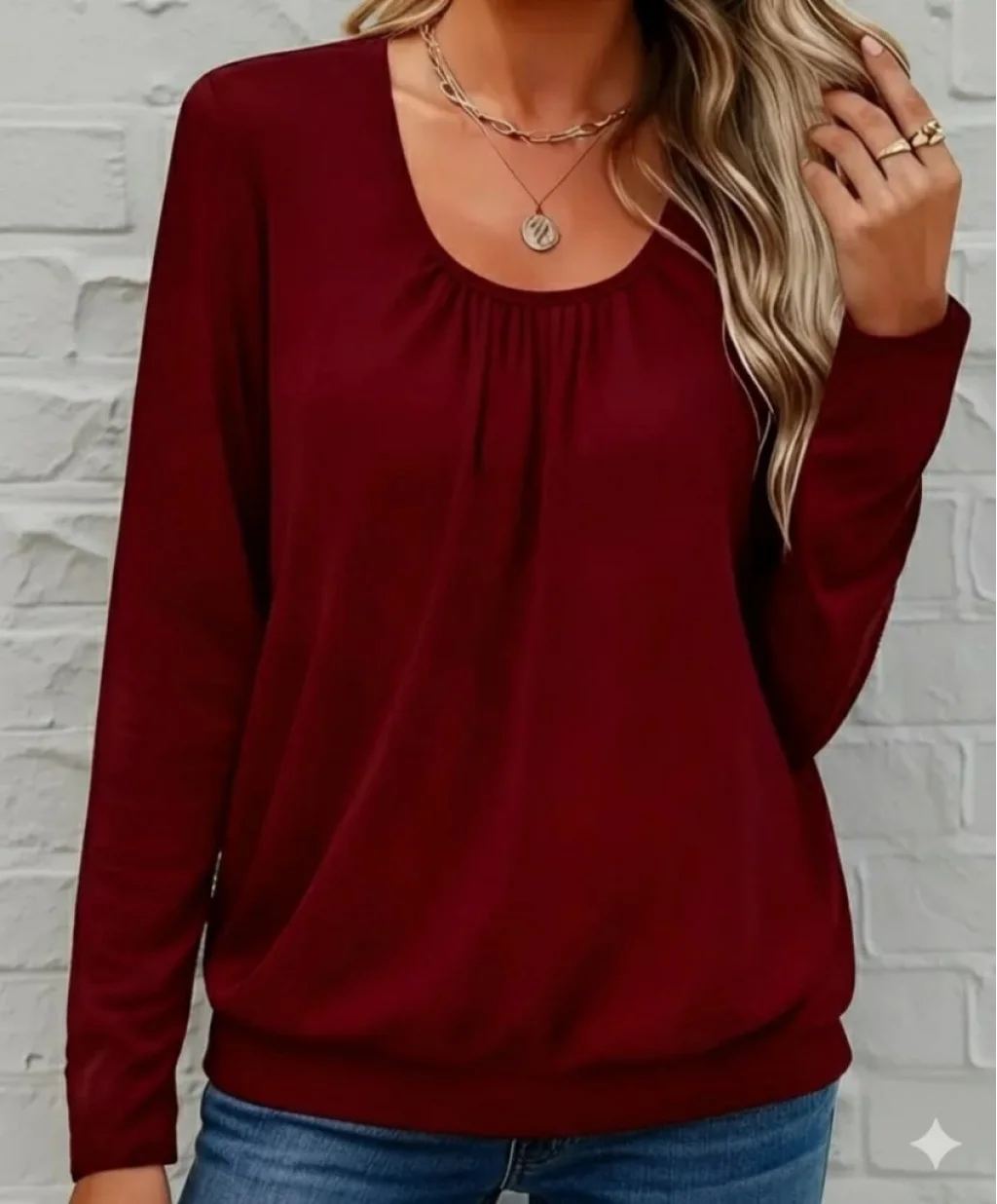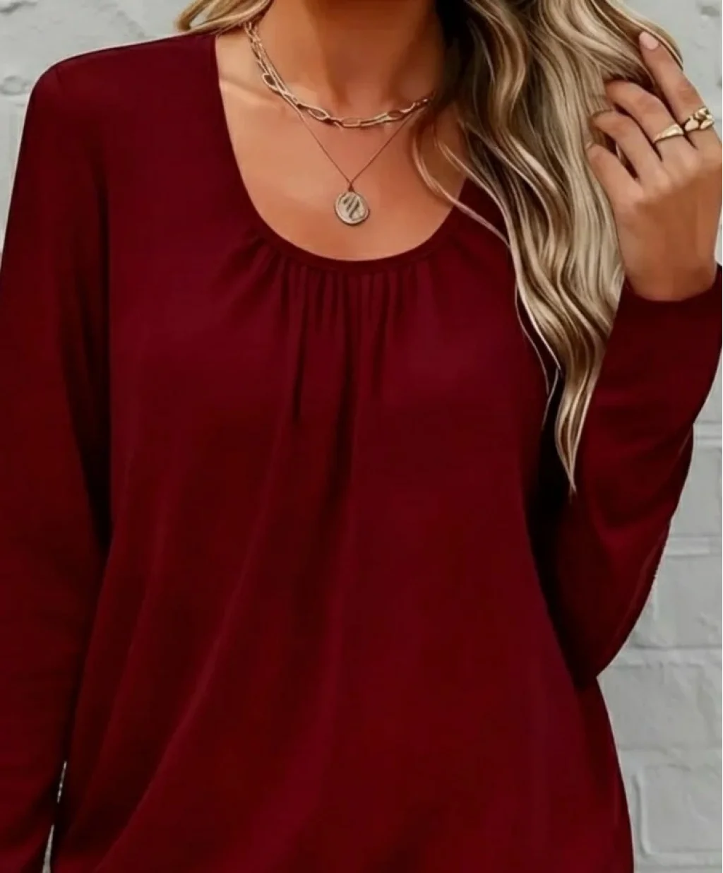 Kadın Uzun Kollu Yuvarlak Yakalı Viskon Bluz