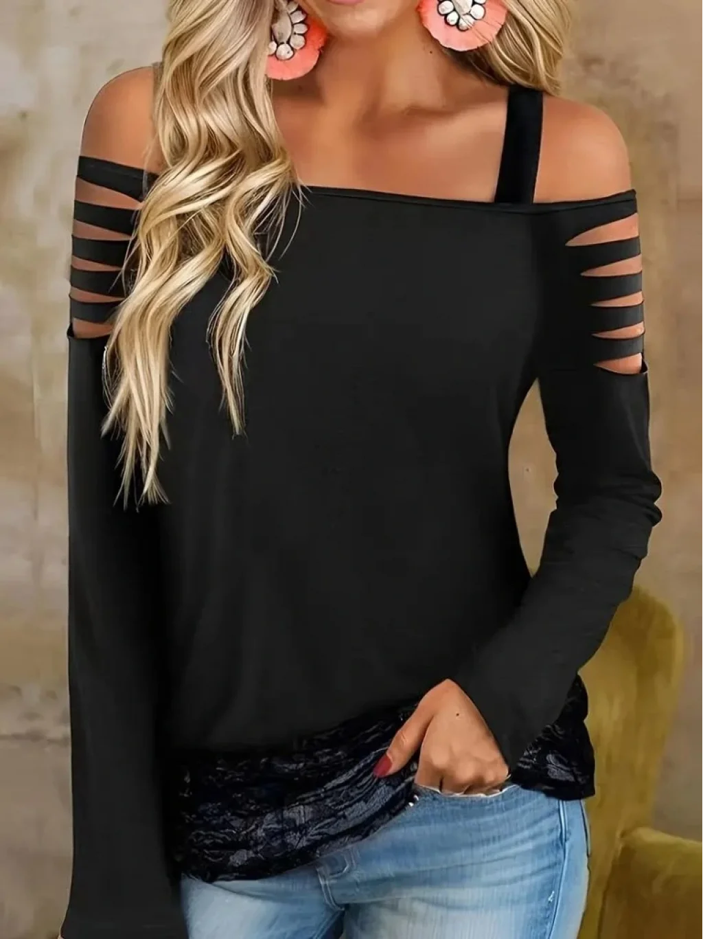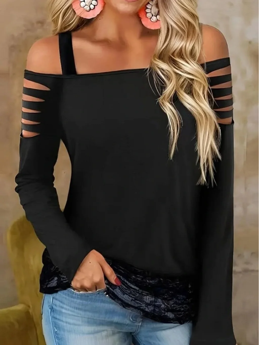 Kadın Uzun Lazer Kesik Detaylı Askılı Viskon Iki Iplik Bluz