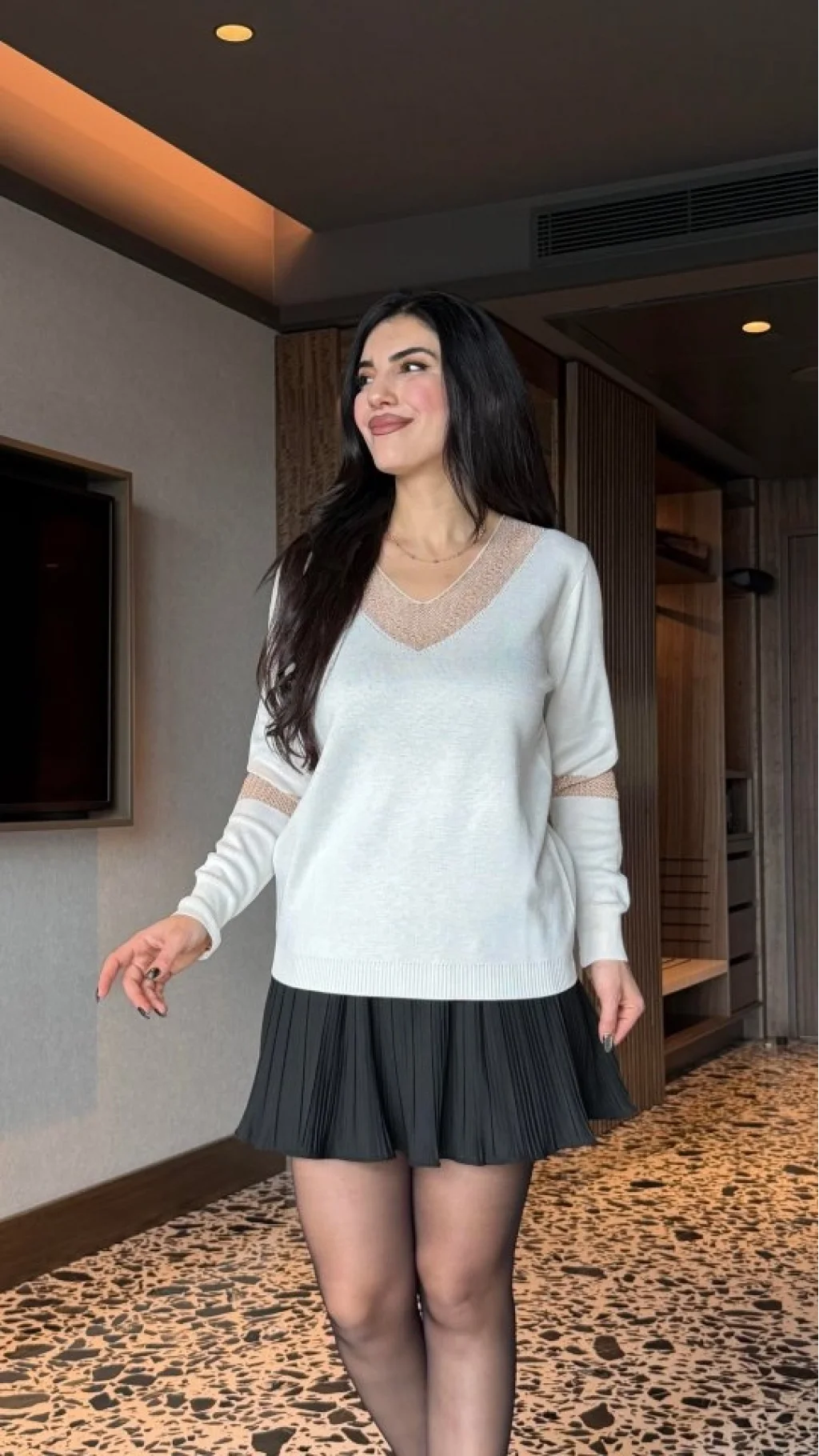 Modelin Ölçüleri: Boy:165, Kg:55, Göğüs:90, Bel:72, Kalça: 100