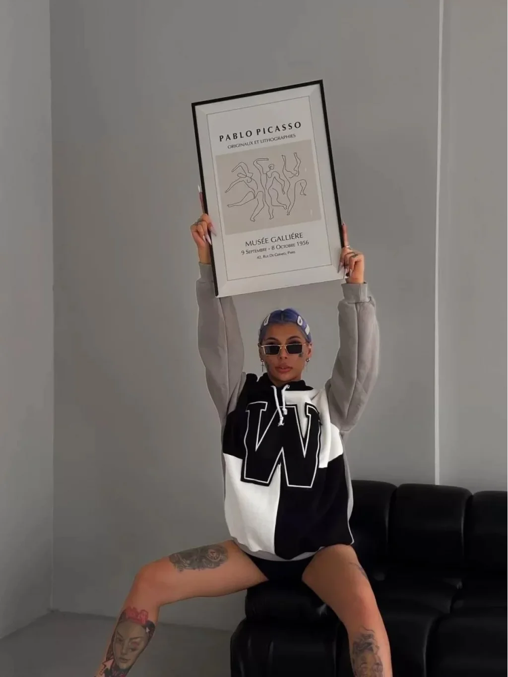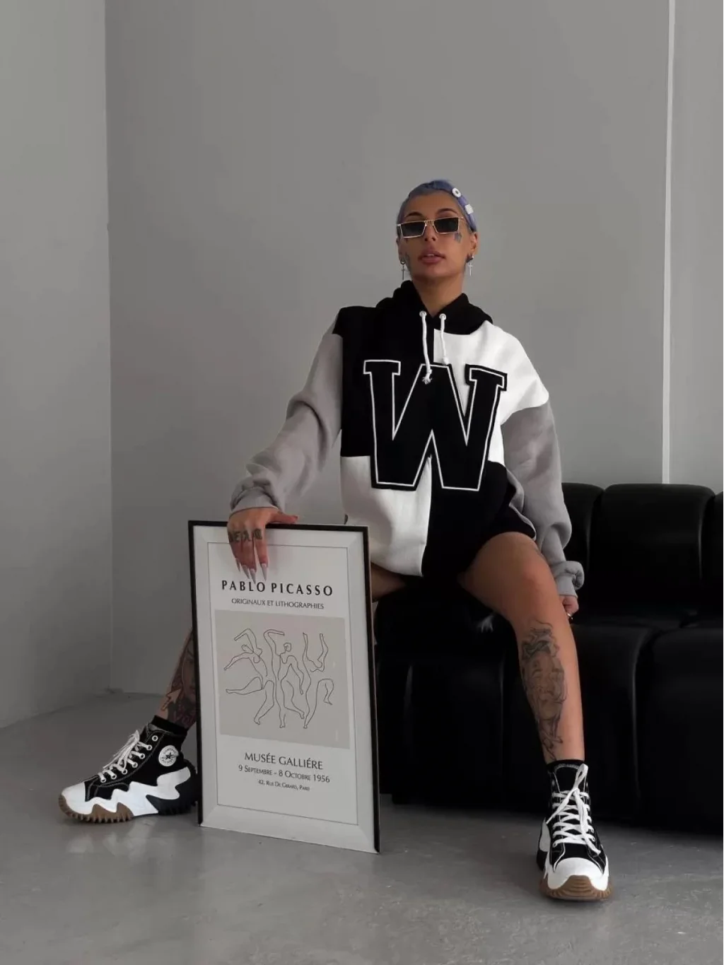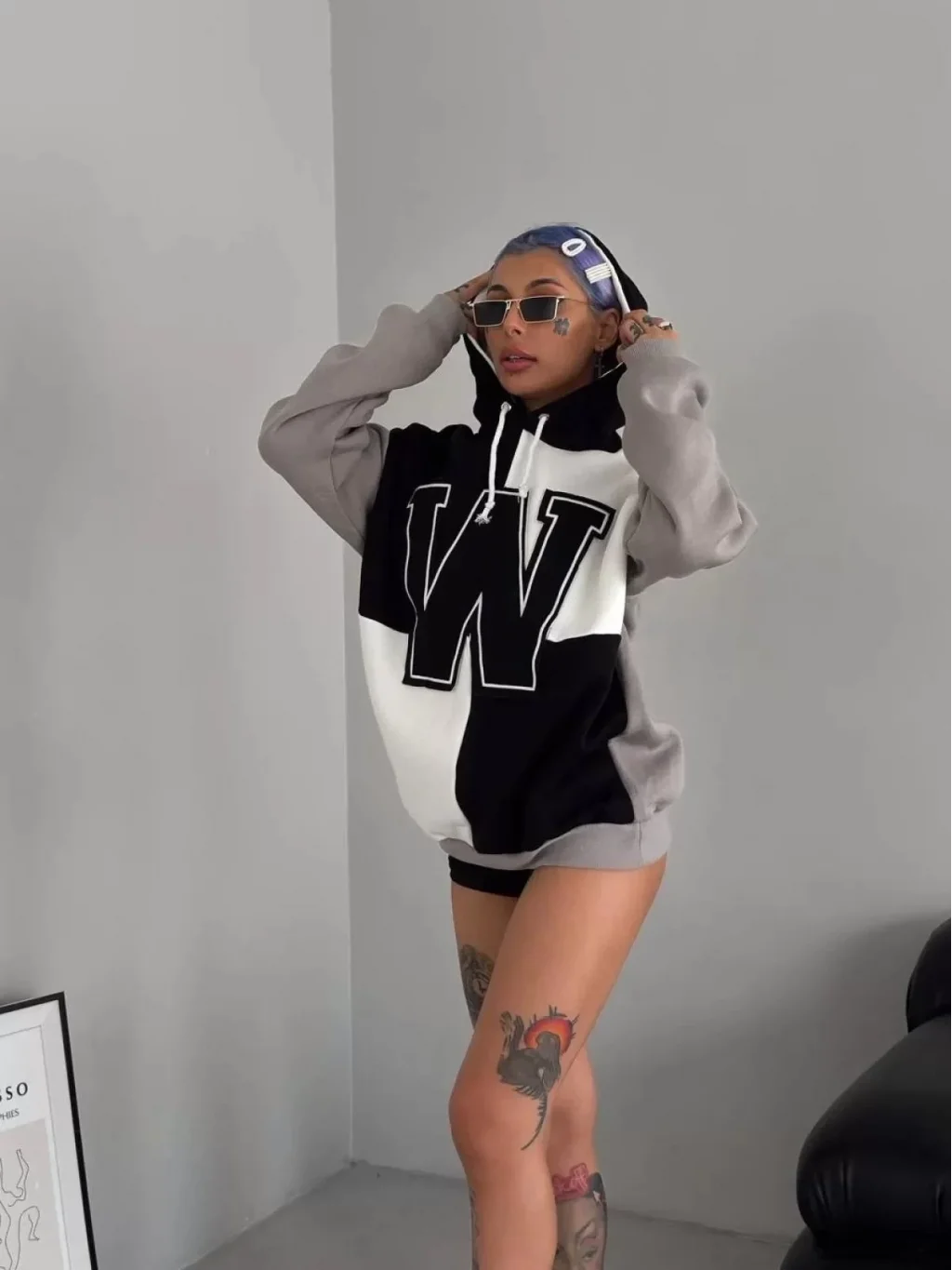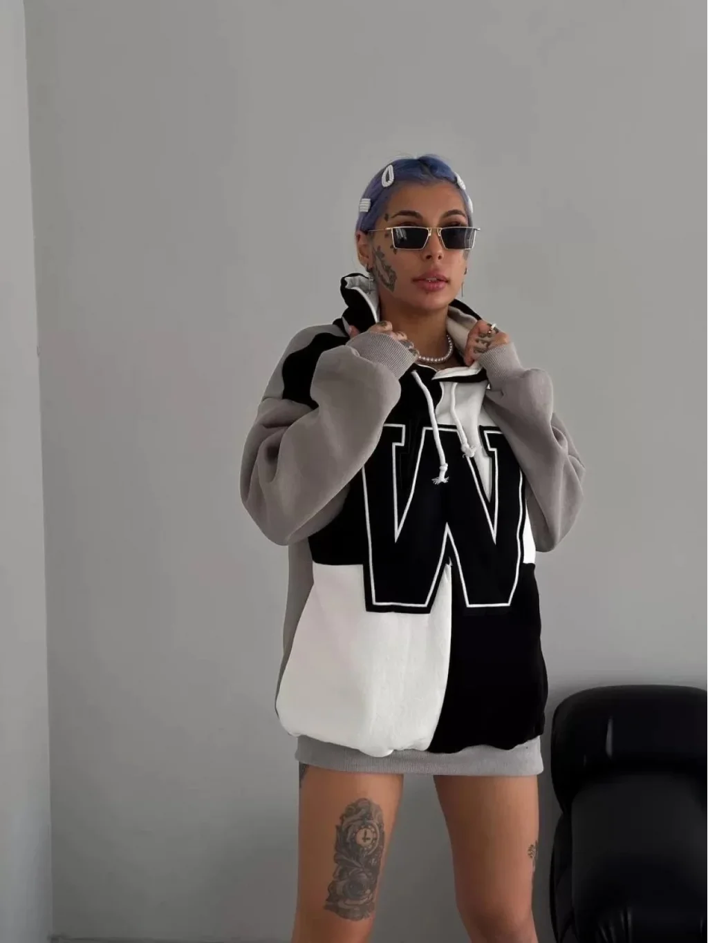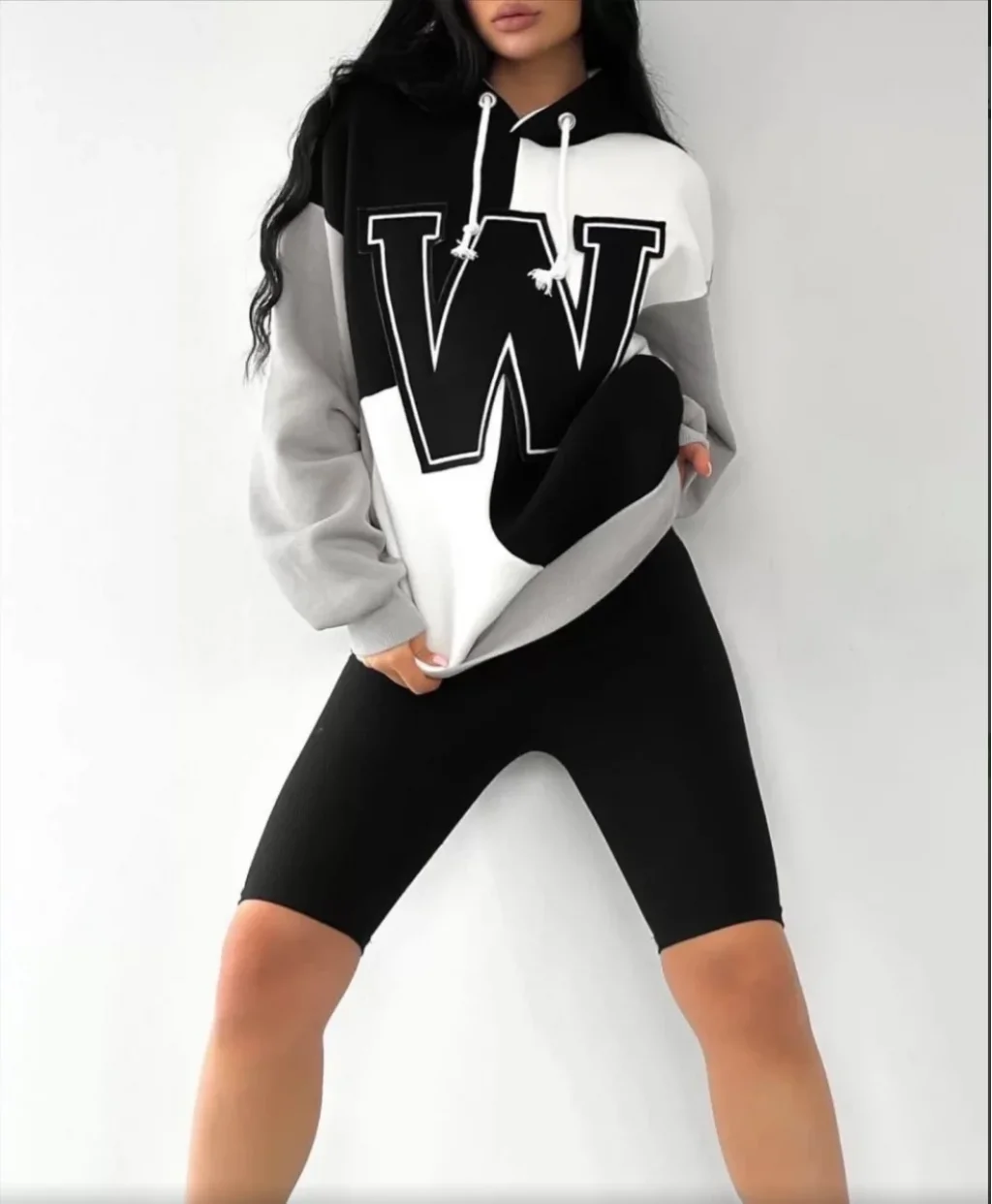 Kadın W Nakış İşlemeli Kapüşonlu Sweatshirt - Siyah