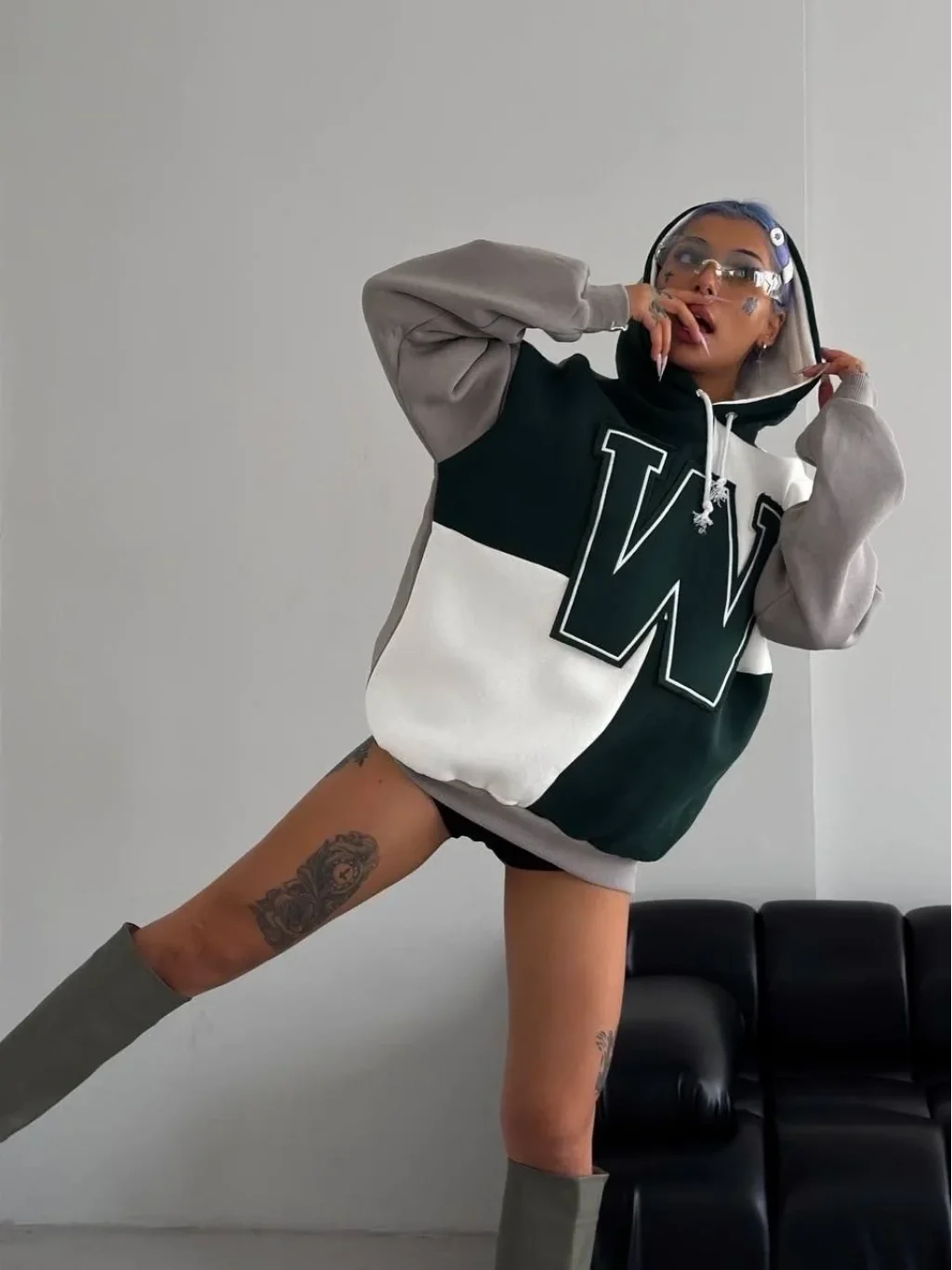 Kadın W Nakış İşlemeli Kapüşonlu Sweatshirt - Yeşil