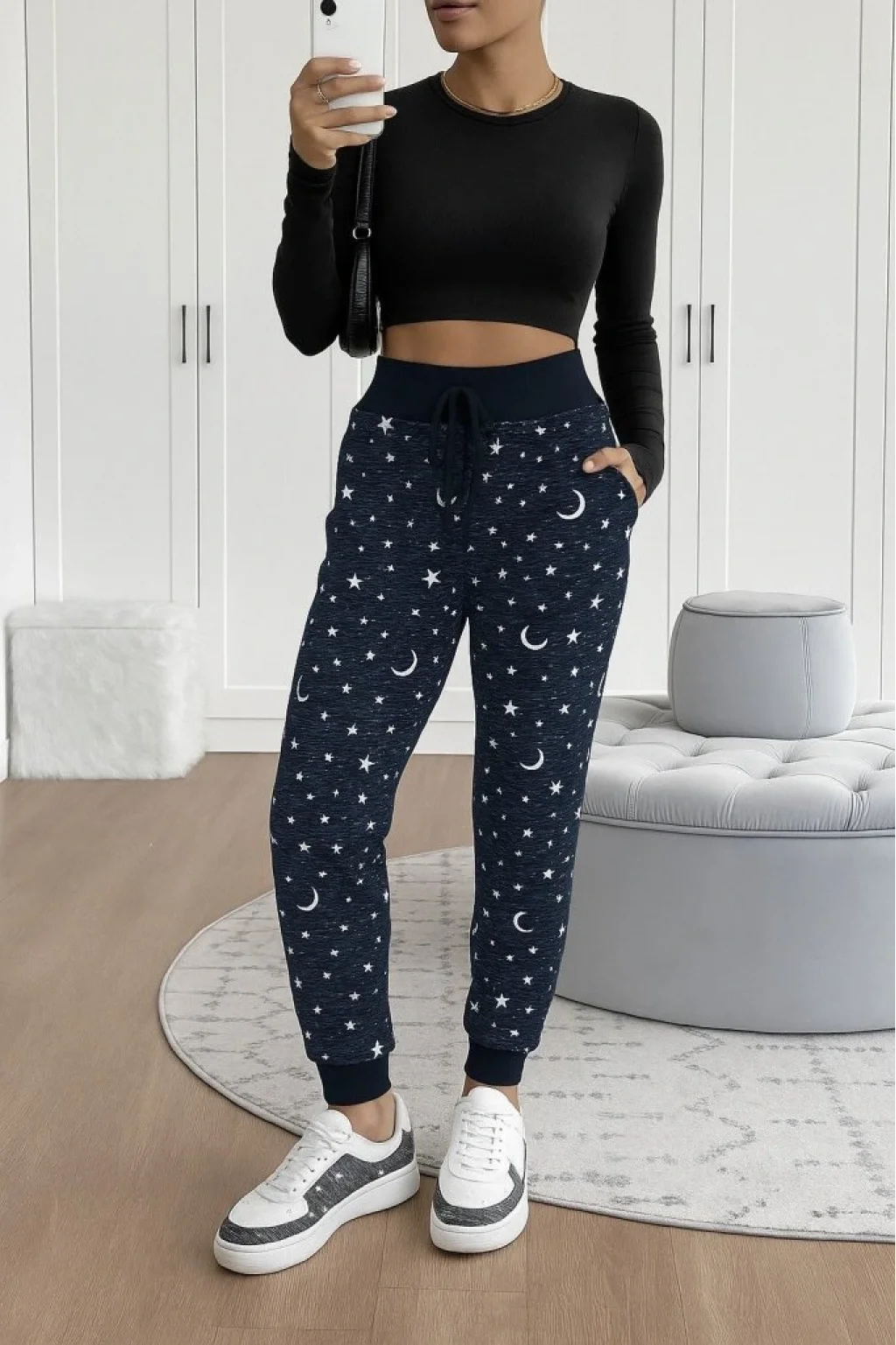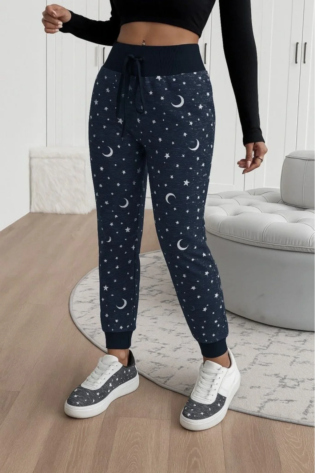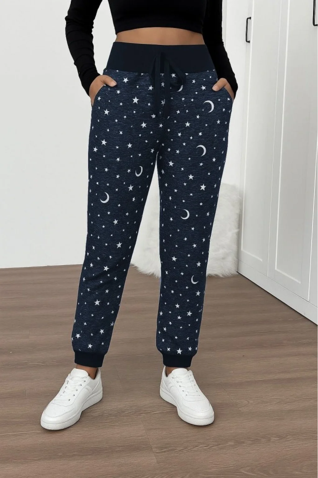 Kadın Yüksek Bel Bağcıklı Desenli Iki Iplik Pantolon