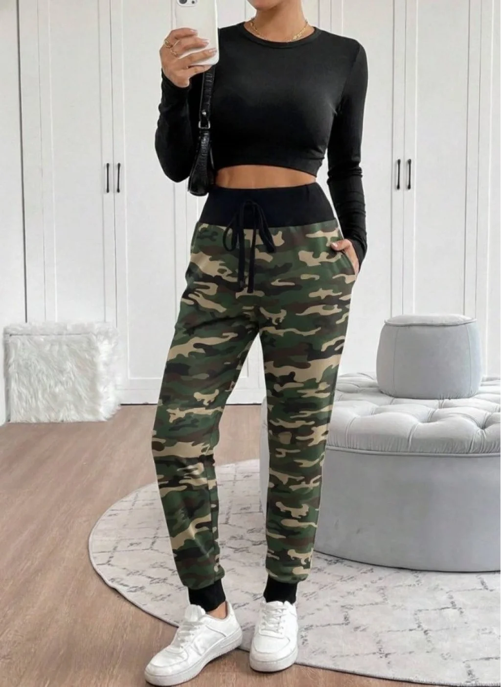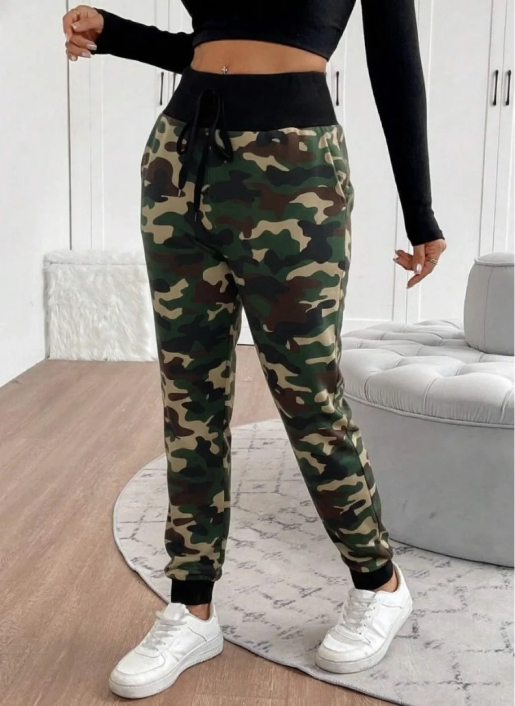 Kadın Yüksek Bel Bağcıklı Desenli Iki Iplik Pantolon