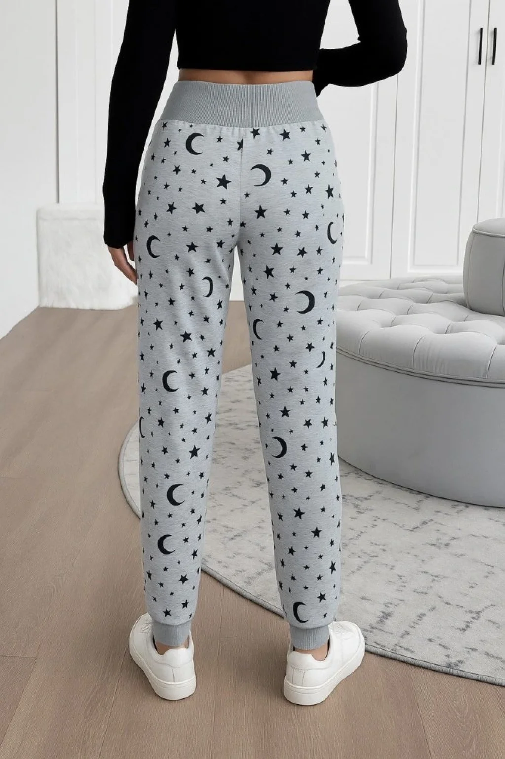 Kadın Yüksek Bel Bağcıklı Desenli Iki Iplik Pantolon