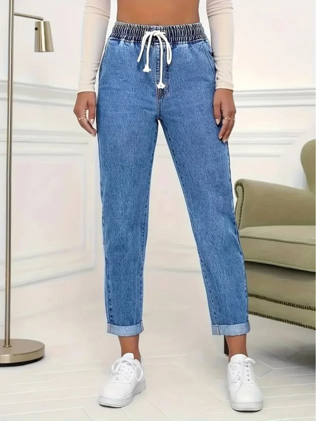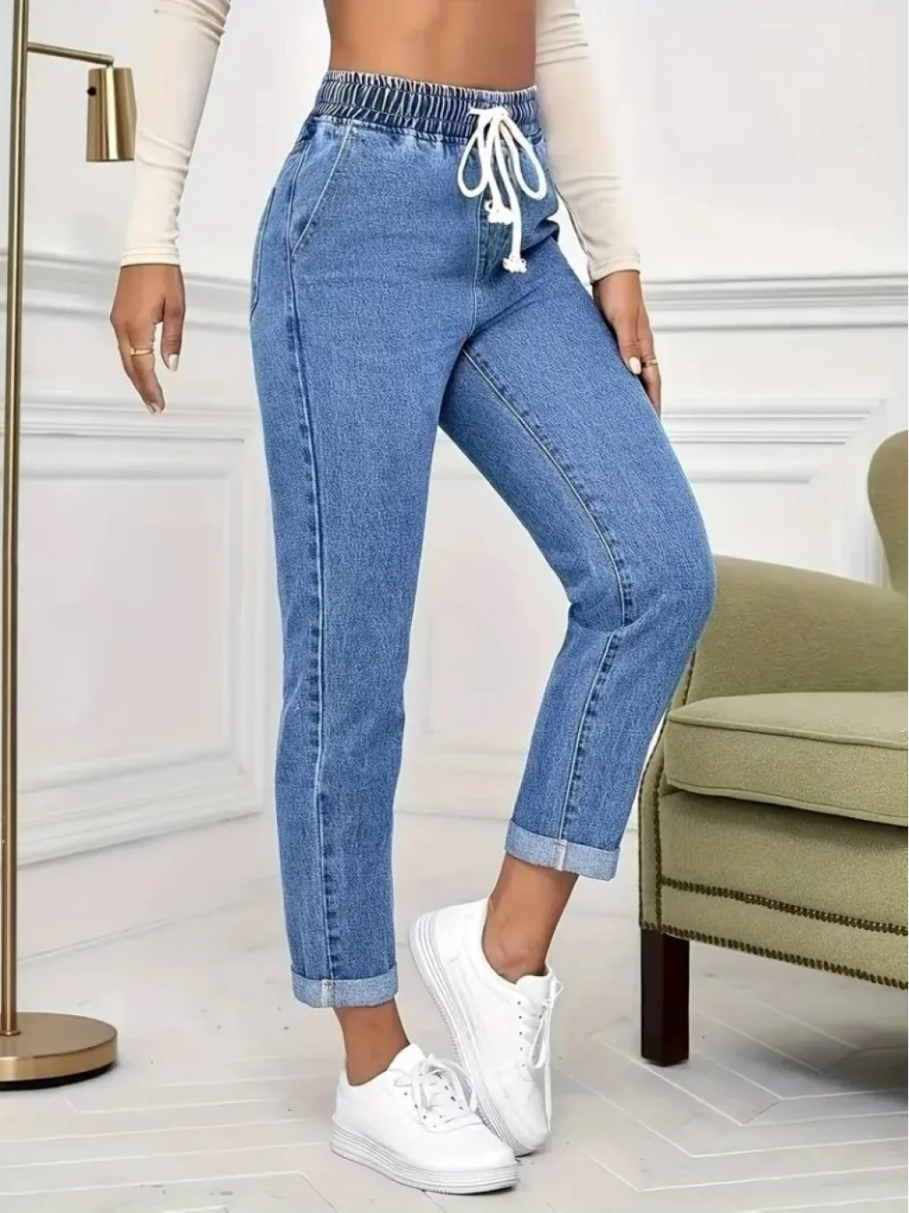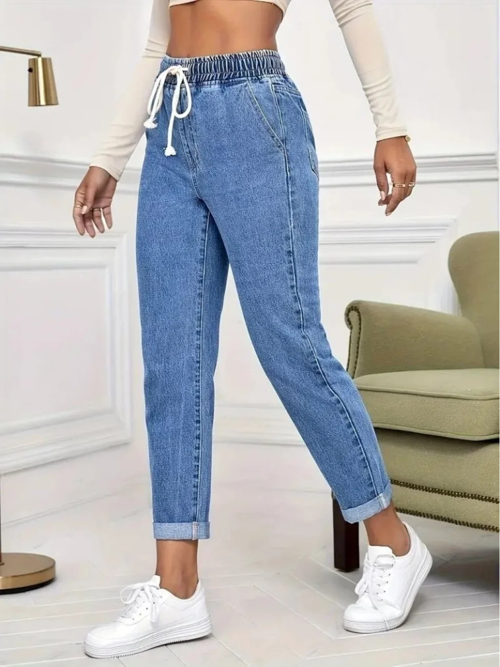 Kadın Yüksek Bel Bağcıklı Kot Pantolon