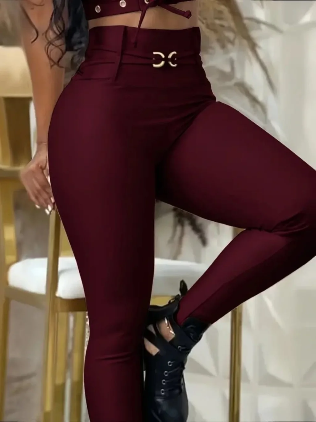 Kadın Yüksek Bel Belden Toka Detaylı Dalgıç Tayt