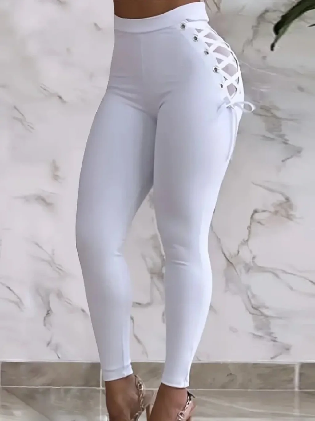 Kadın Yüksek Bel çapraz Bağcıklı Tül Detaylı Dalgıç Tayt