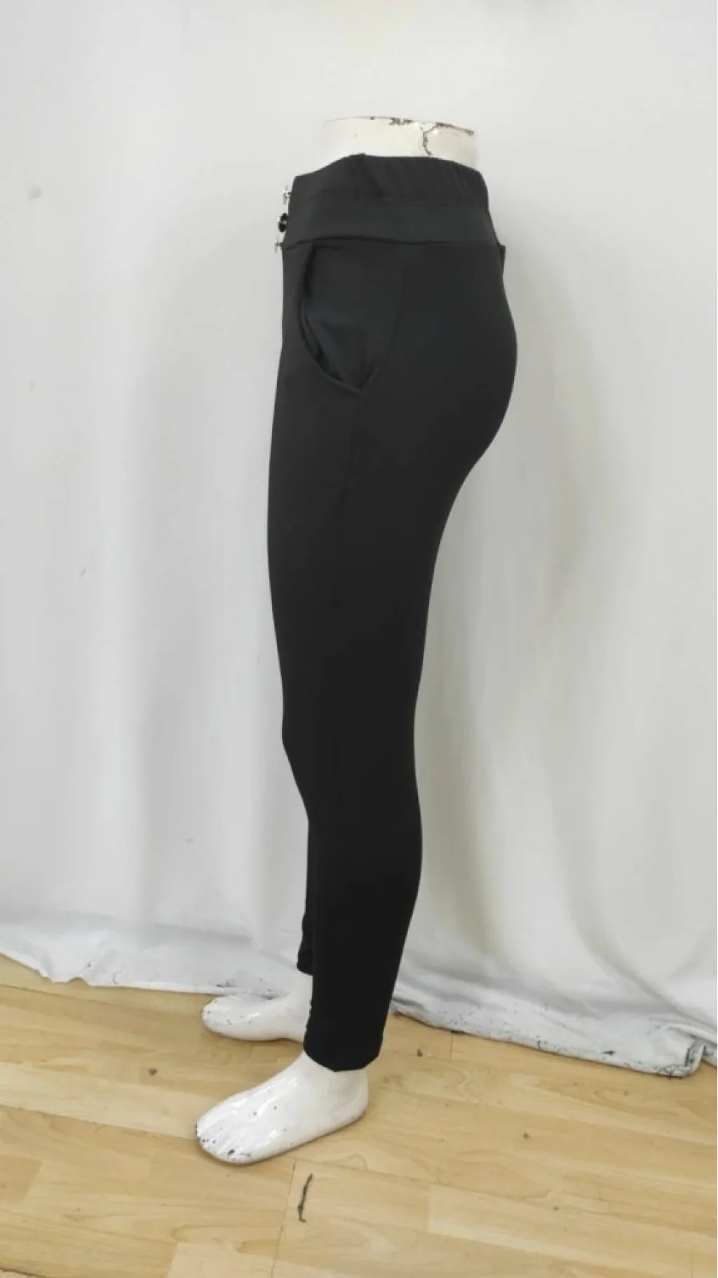 Kadın Yüksek Bel Cepli Düğmeli şardonlu Dalgıç Tayt Pantolon