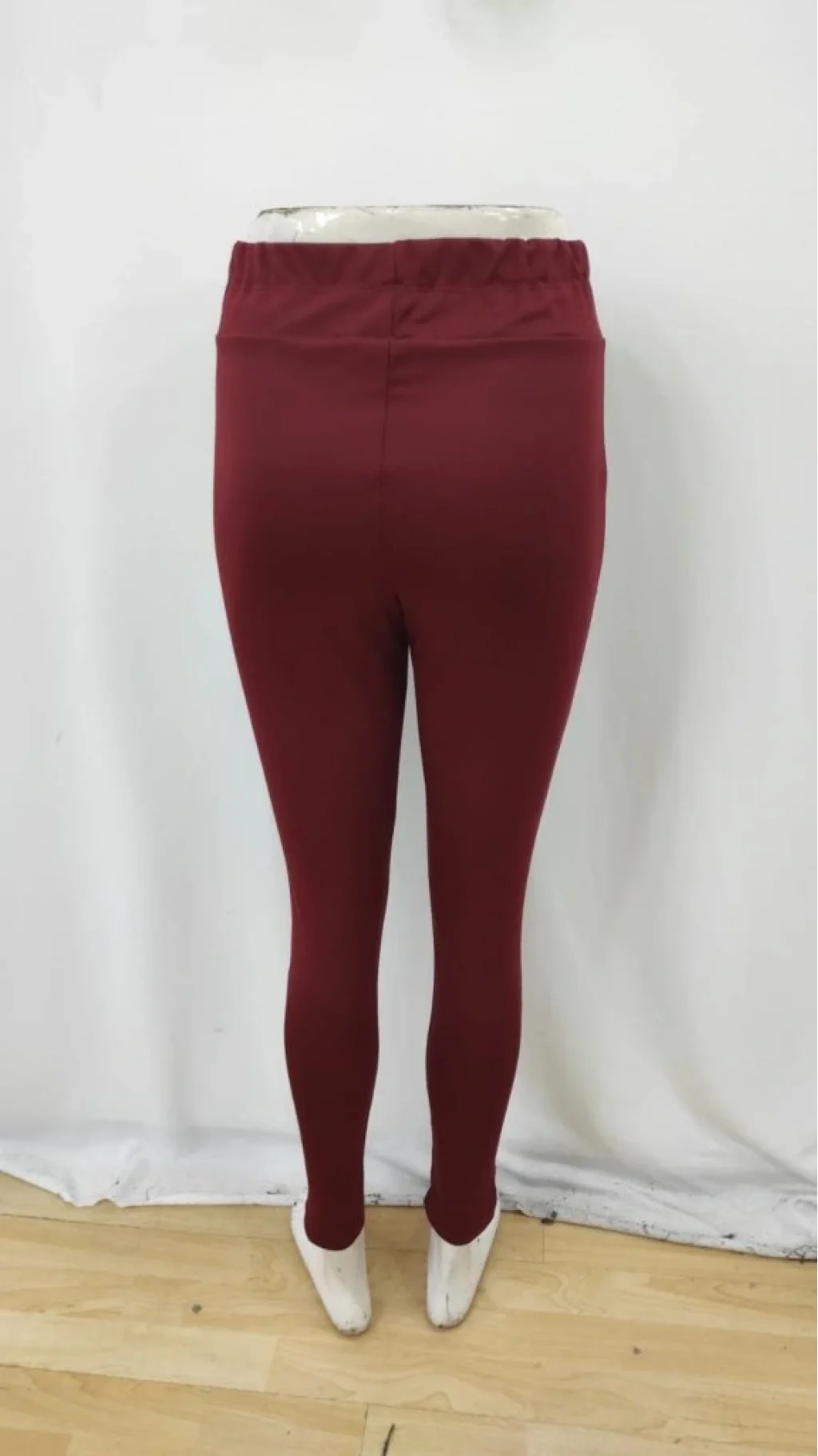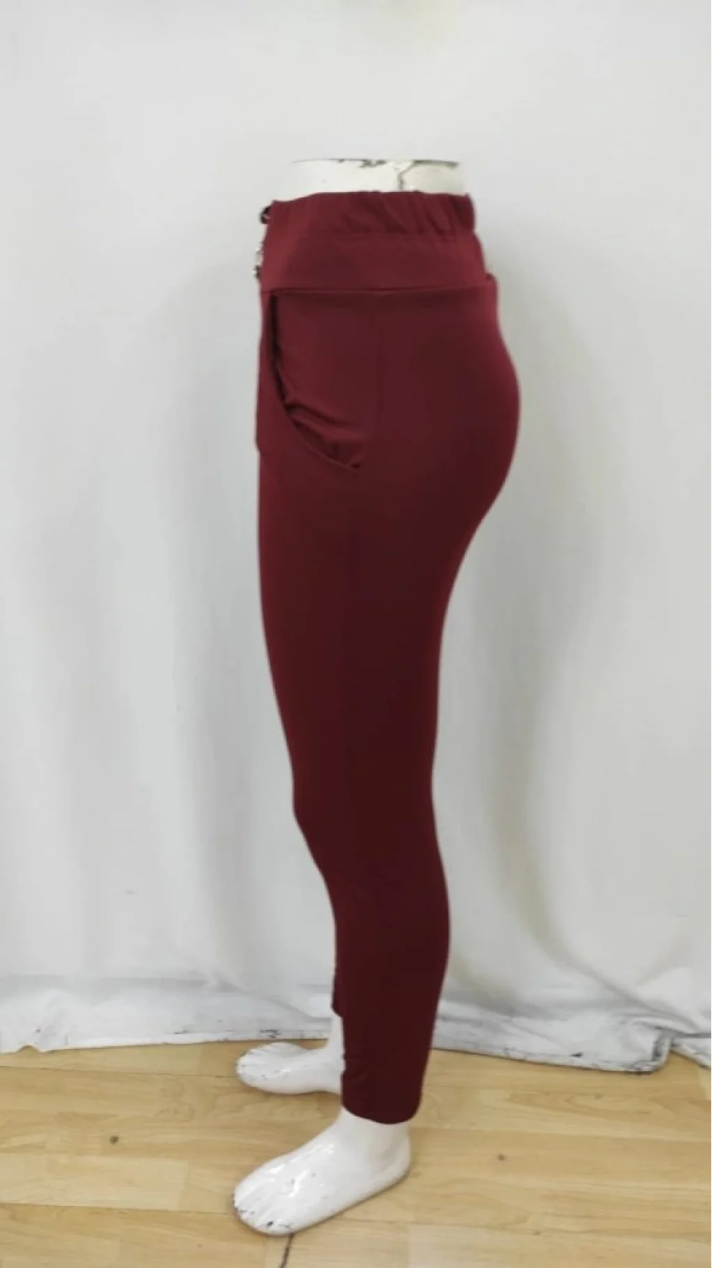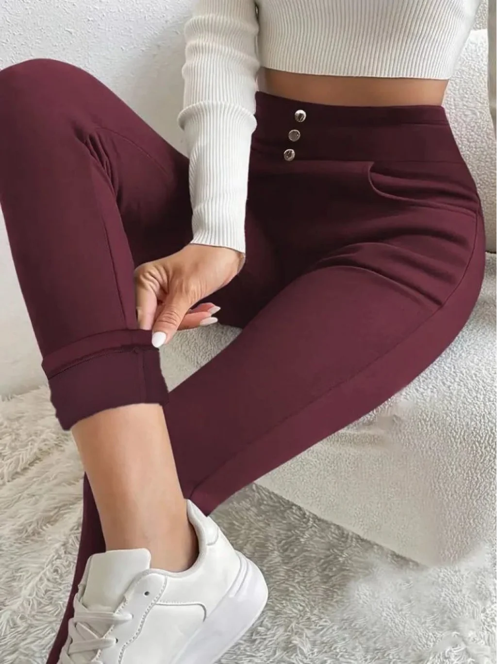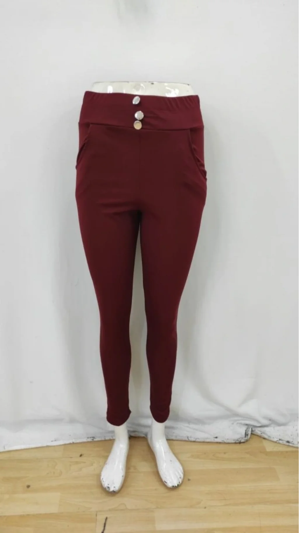 Kadın Yüksek Bel Cepli Düğmeli şardonlu Dalgıç Tayt Pantolon