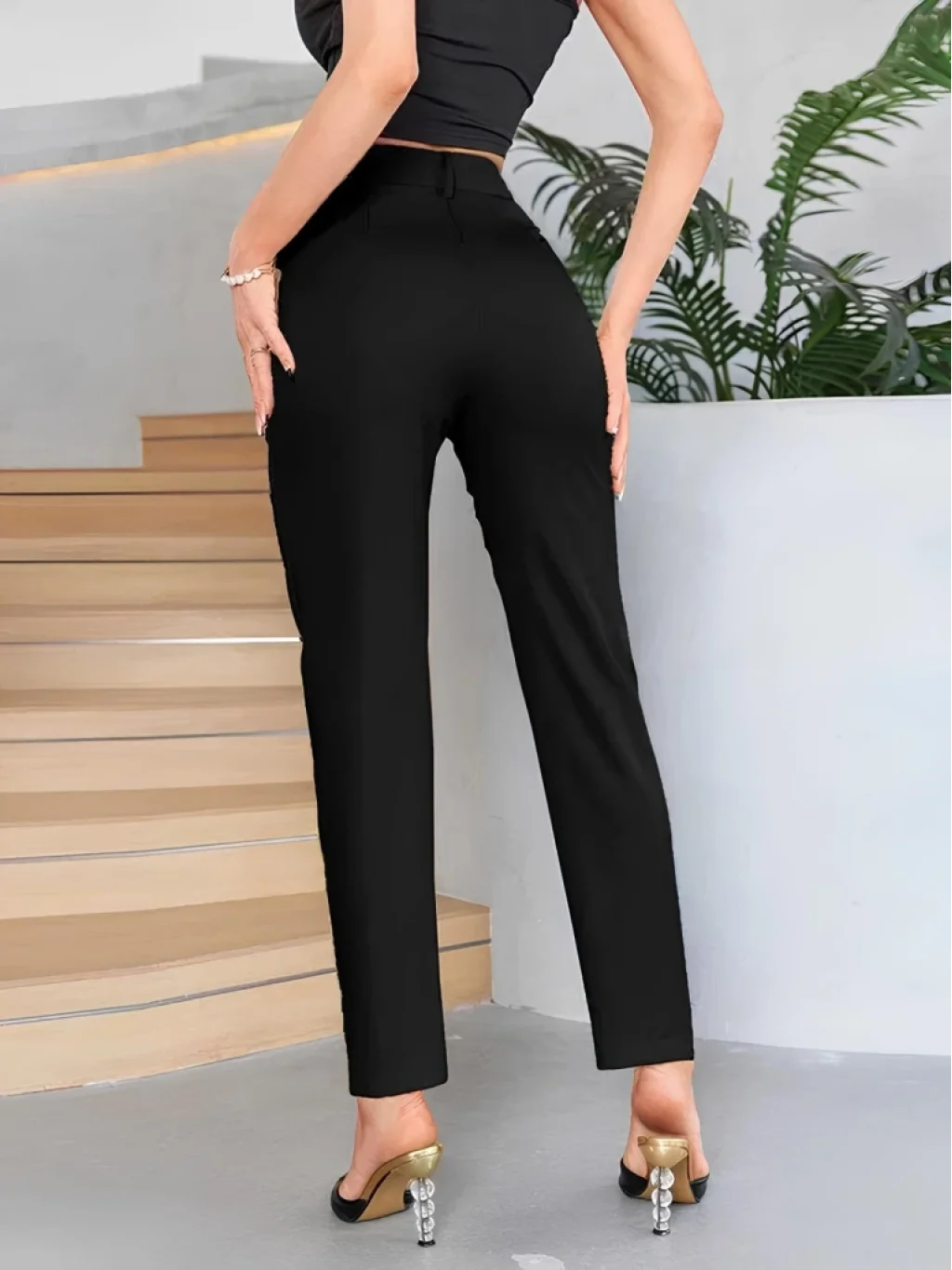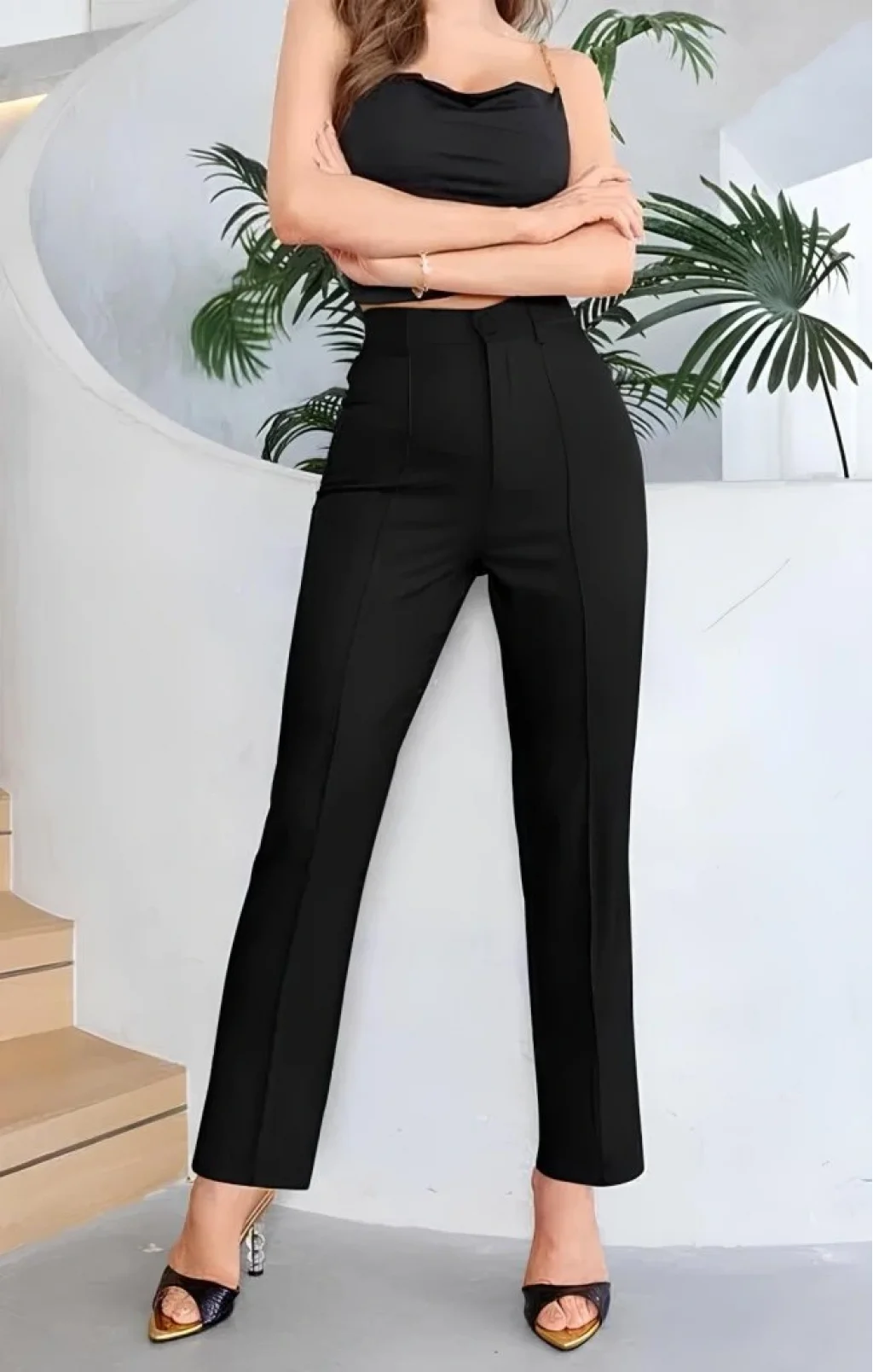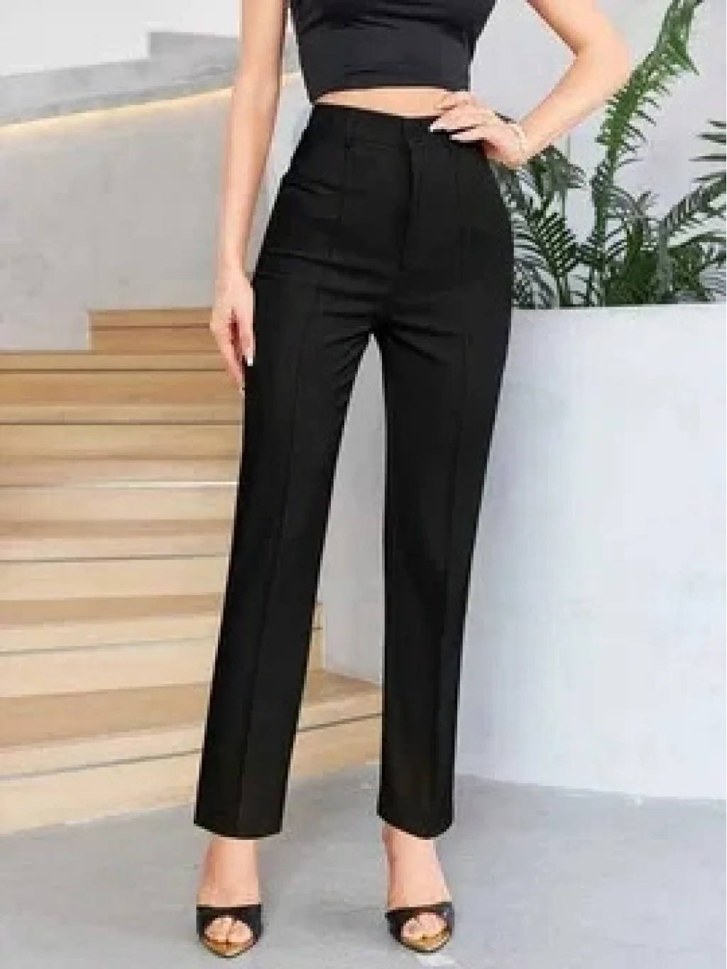 Kadın Yüksek Bel Cepli önden çimalı Dokuma çanta Pantolon