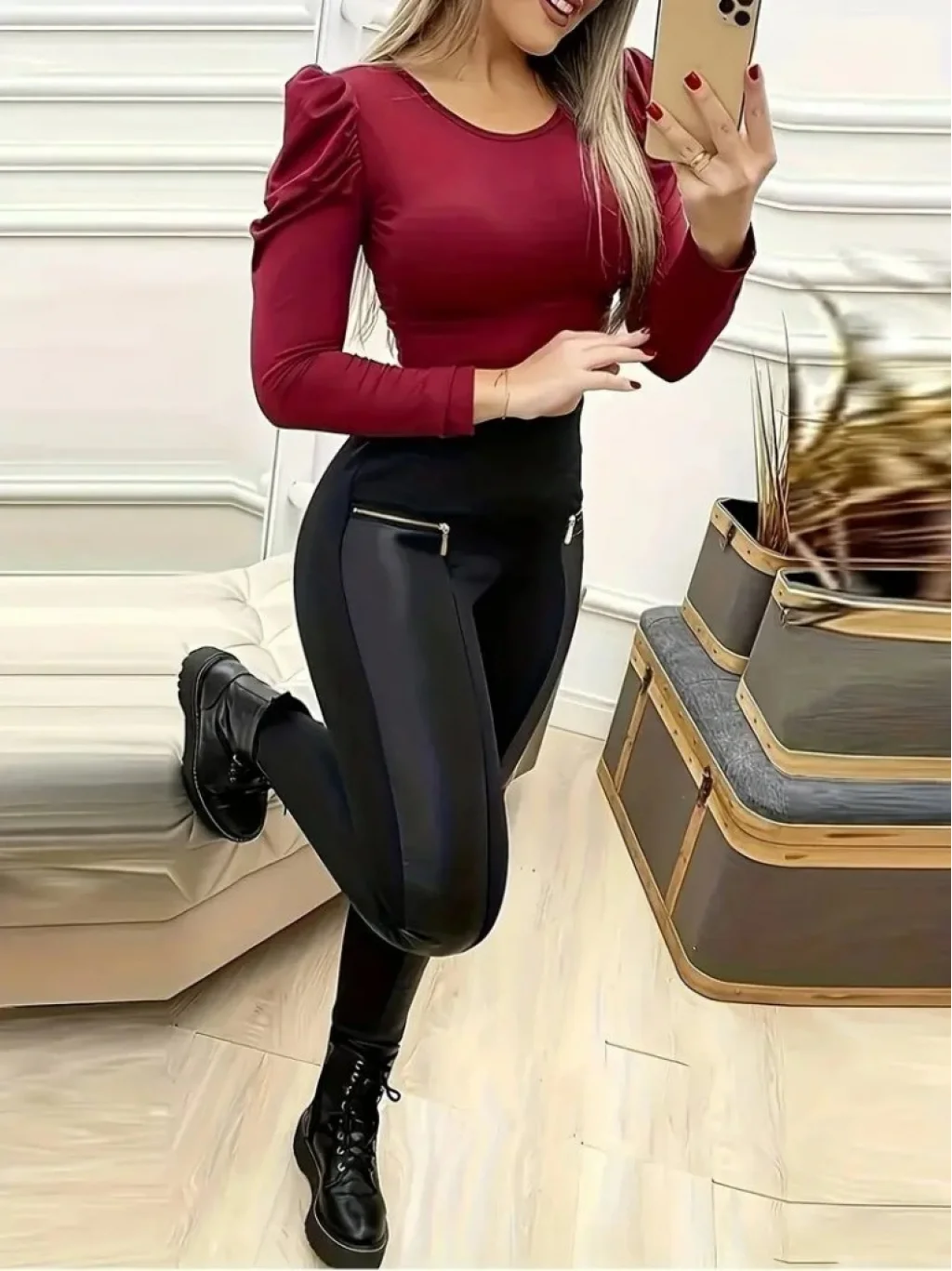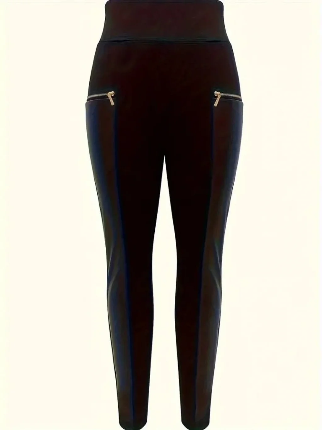 Kadın Yüksek Bel Deri Detaylı Fermuarlı Dalgıç Tayt