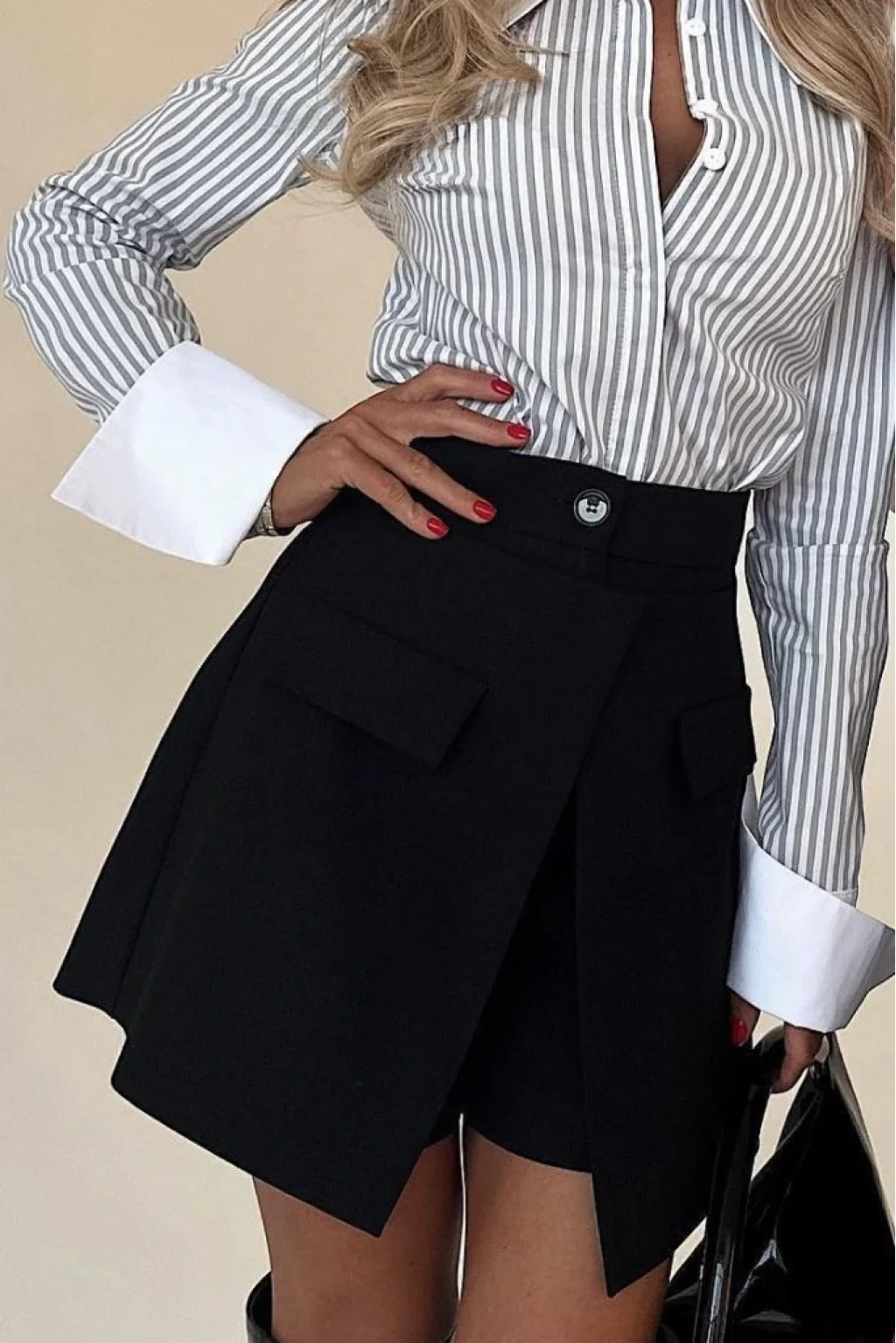 Kadın Yüksek Bel Düğmeli Asimetrik Kesim Cepli Kısa Ithal Krep şort Etek