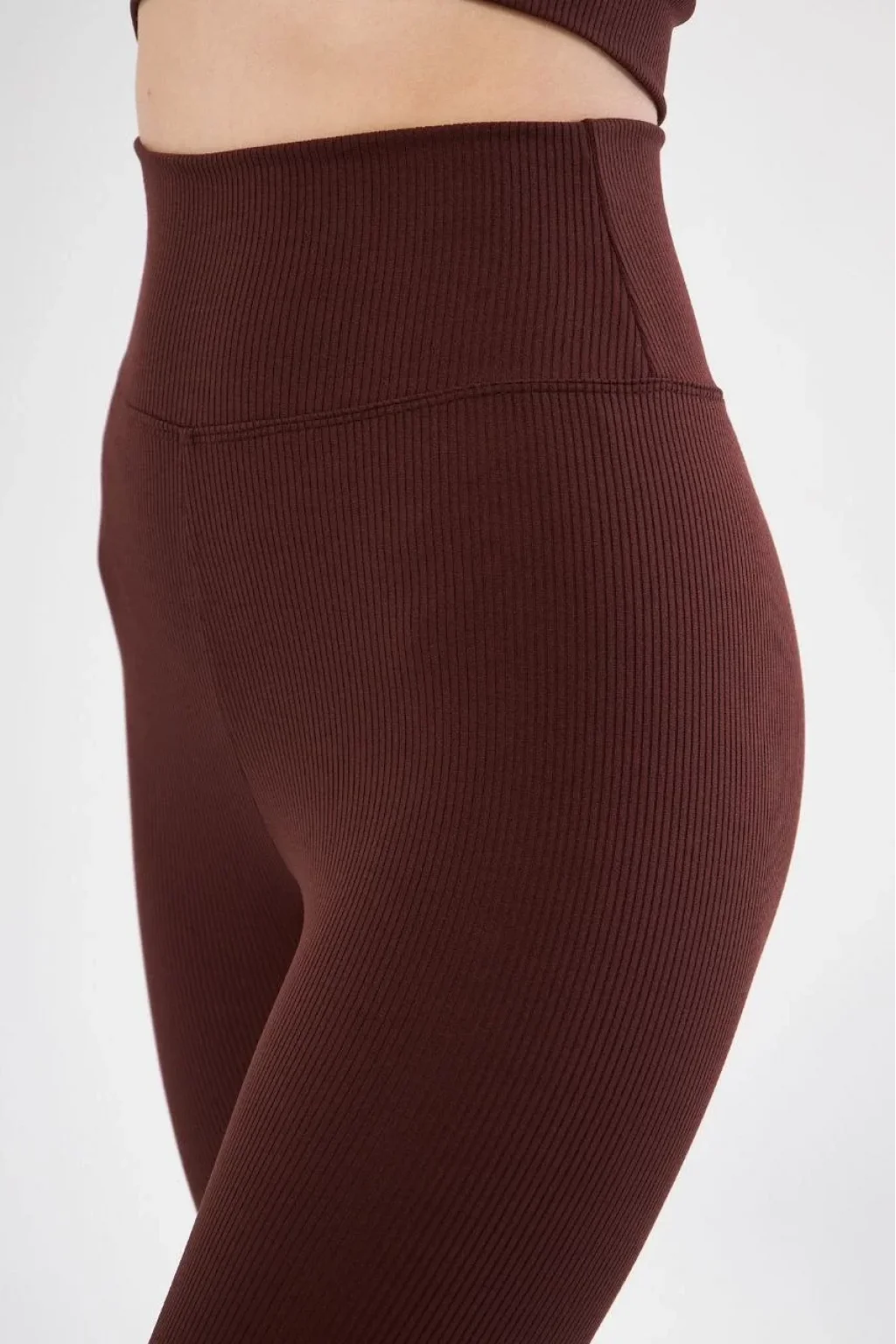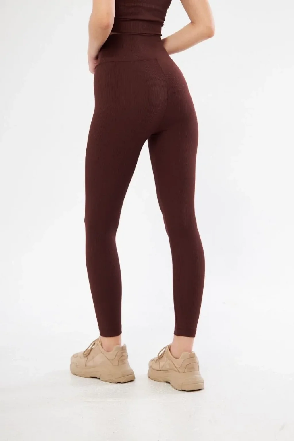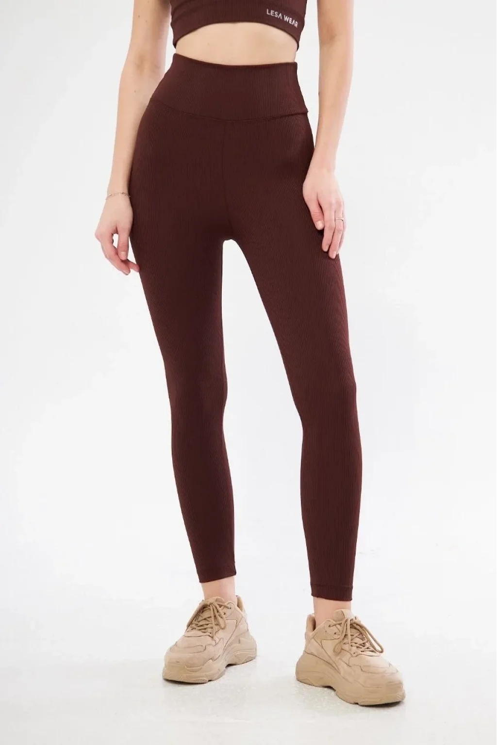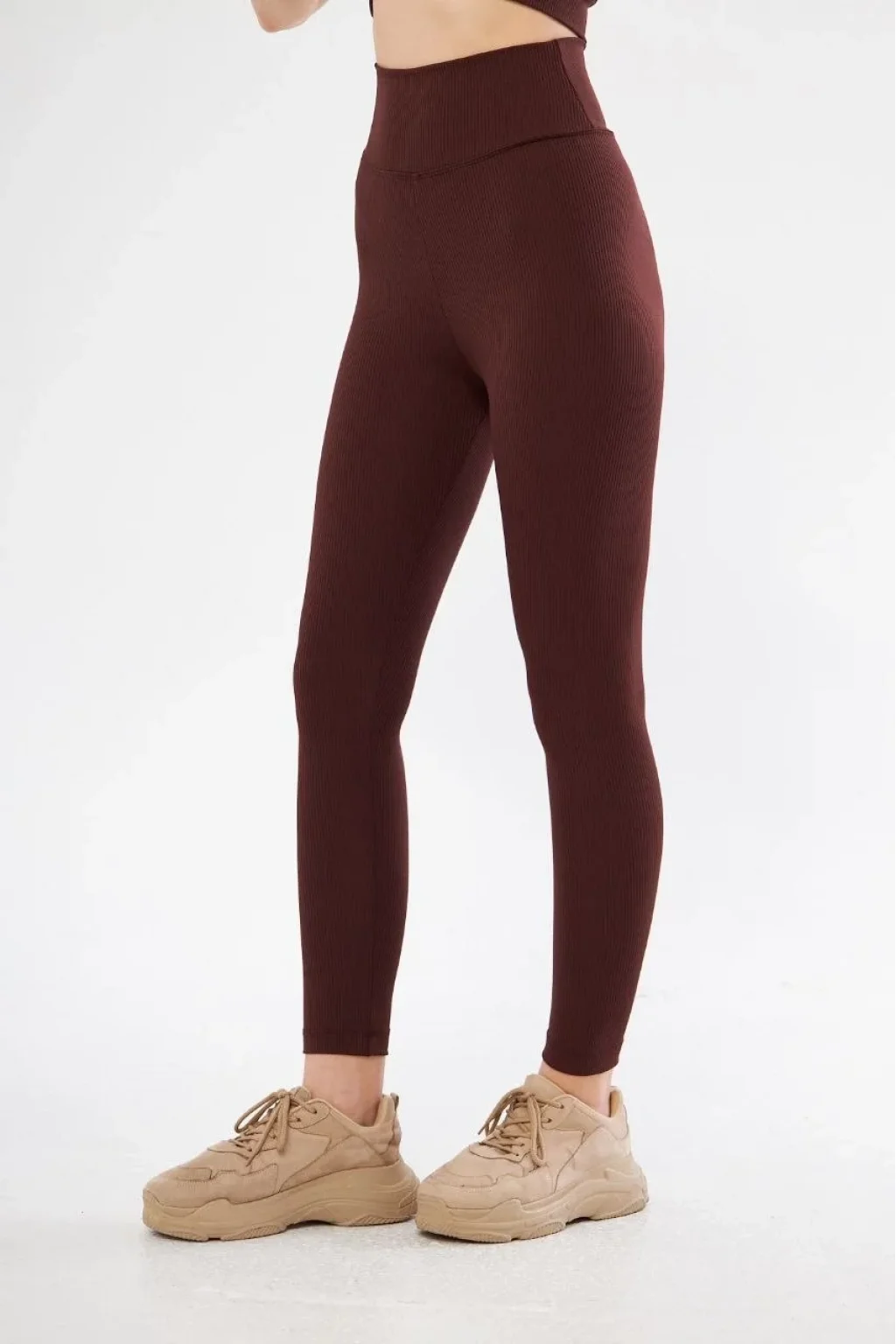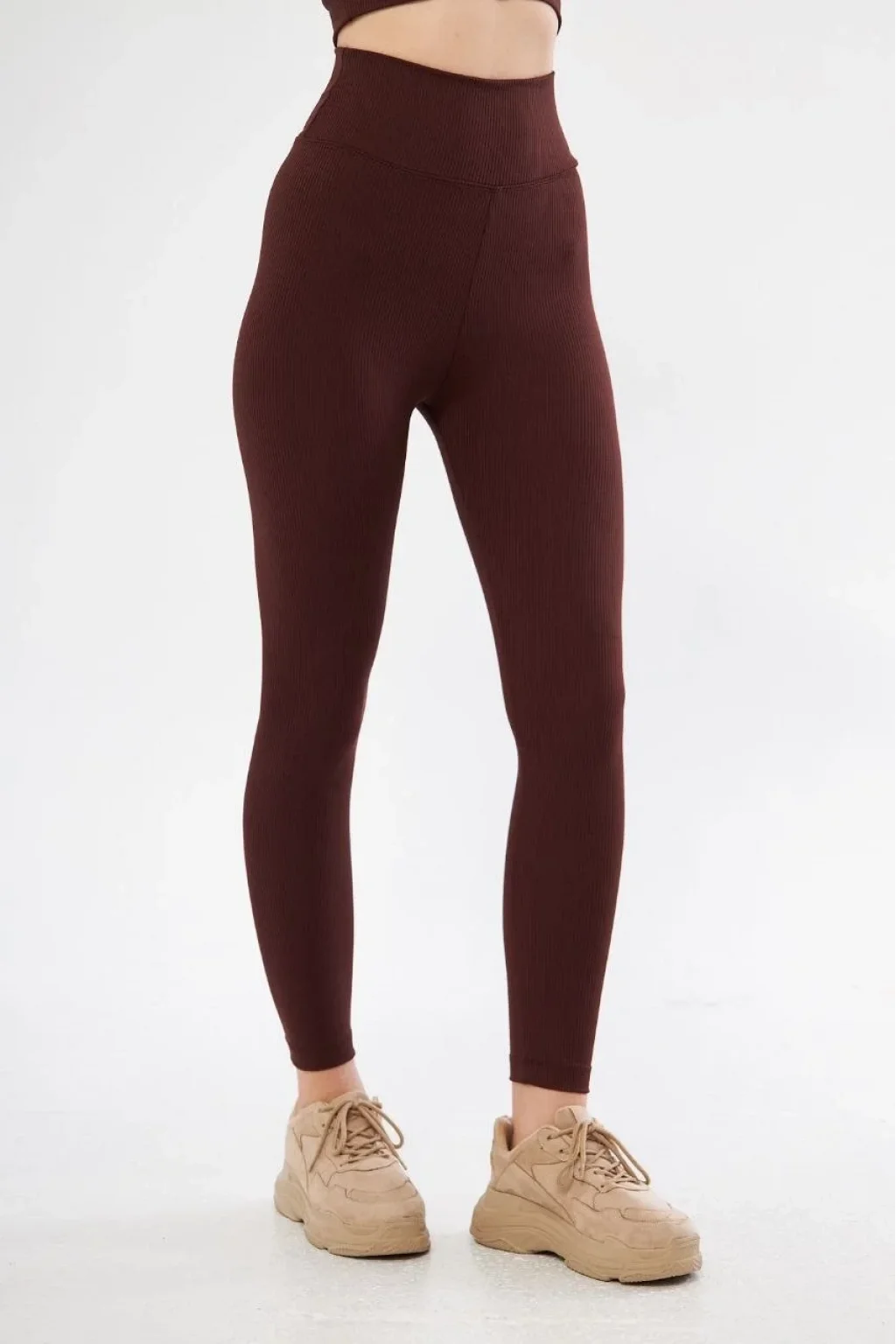 Kadın Yüksek Bel Fitilli Tayt - Bordo