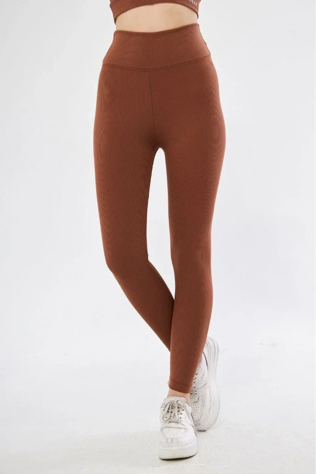 Kadın Yüksek Bel Fitilli Tayt - Kahve