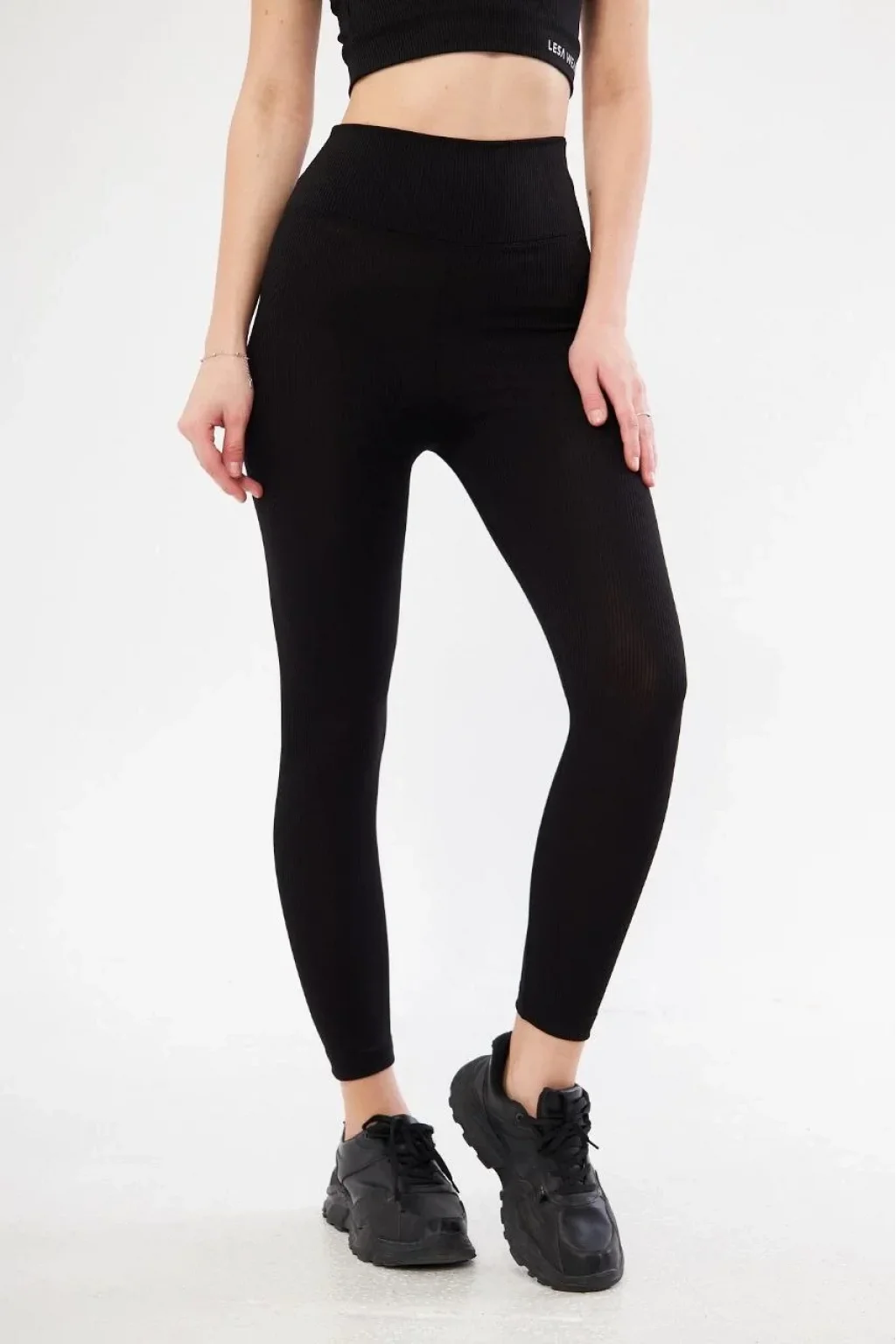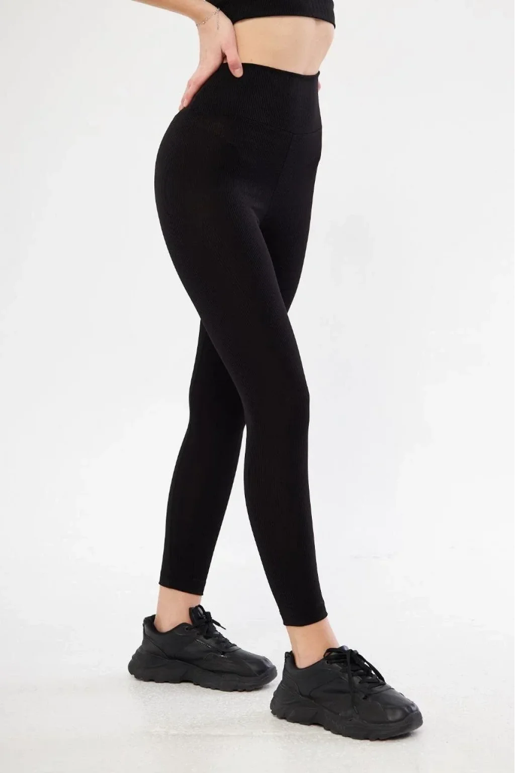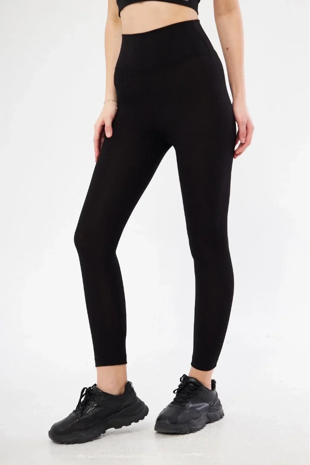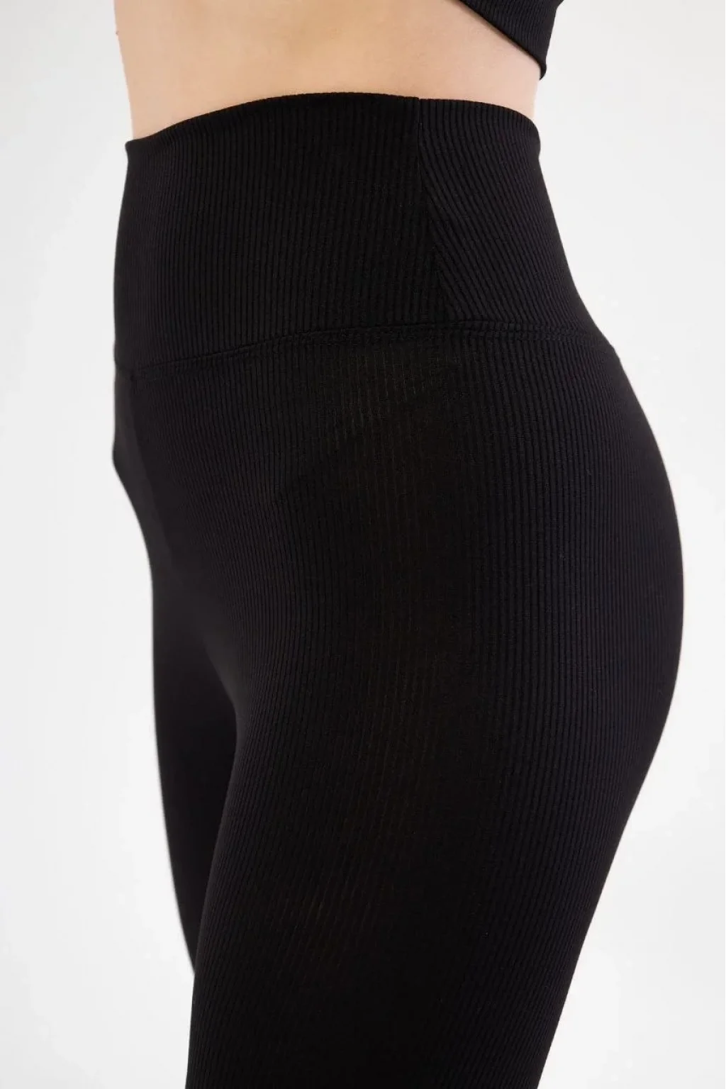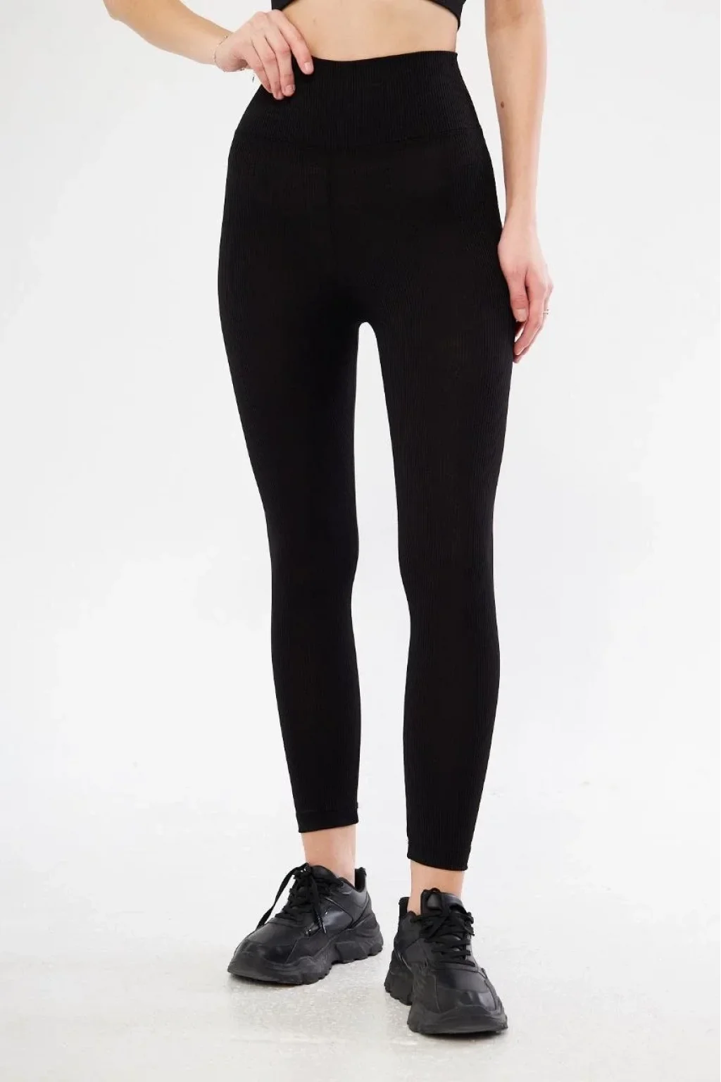 Kadın Yüksek Bel Fitilli Tayt - Siyah
