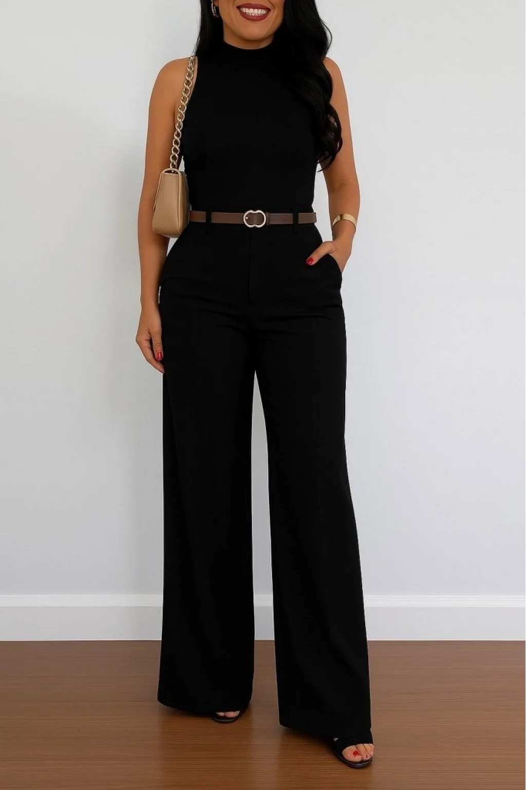 Kadın Yüksek Bel Geniş Paça Detaylı Cepli Ithal Krep Pantolon