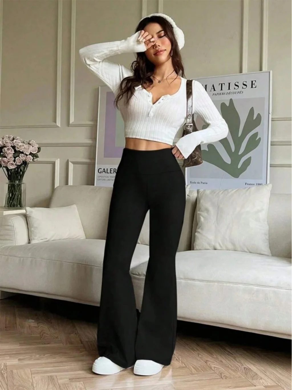 Kadın Yüksek Bel Ispanyol Paçalı Pantolon Tayt