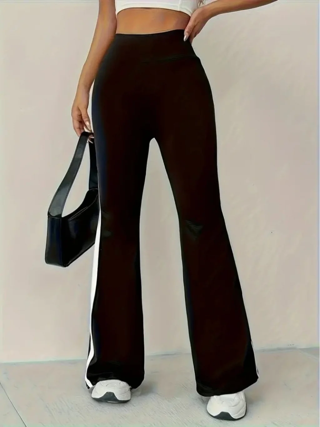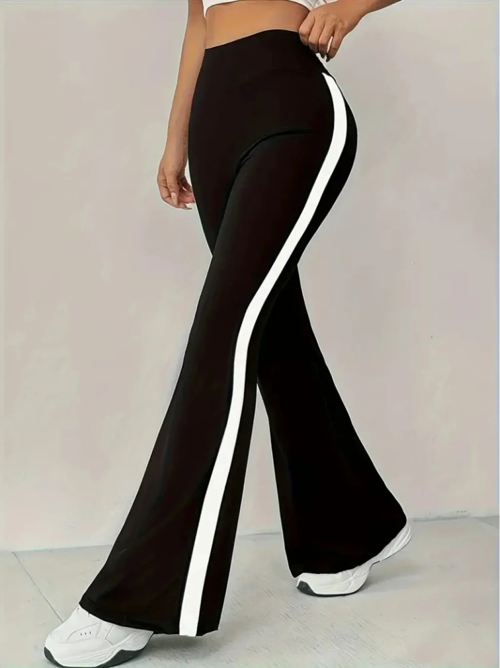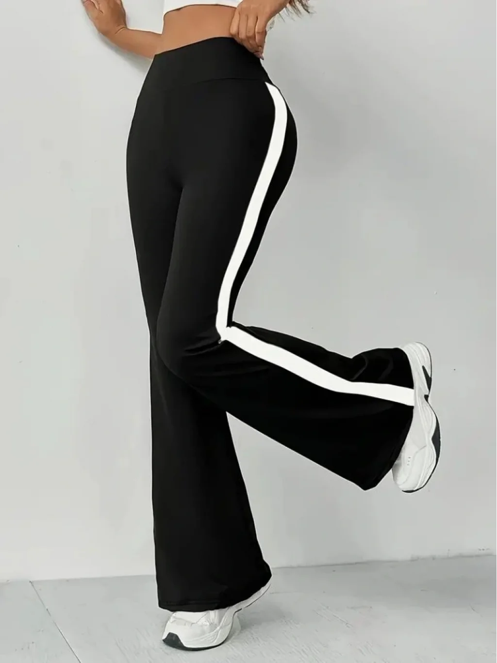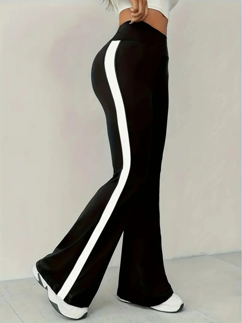 Kadın Yüksek Bel İspanyol Paçalı Yanlardan şerit Detaylı Dalgıç Tayt Pantolon