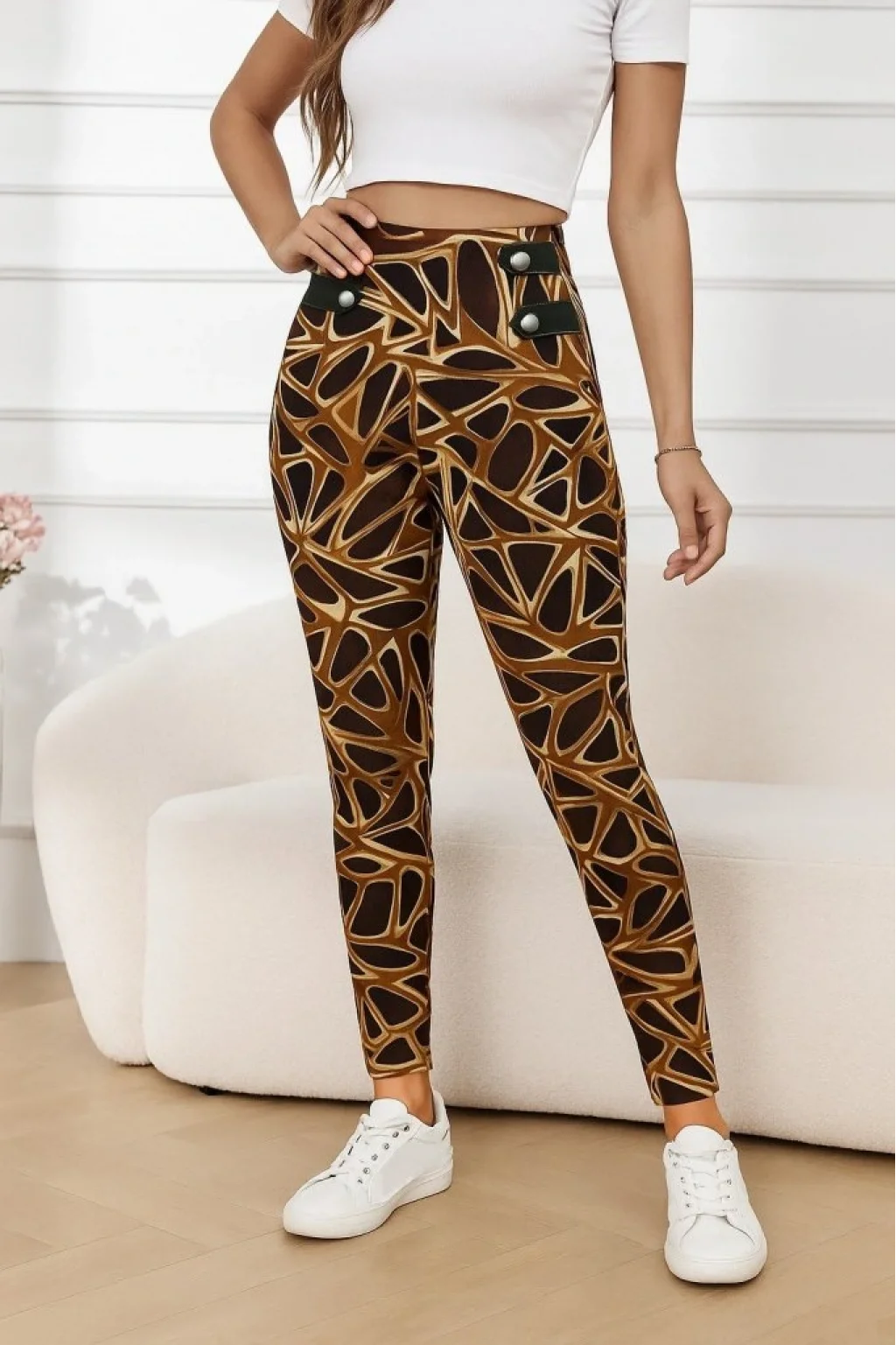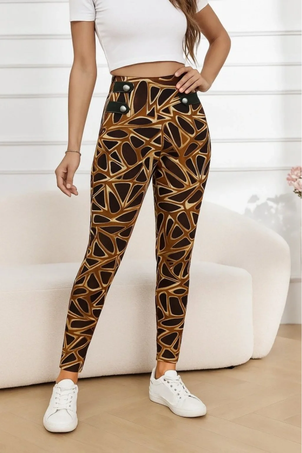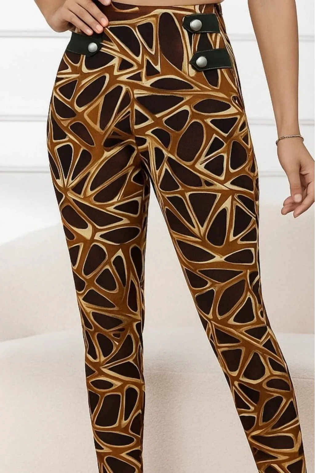 Kadın Yüksek Bel Kaz Ayağı Desenli Yan şerit Düğme Detaylı Dalgıç Pantolon