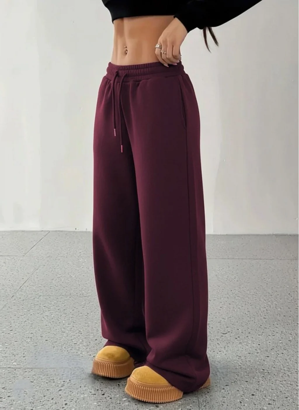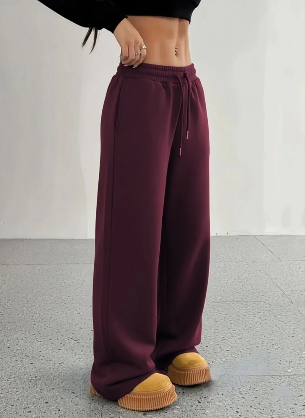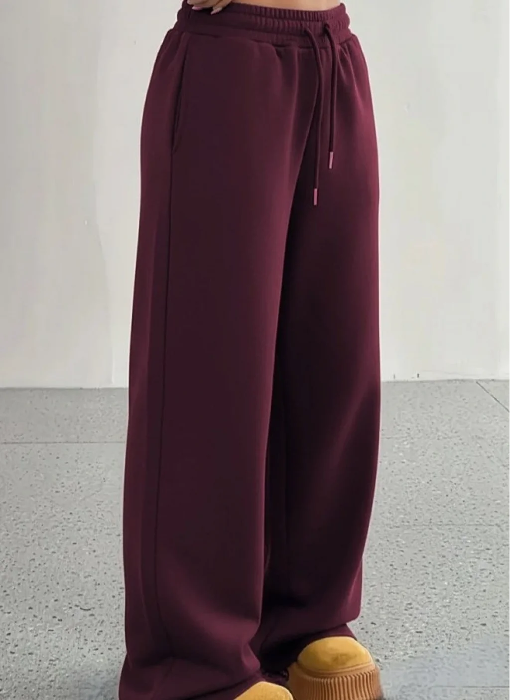 Kadın Yüksek Bel Lastikli Bağcıklı Geniş Kesim Dalgıç Mürdüm Pantolon