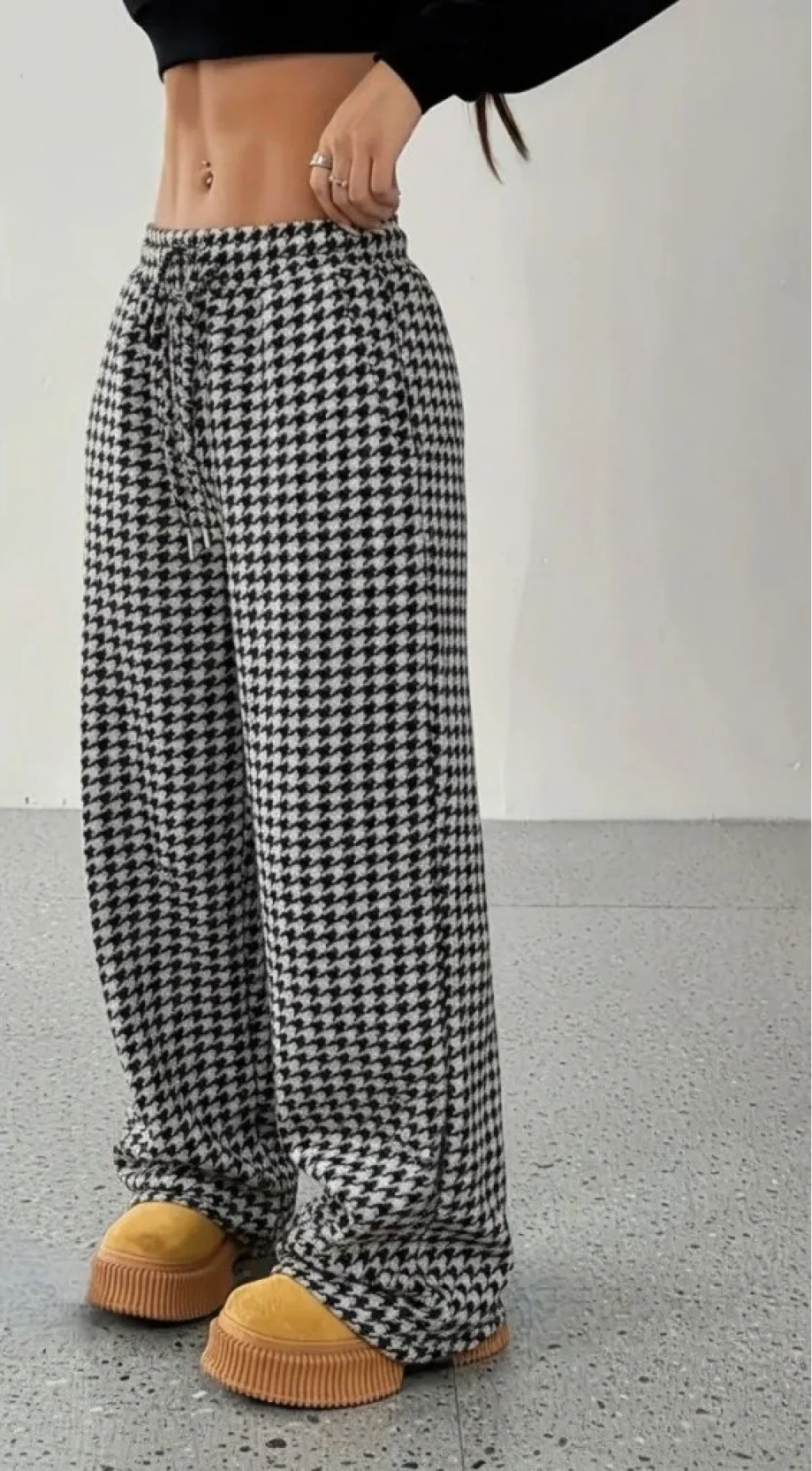 Kadın Yüksek Bel Lastikli Bağcıklı Geniş Kesim Kazayağı Dalgıç Pantolon