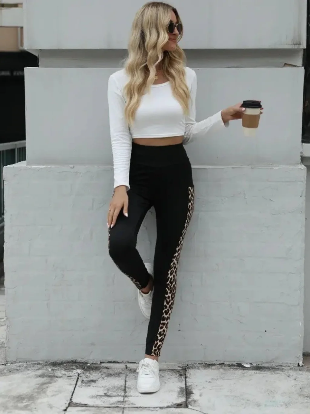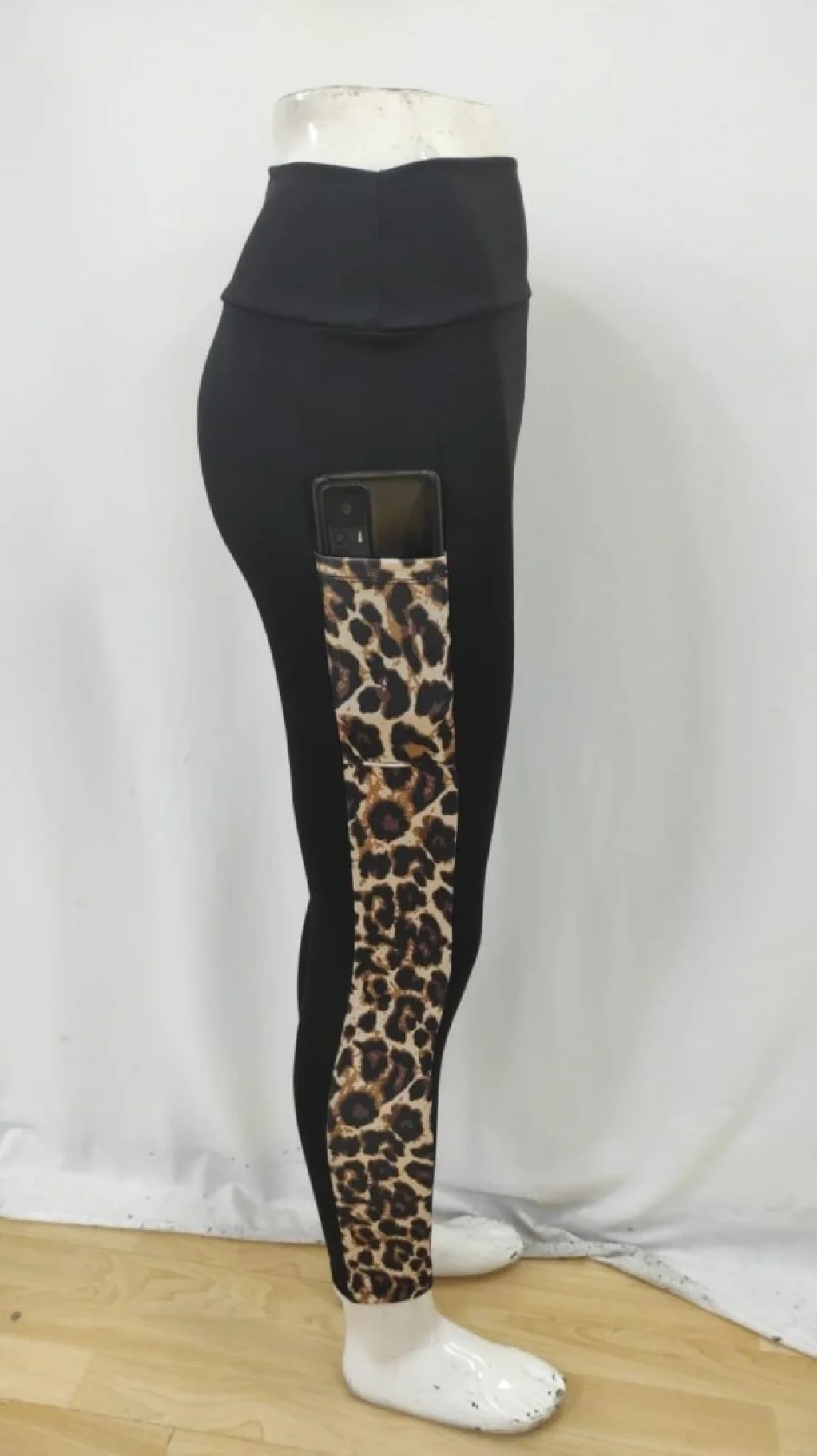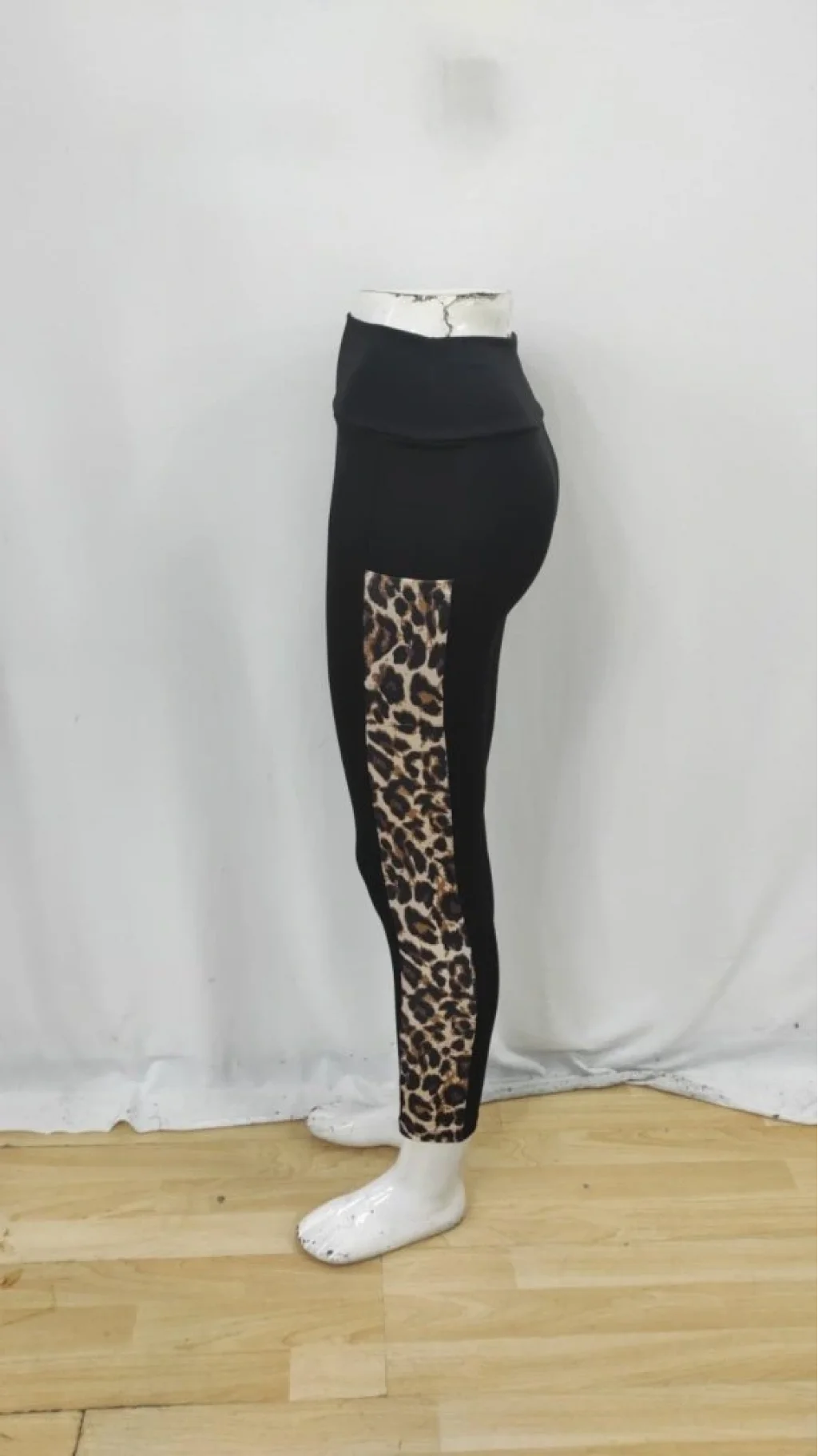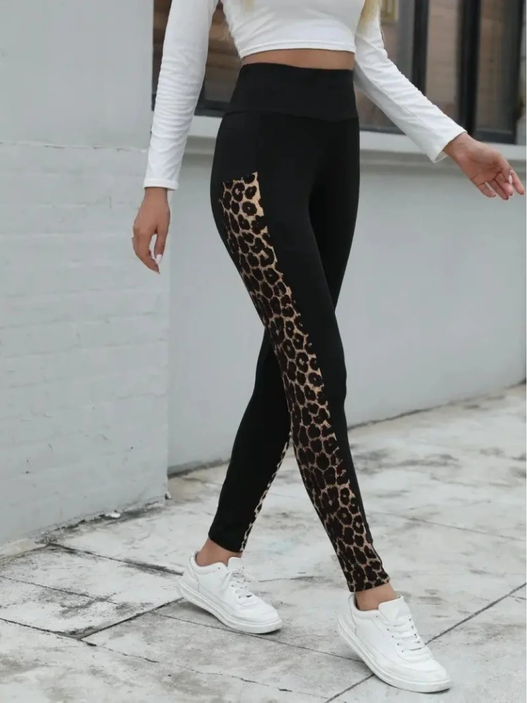 Kadın Yüksek Bel Leopar Desen Ve Cep Detaylı Dalgıç Tayt