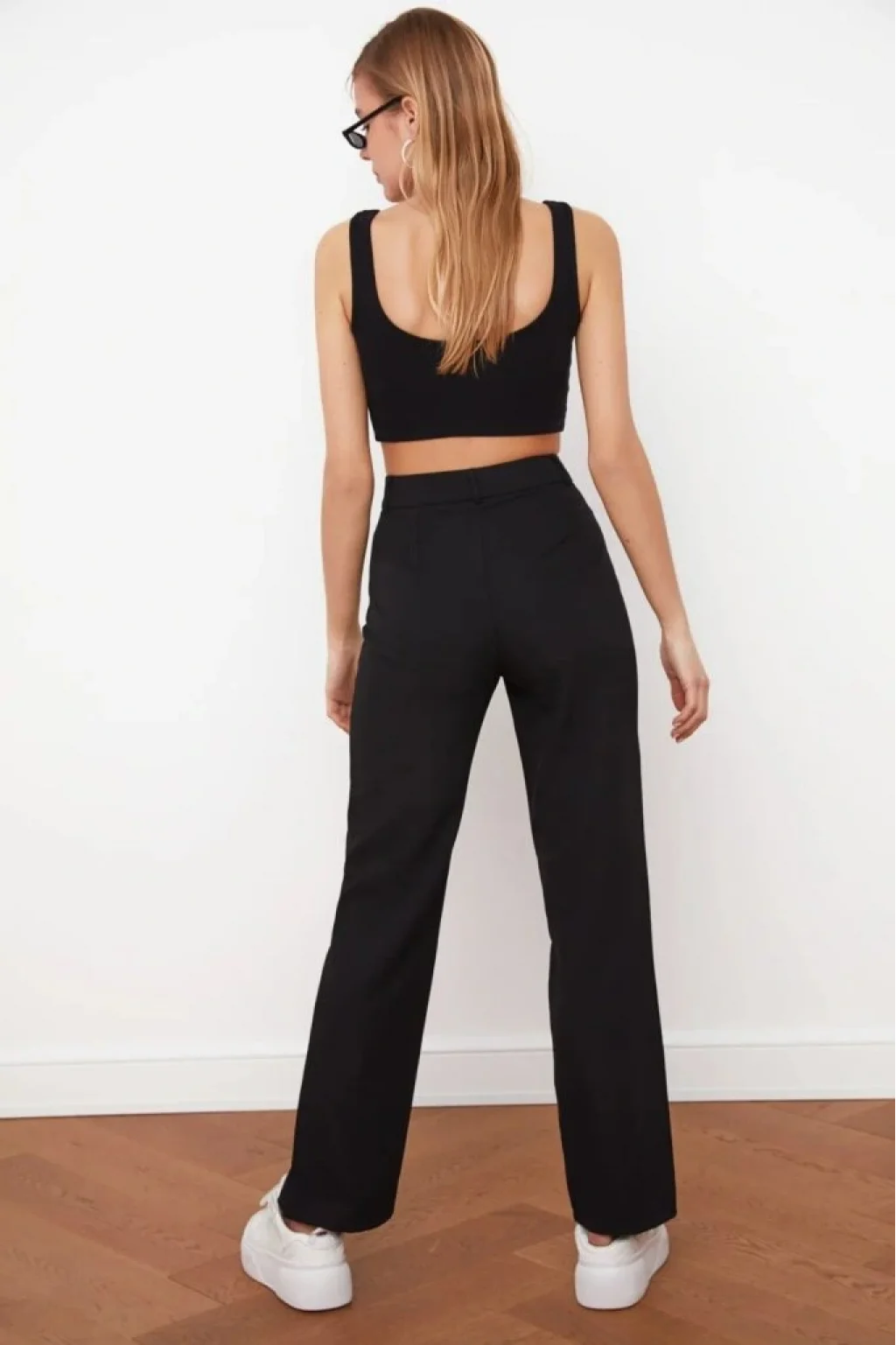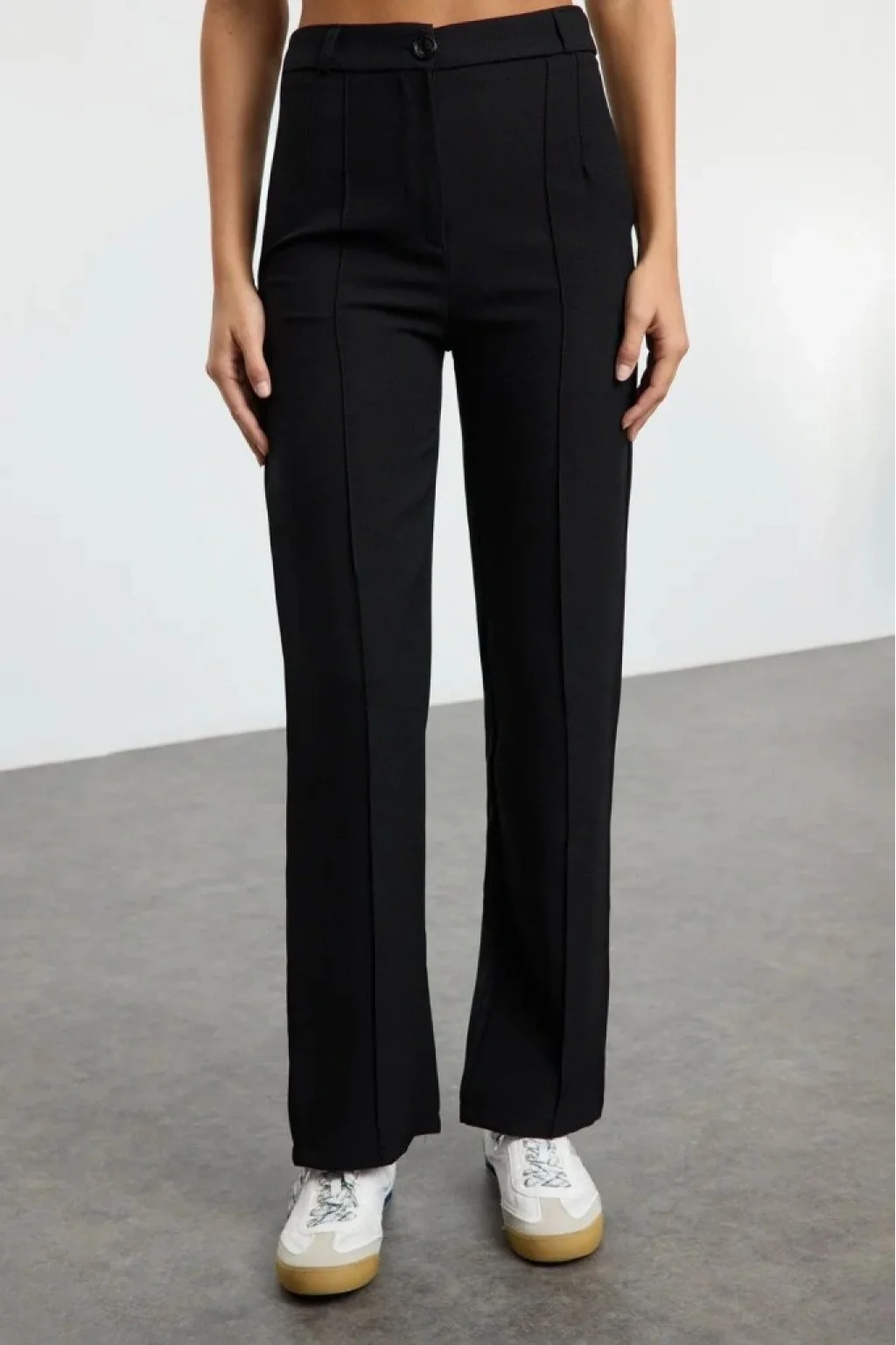 Kadın Yüksek Bel Nervurlu Ithal Krep Pantolon