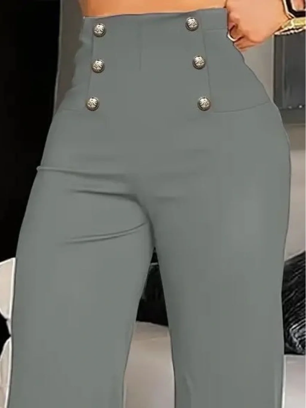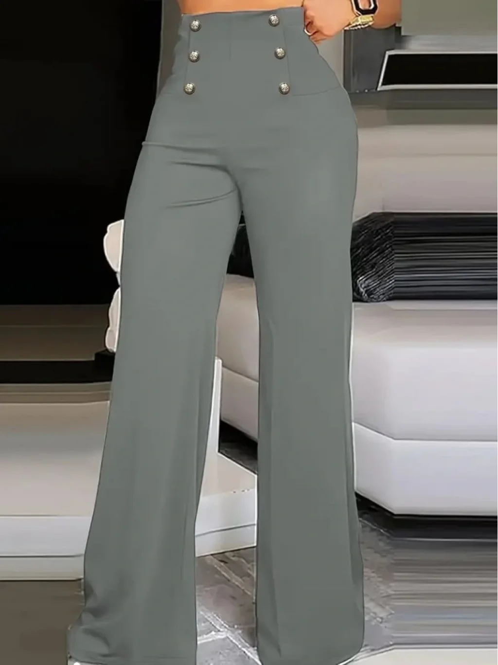 Kadın Yüksek Bel önden Düğmeli Uzun Paçaya Doğru Geniş Ithal Krep Pantolon