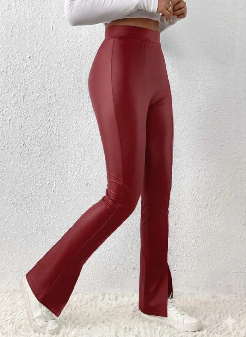 Kadın Yüksek Bel önden Yırtmaçlı Deri Tayt