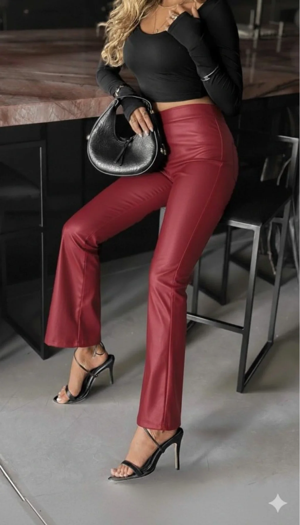 Kadın Yüksek Bel Paçaya Doğru Geniş Deri Pantolon