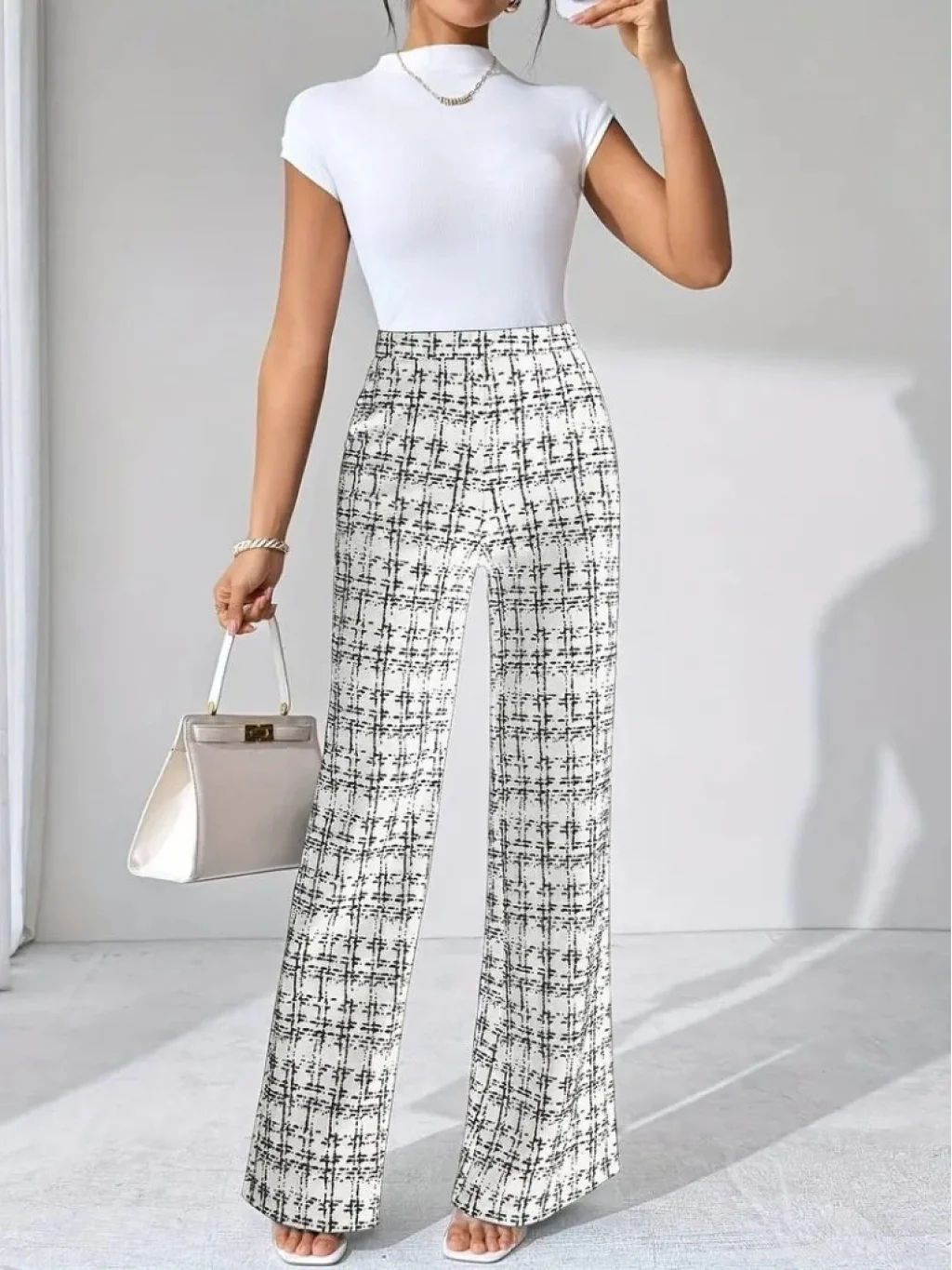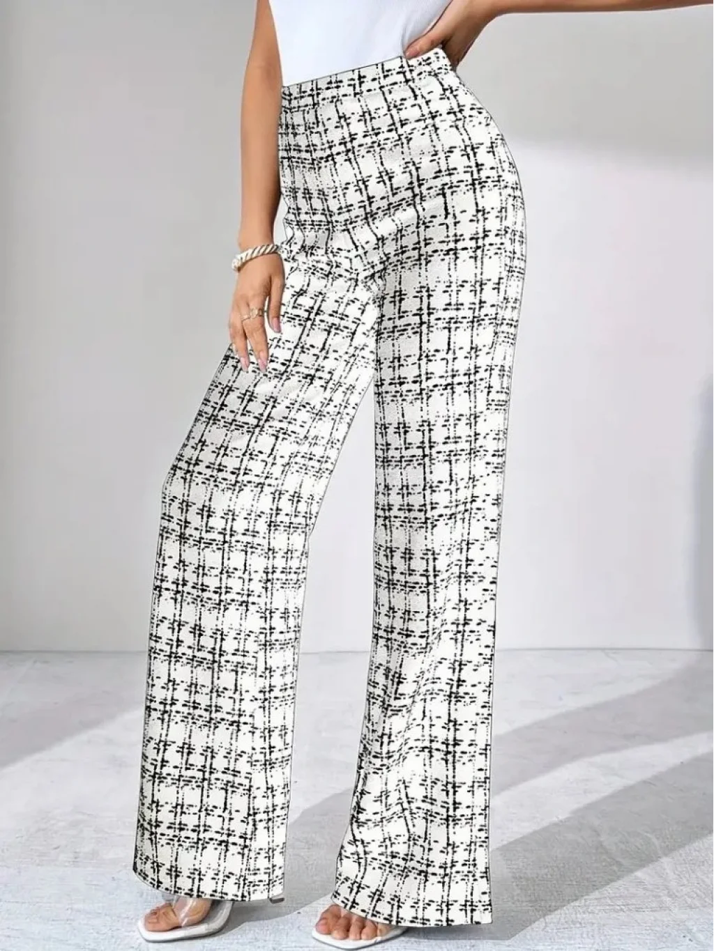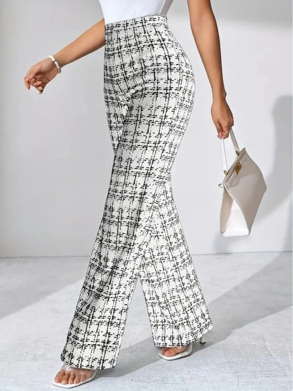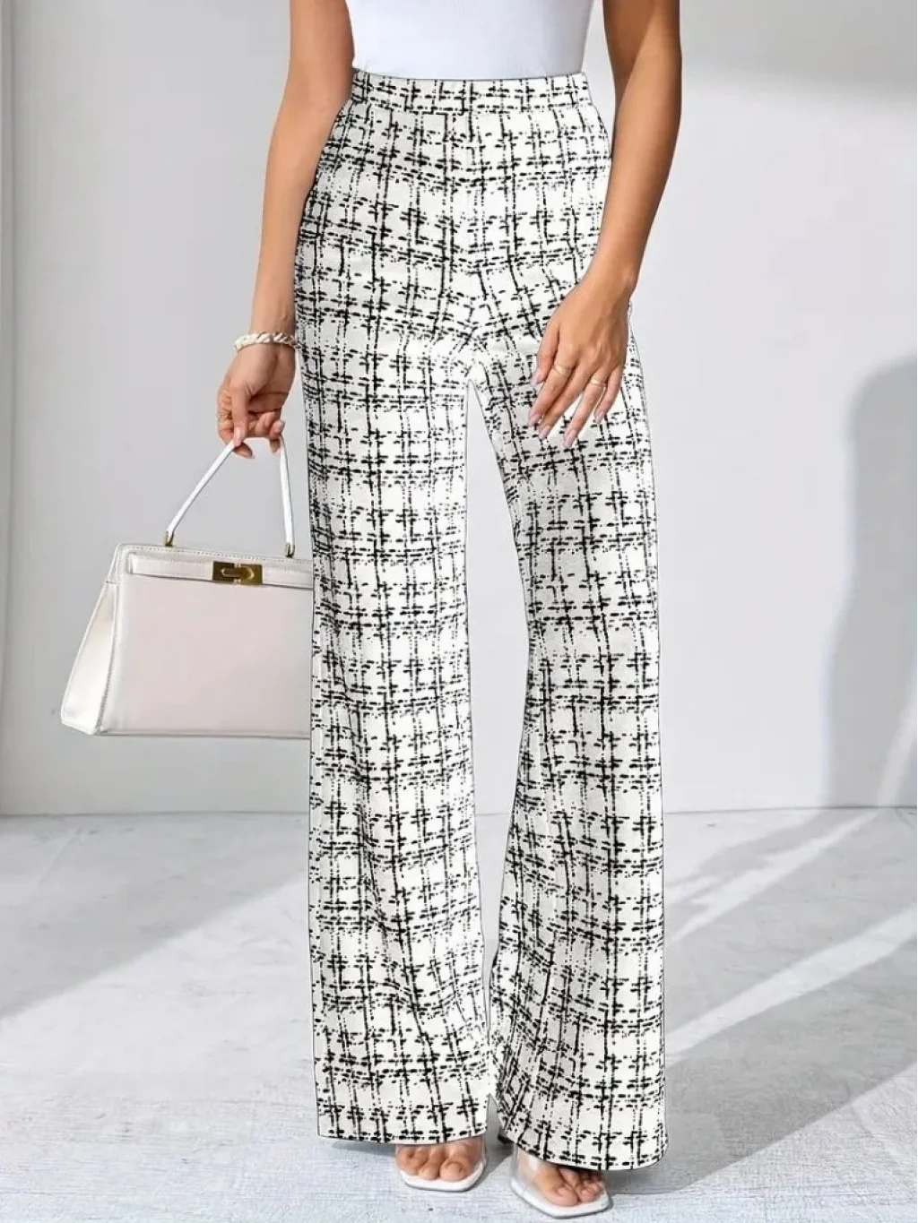 Kadın Yüksek Bel Paçaya Doğru Geniş Dokuma Pantolon