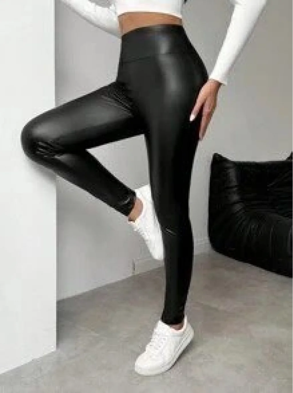 Kadın Yüksek Bel şardonlu Parlak Deri Tayt