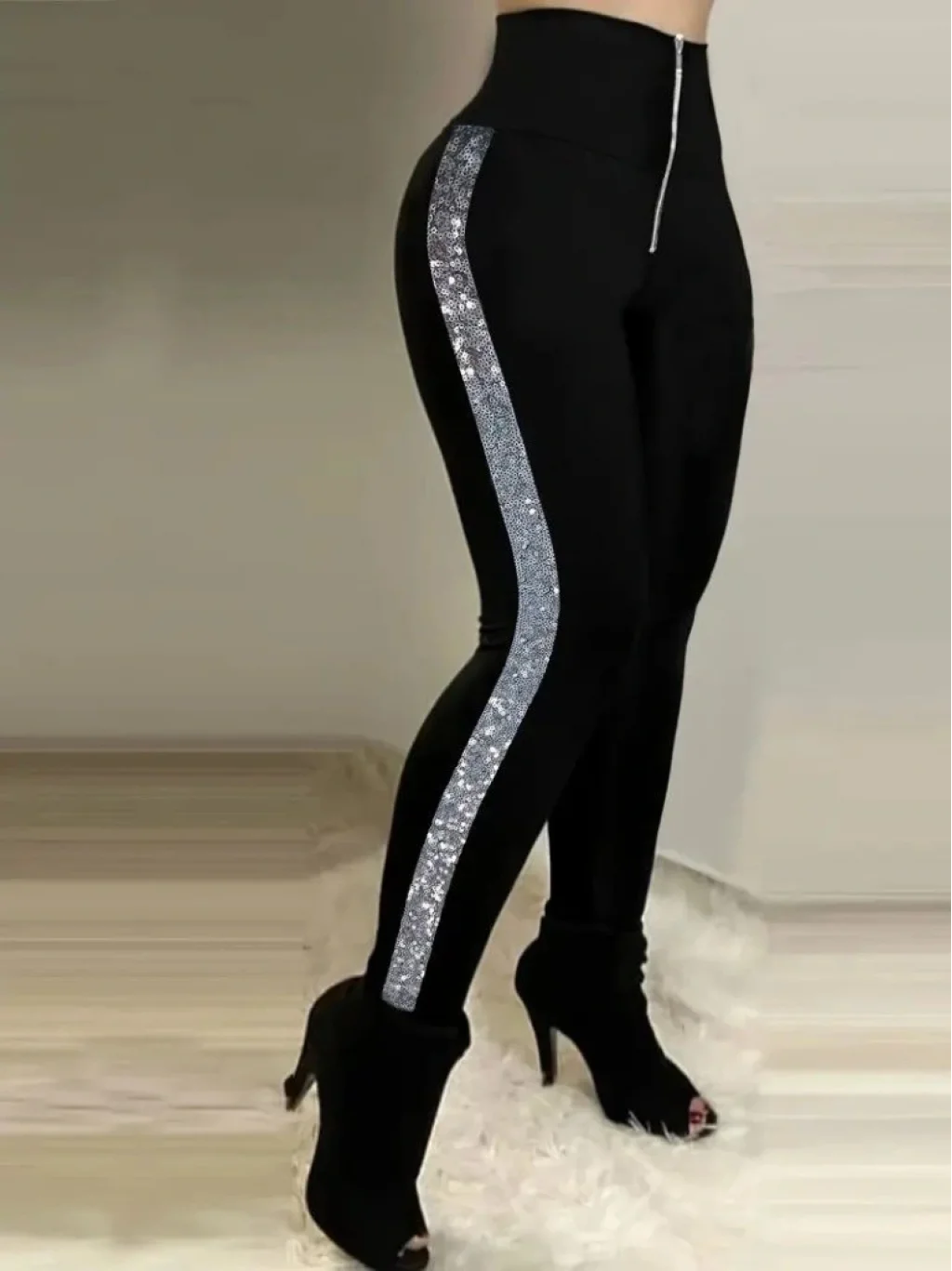 Kadın Yüksek Bel Yan şerit Detaylı Dalgıç Tayt