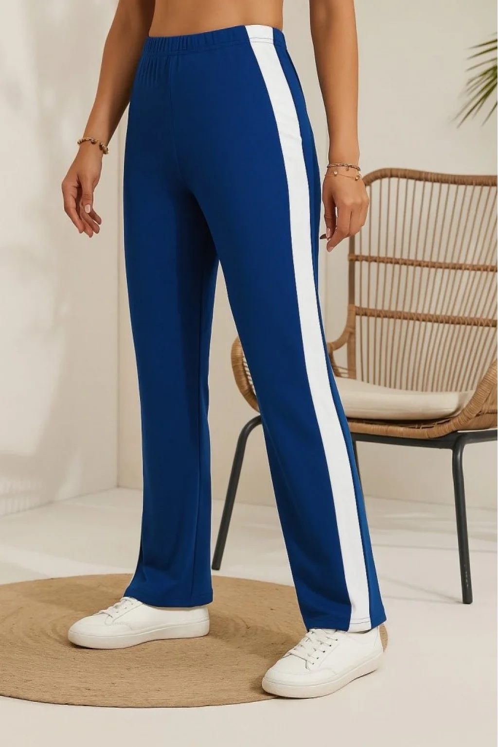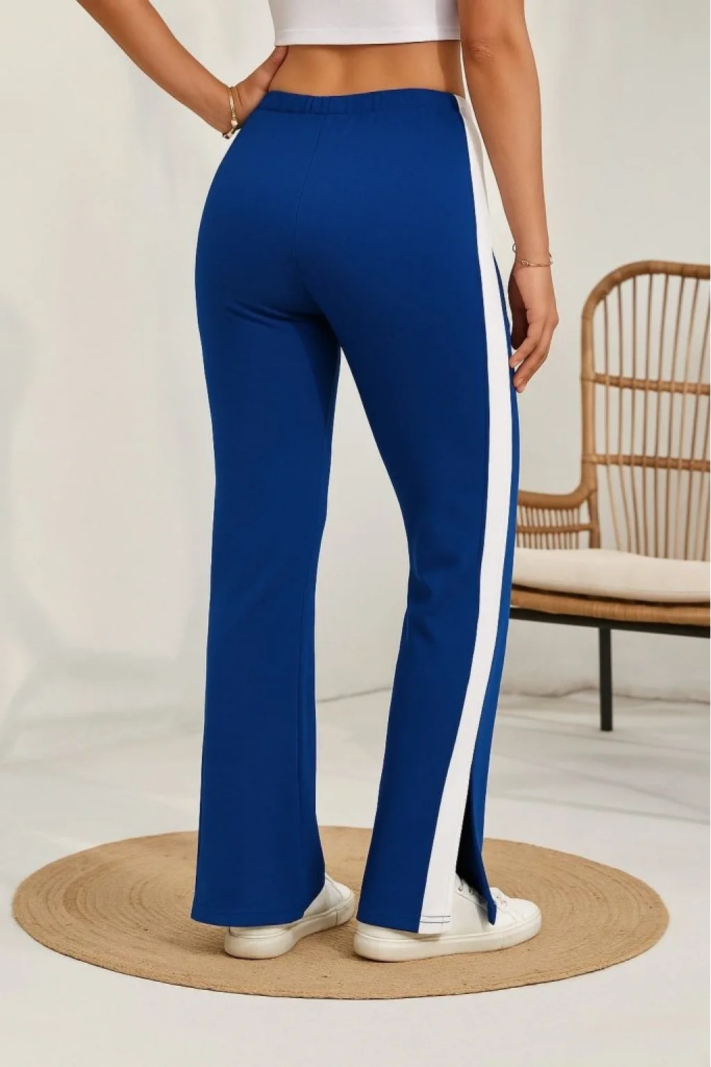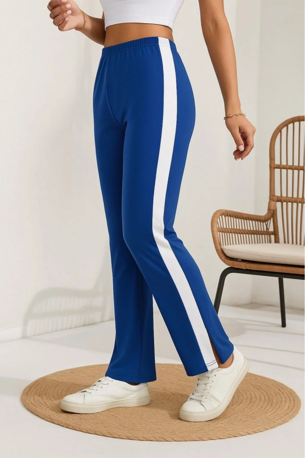 Kadın Yüksek Bel Yan şerit Detaylı Yırtmaçlı Viskon Iki Iplik Pantolon