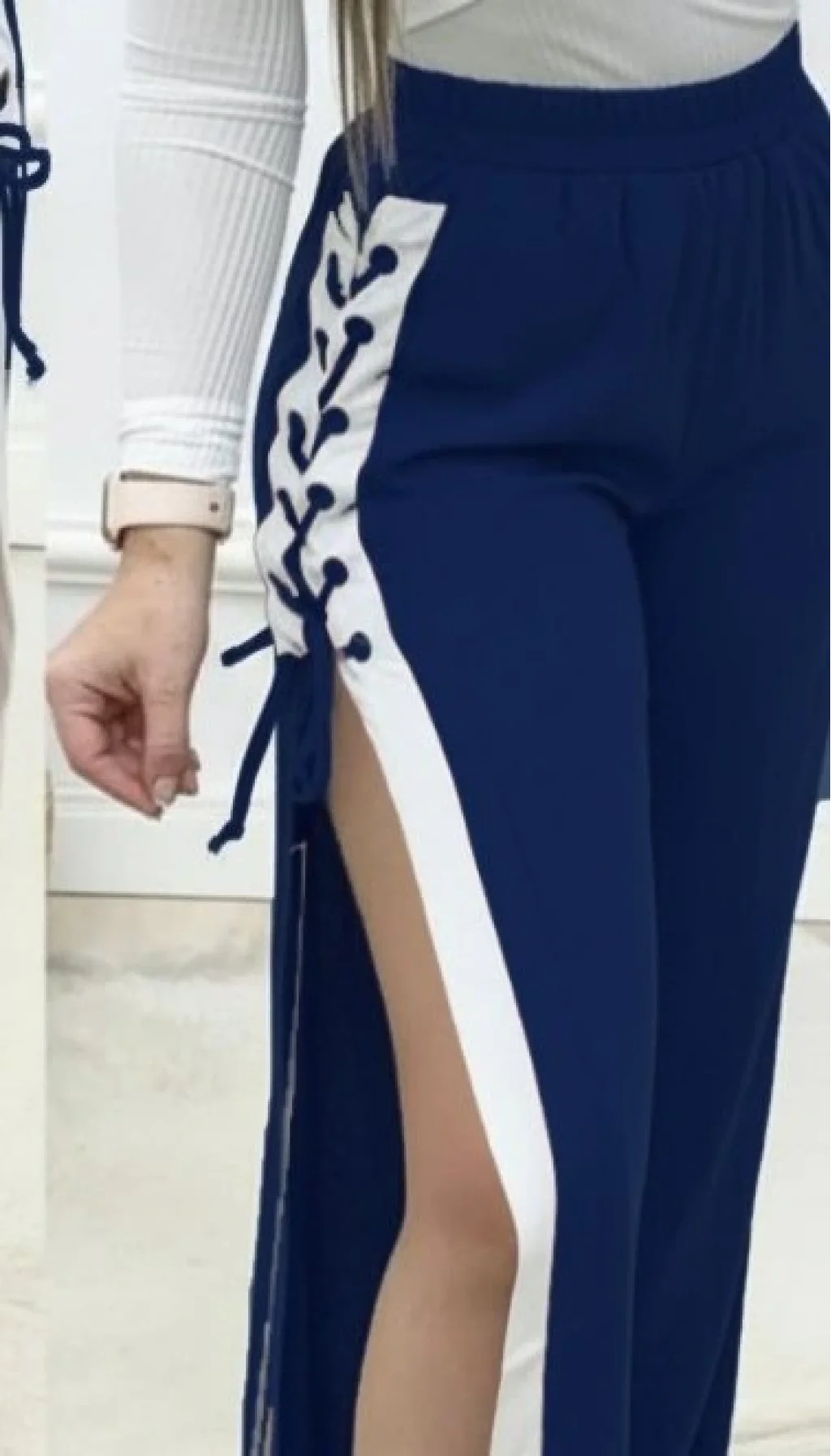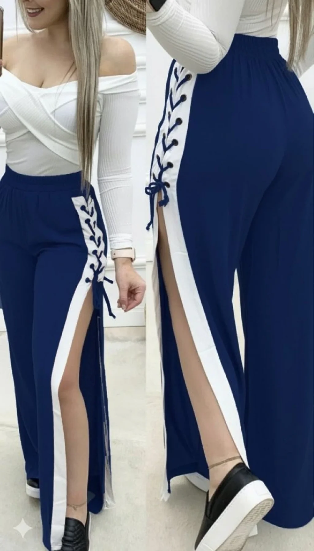 Kadın Yüksek Bel Yandan çapraz Bağcıklı Yırtmaçlı Viskon Iki Iplik Pantolon