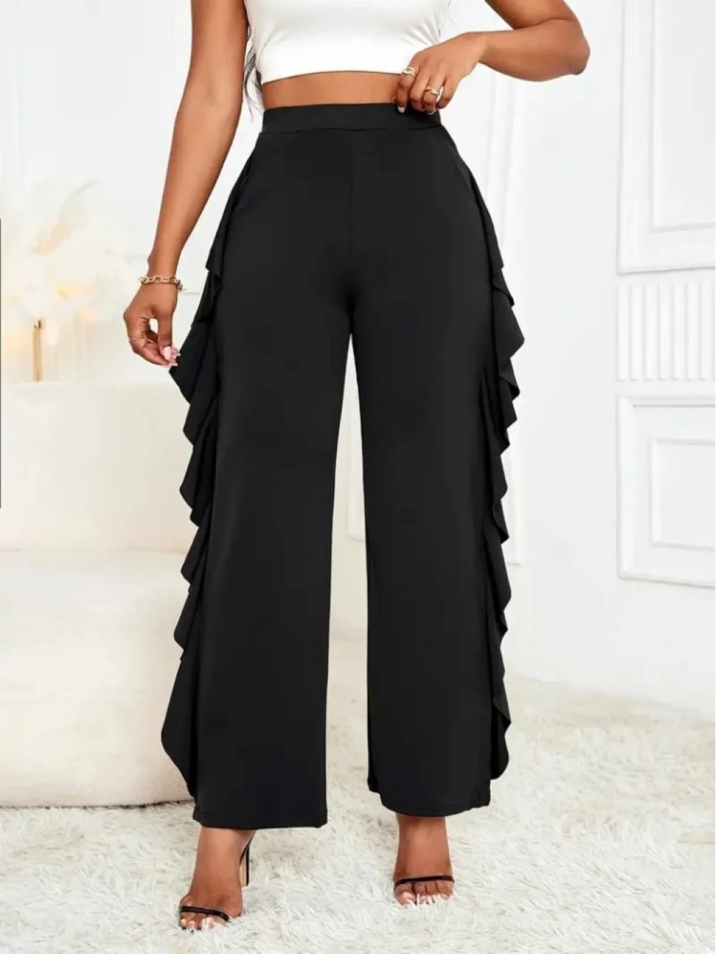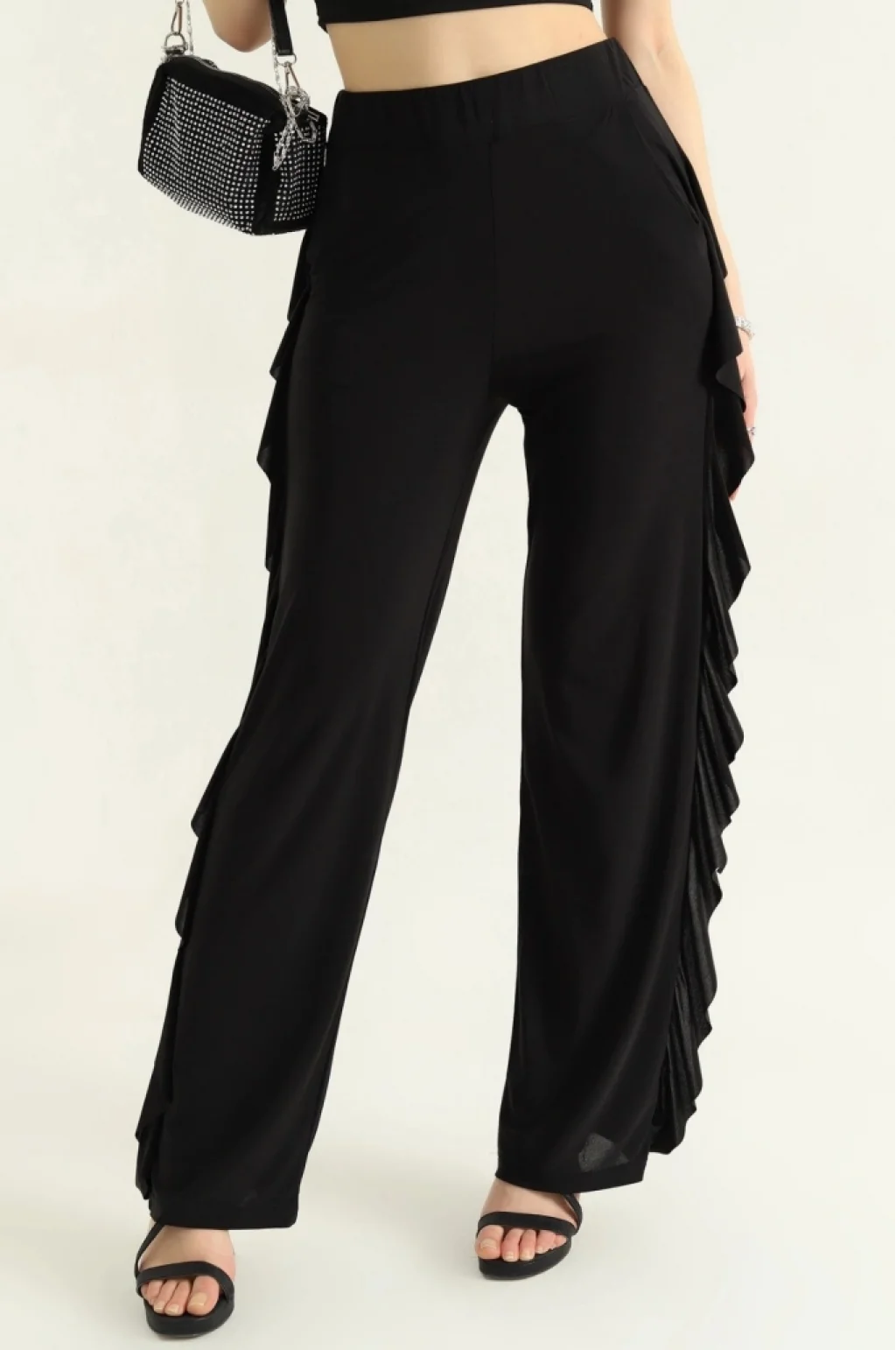 Kadın Yüksek Bel Yanları Volanlı Cepli Sandy Pantolon