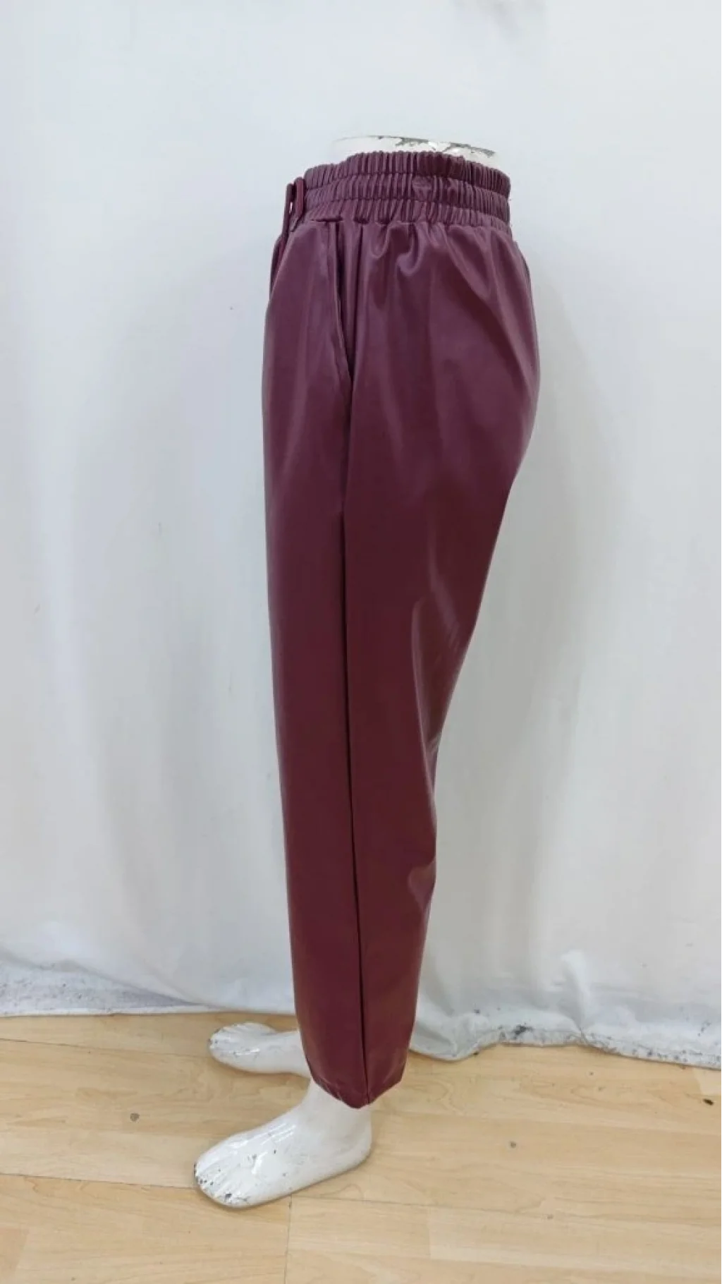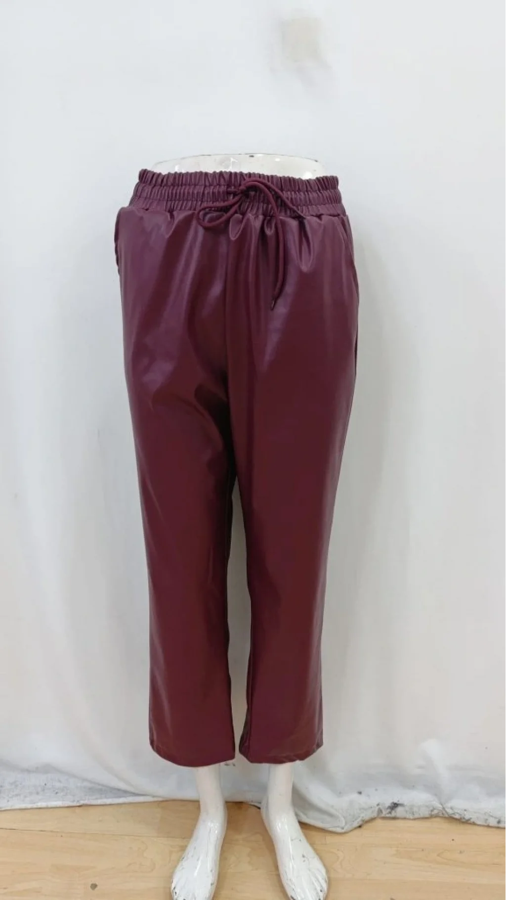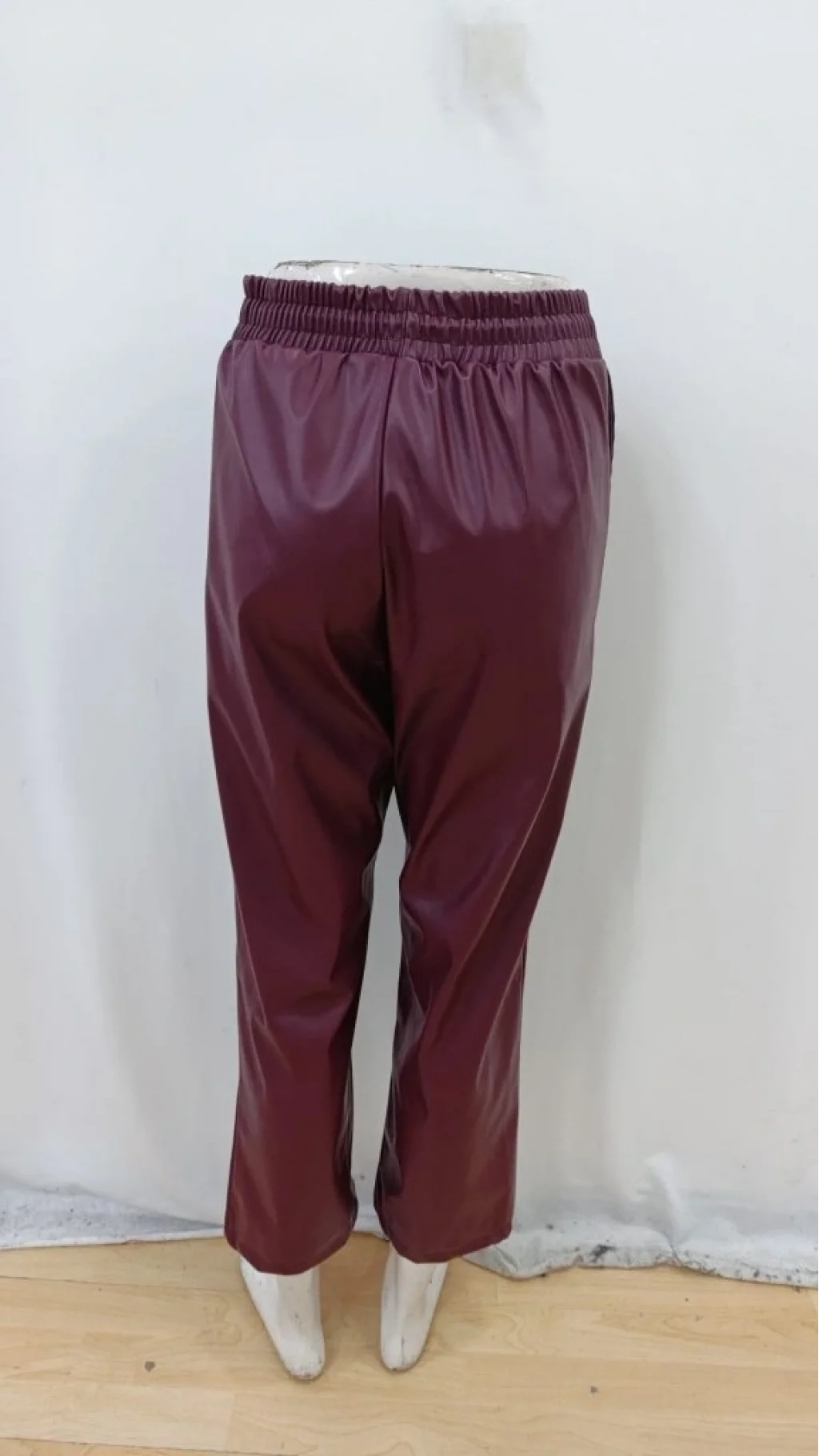 Kadın Yüksel Bel Bağcıklı Deri Pantolon