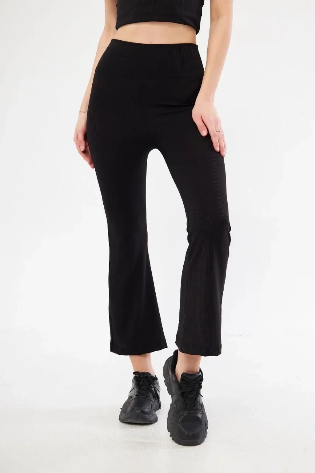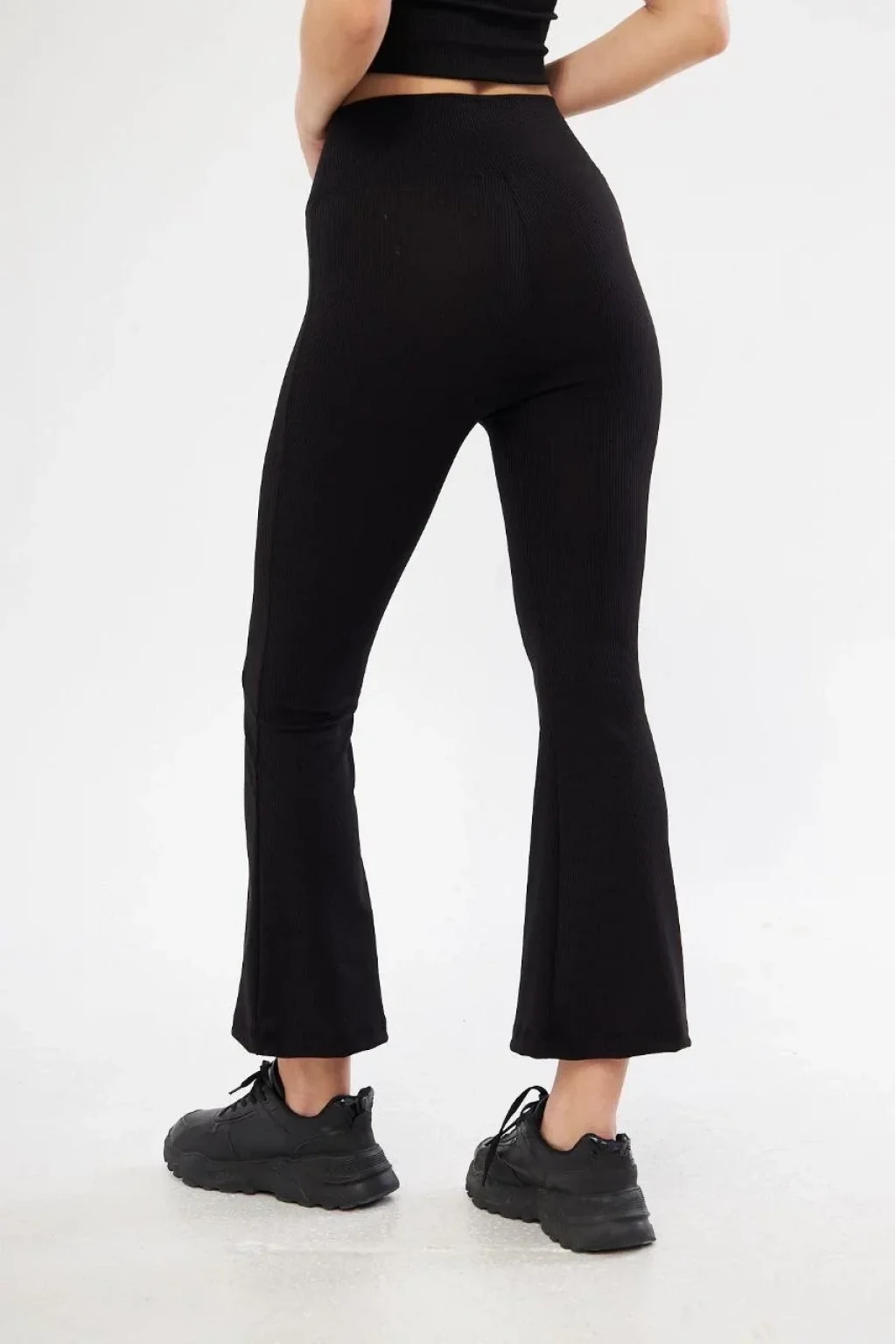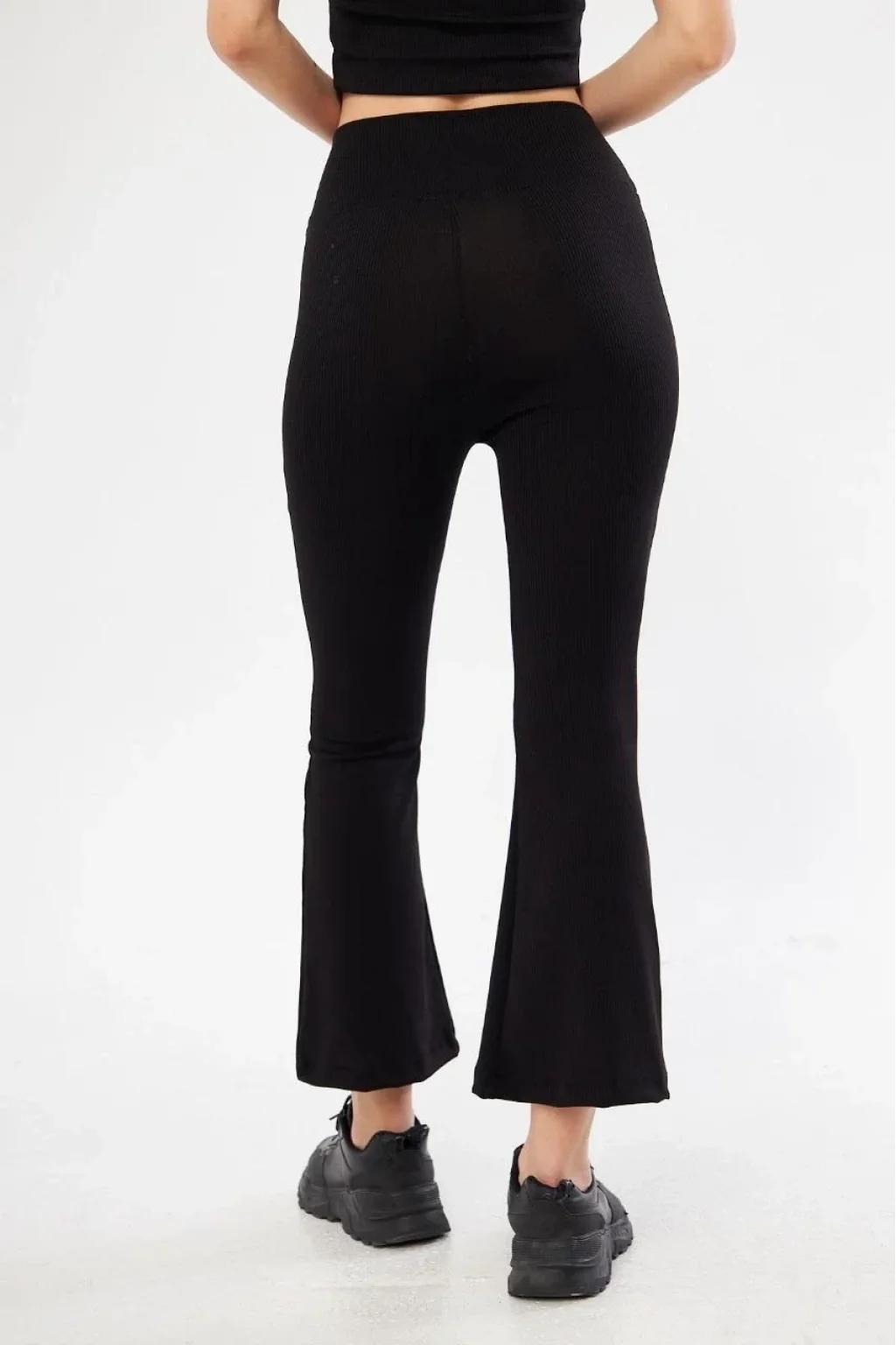 Kadın Yüksel Bel Fitilli İspanyol Paça Tayt - Siyah