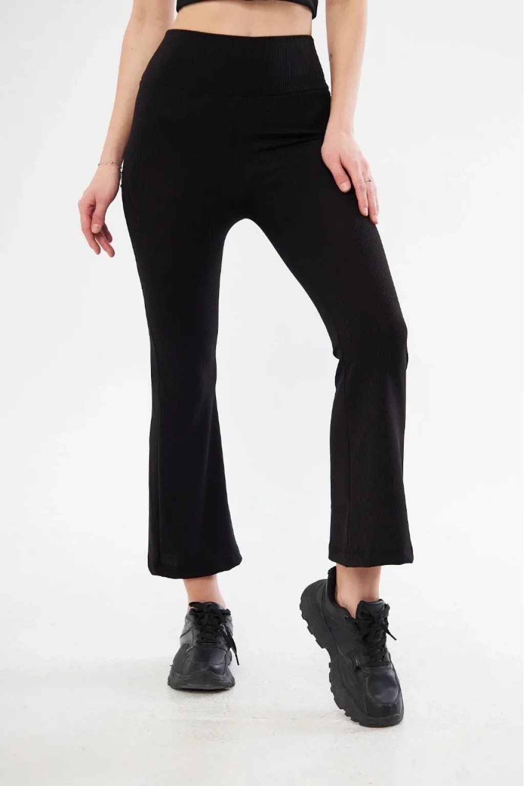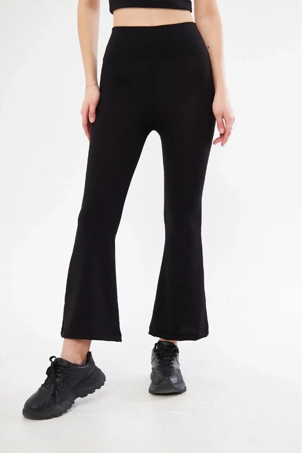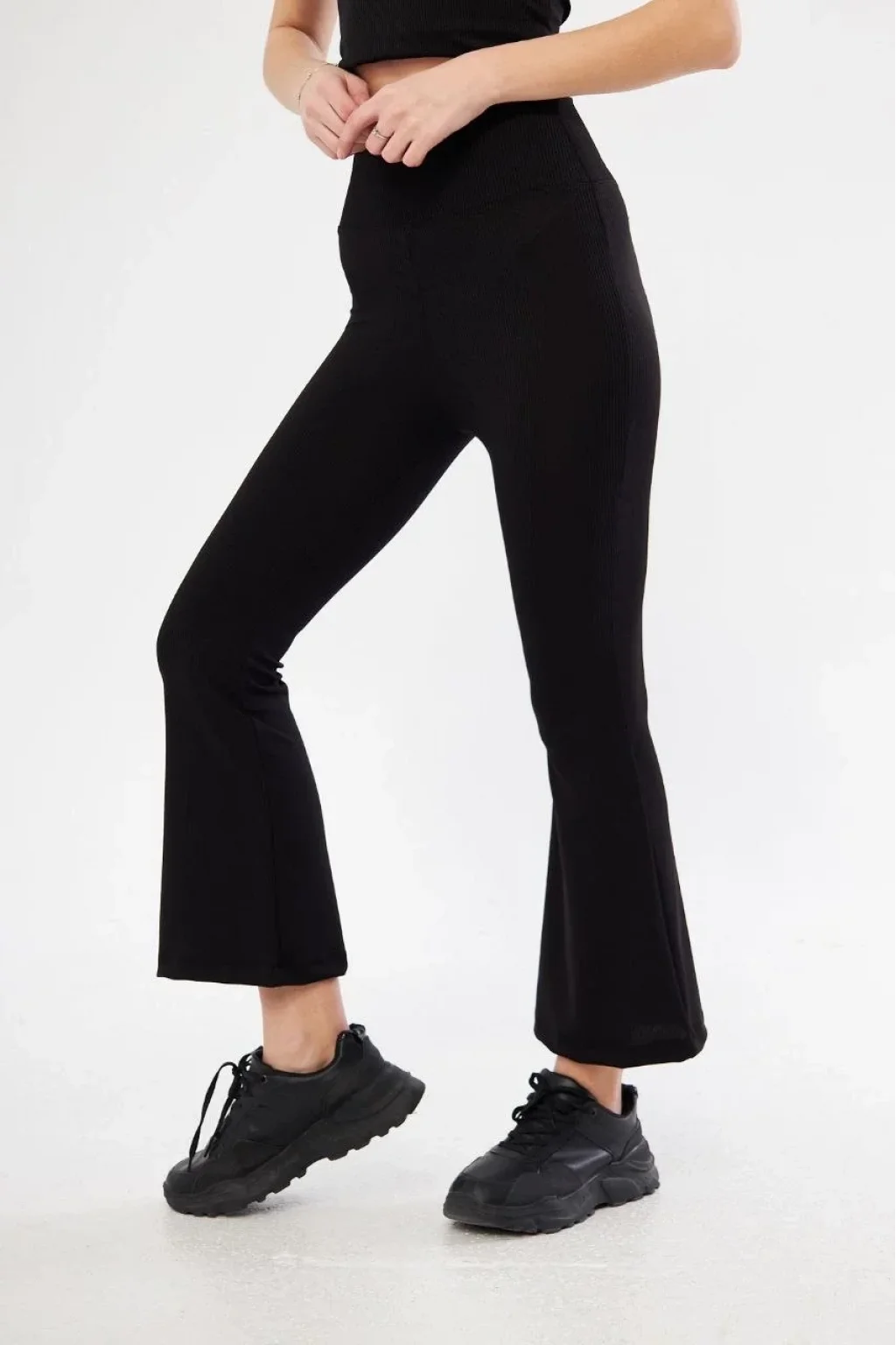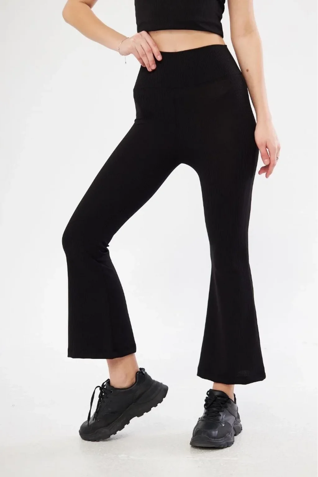 Kadın Yüksel Bel Fitilli İspanyol Paça Tayt - Siyah