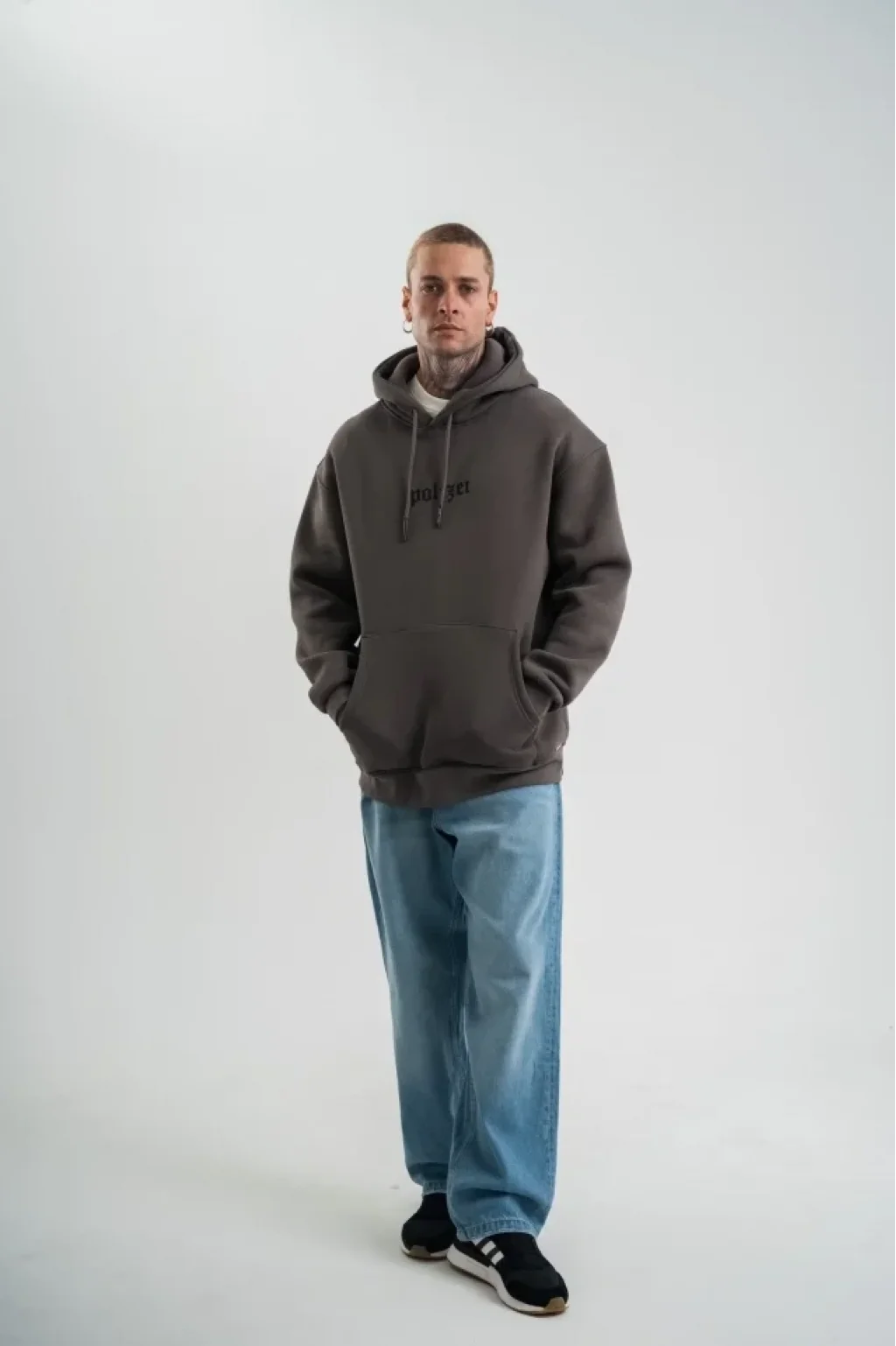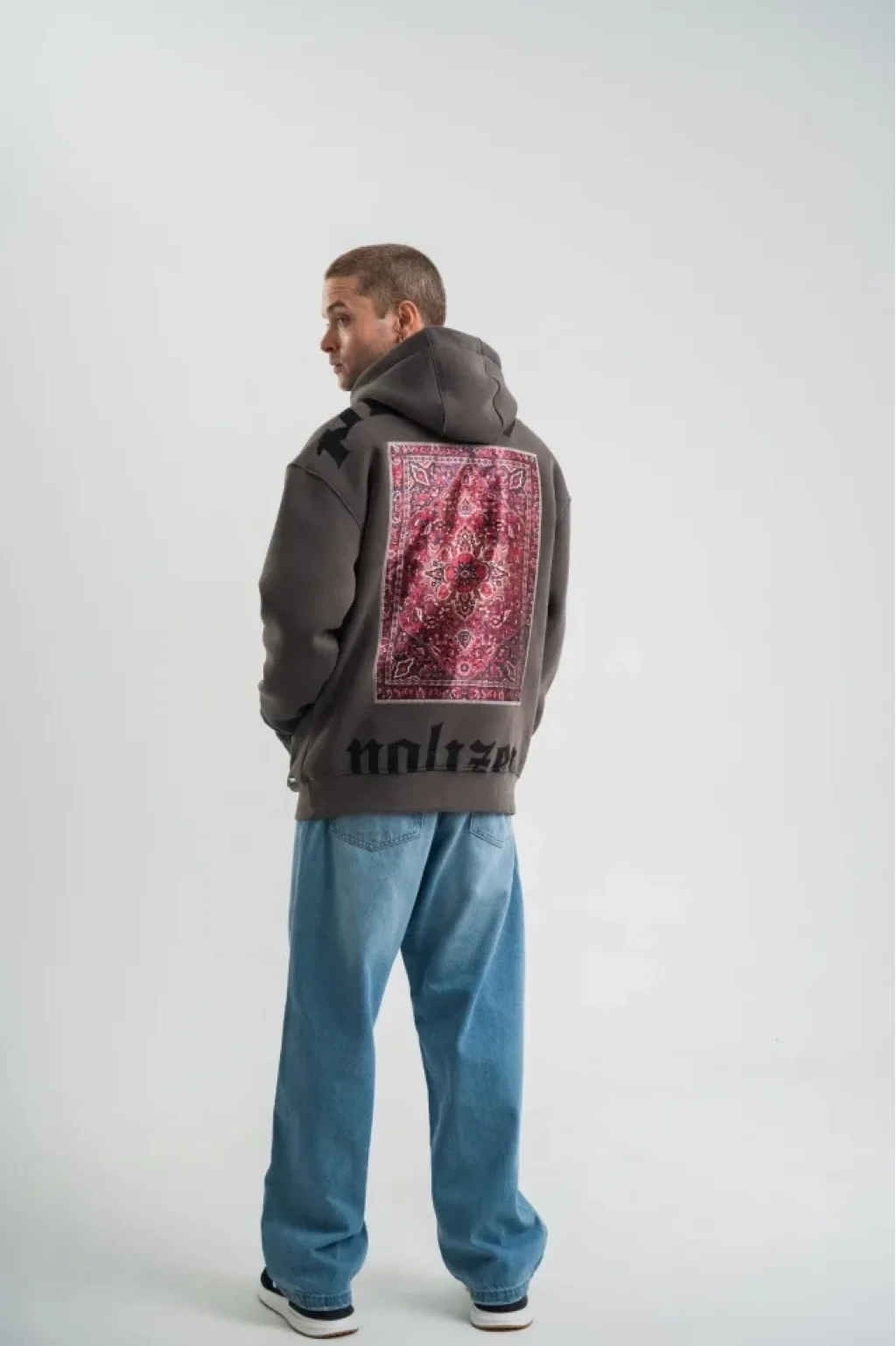Kapşonlu Double Oversize Dijital Patchli SweatShirt - Füme
