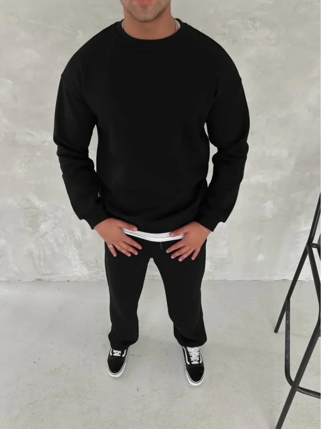 Kışlık Bisiklet Yaka Basic Eşofman Takım - Siyah